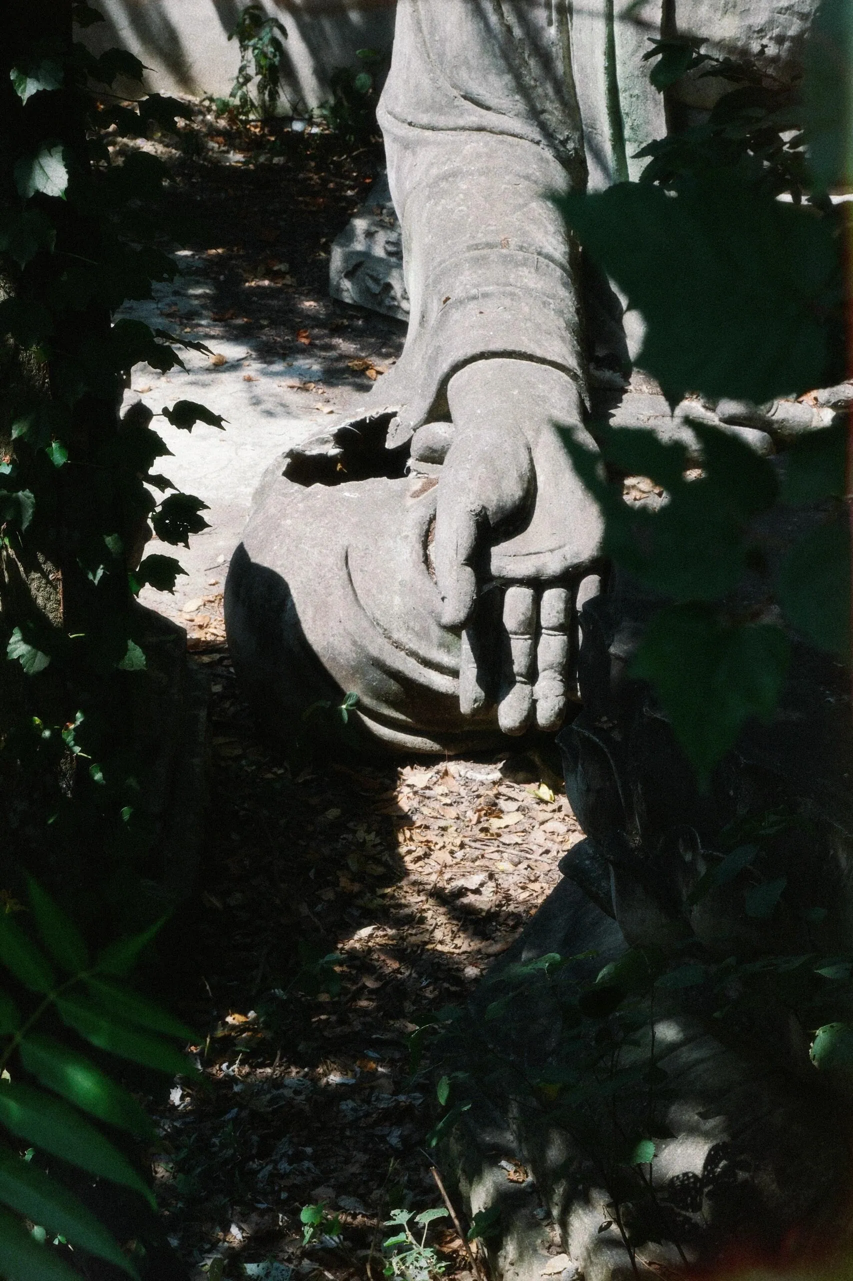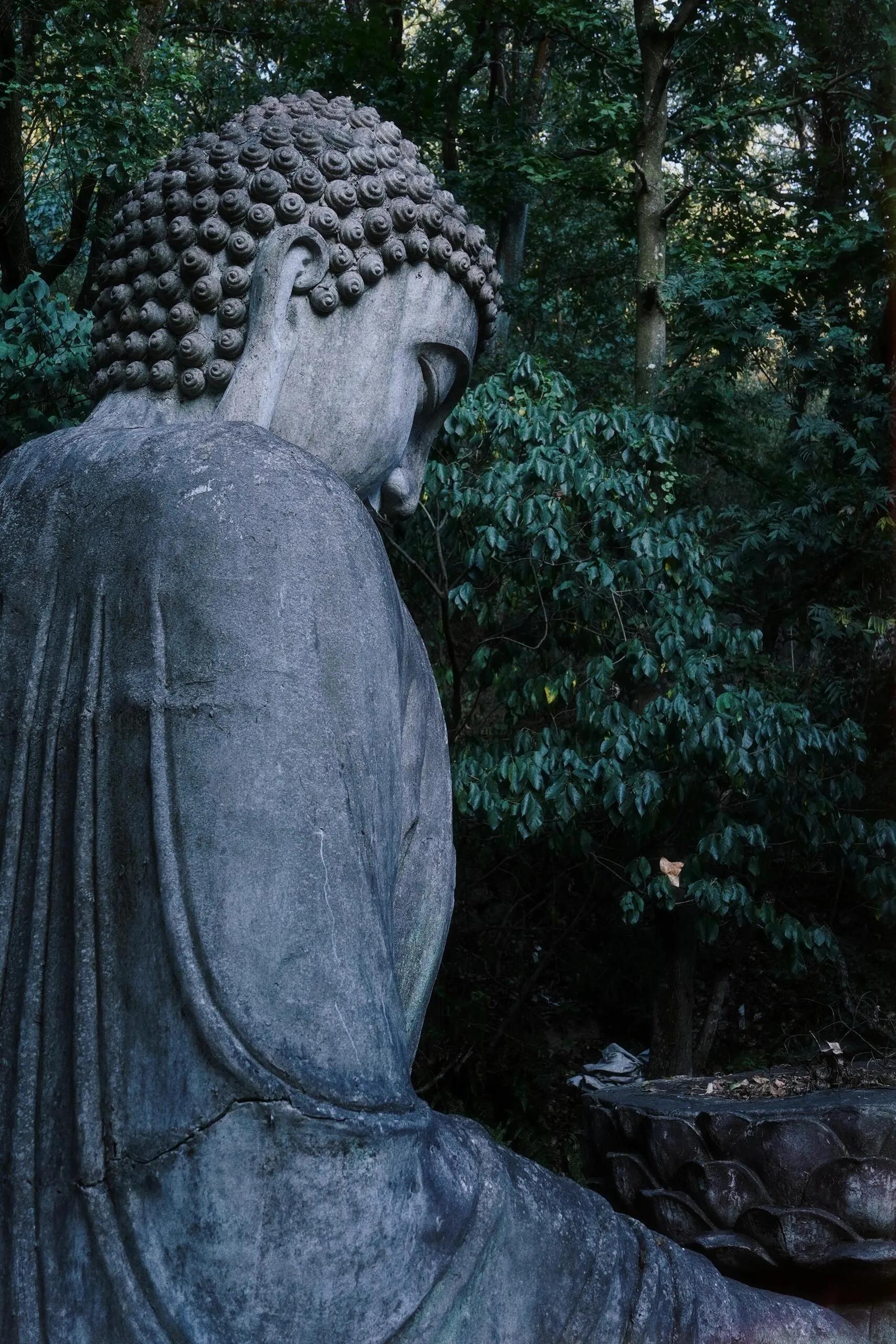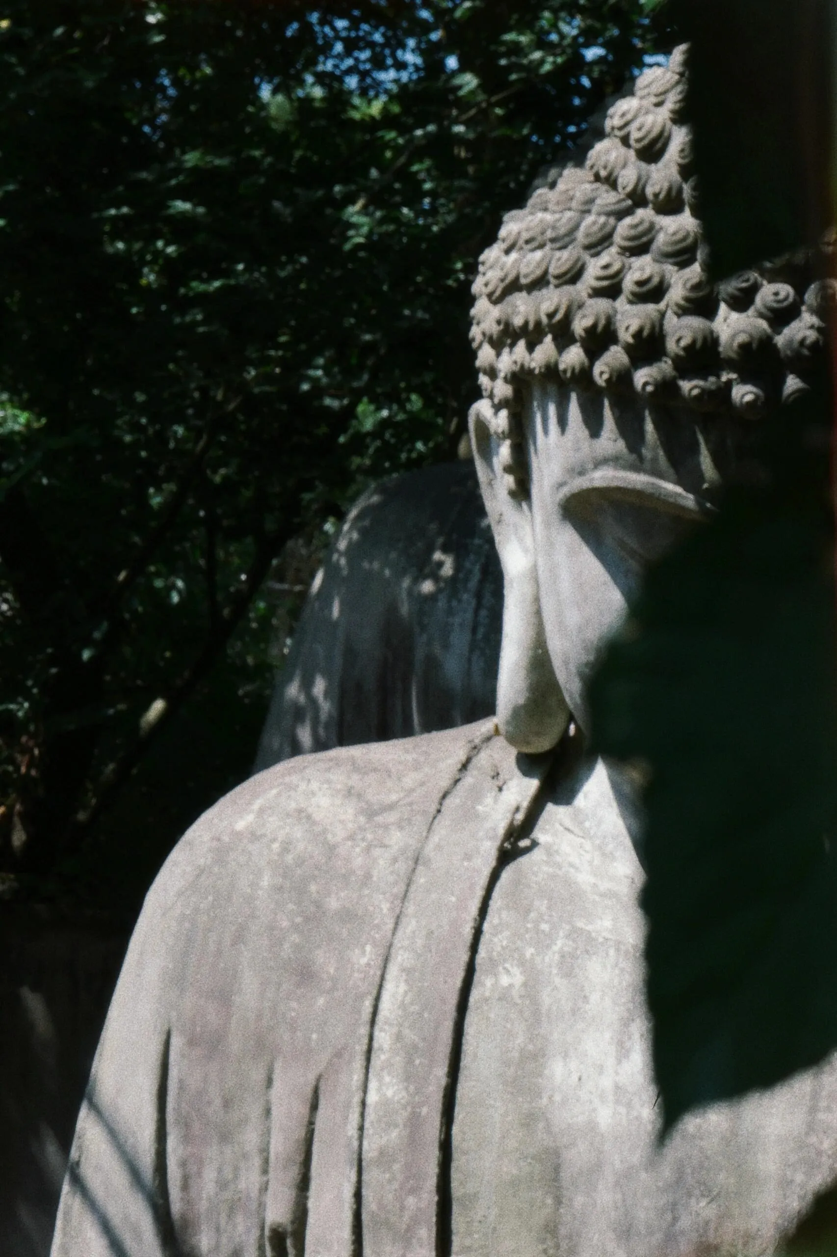 在雕塑厂左手边约50米的小树林里,有三座大型佛像。这些可能是残次品,被单独放置在那里。近距离面对这些巨大的佛像,依然能感受到震撼人心的力量。