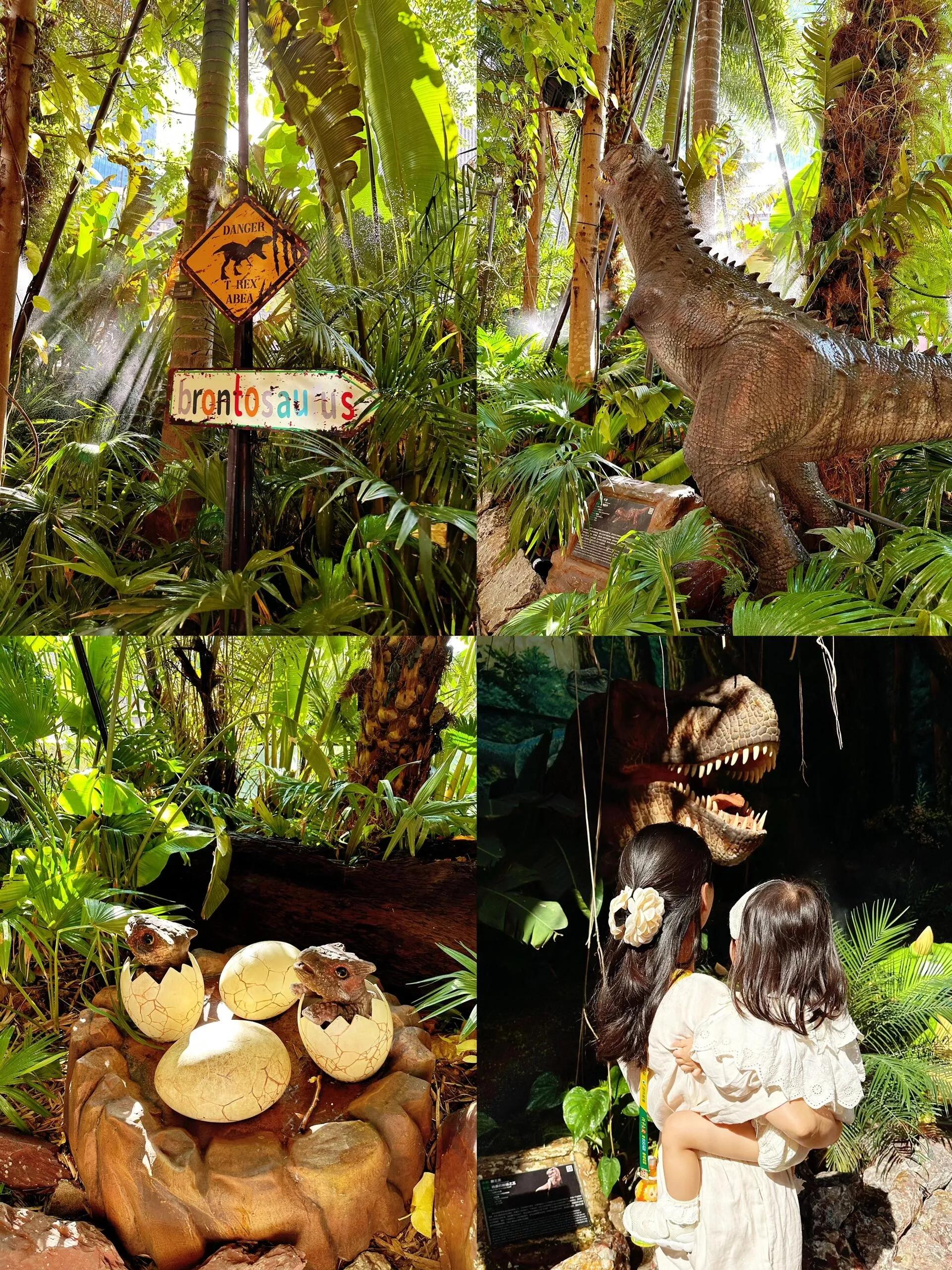 公园内最吸引人的当然是各种栩栩如生的恐龙模型。除此之外,还有许多有趣的互动项目,如恐龙知识科普、观察恐龙蛋、寻找化石等,既有趣又能增长知识。