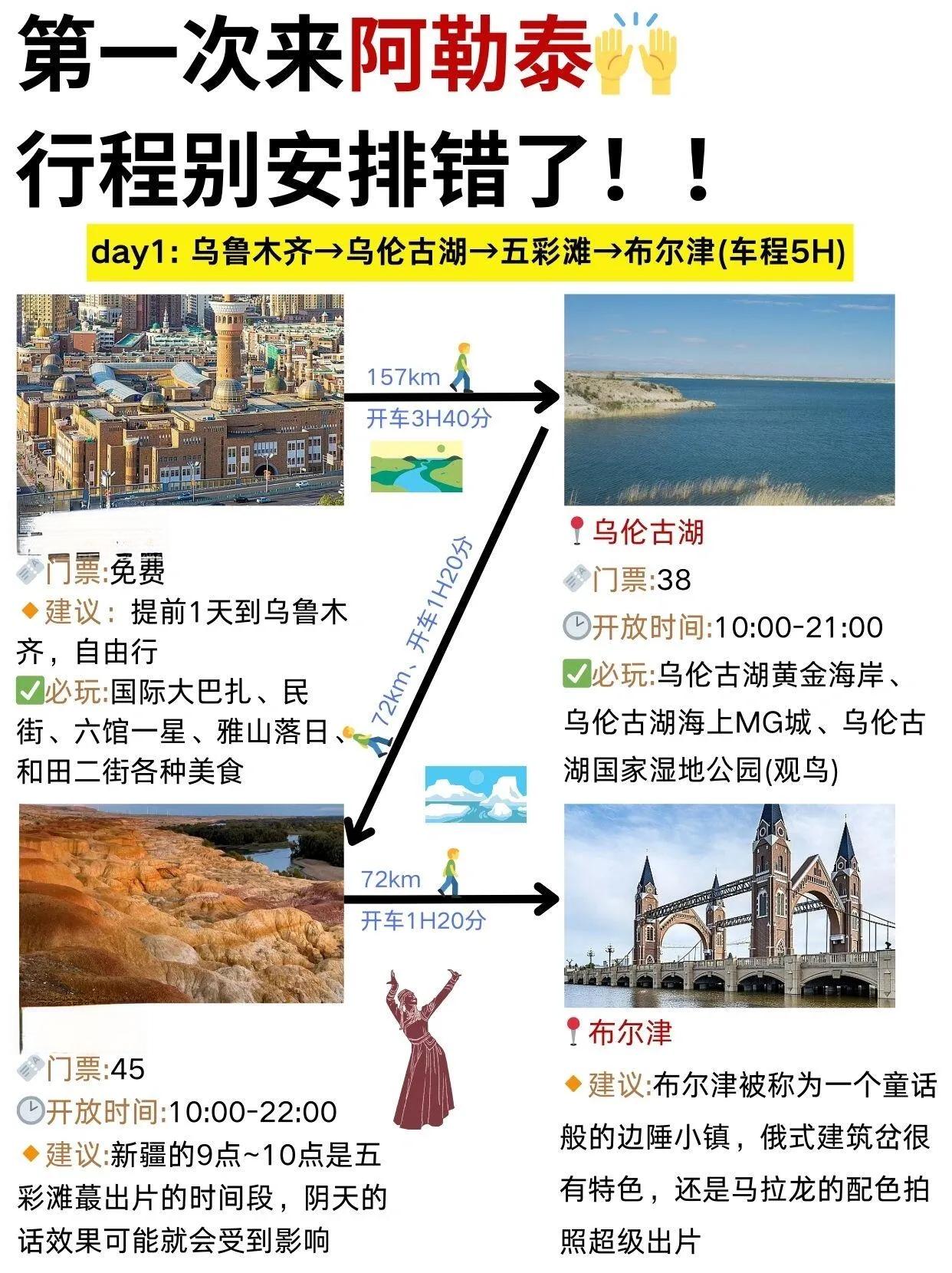 第一天:乌鲁木齐 - S21公路 - 乌伦古湖 - 五彩滩 - 布尔津