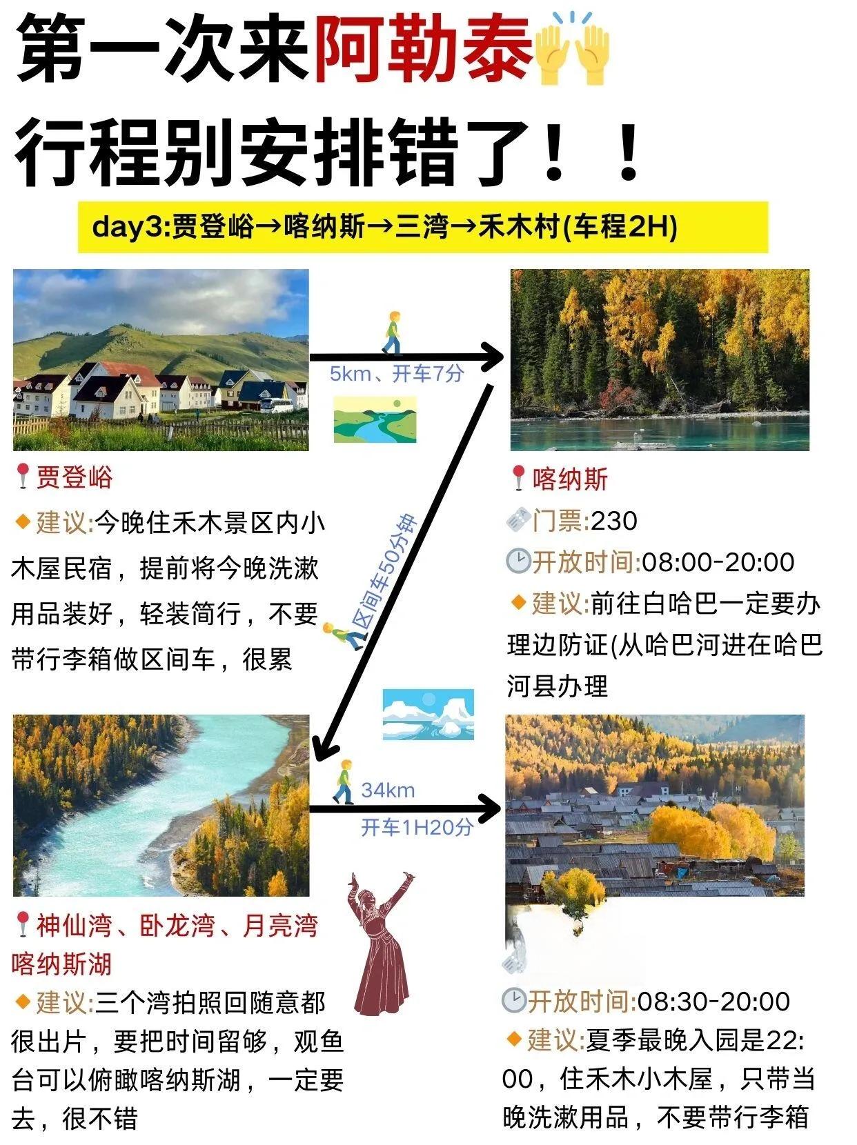 第三天:贾登峪 - 喀纳斯湖 - 三湾 - 禾木景区(住小木屋)