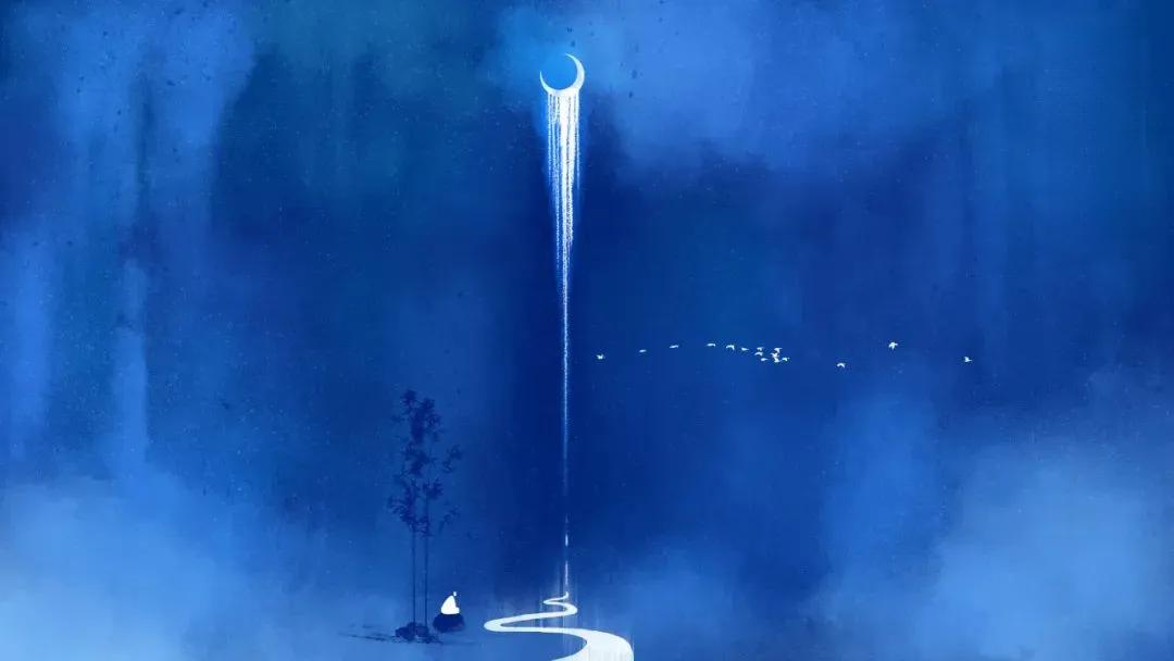 无人知晓他在这里,但有明月照亮那弯弯山路。