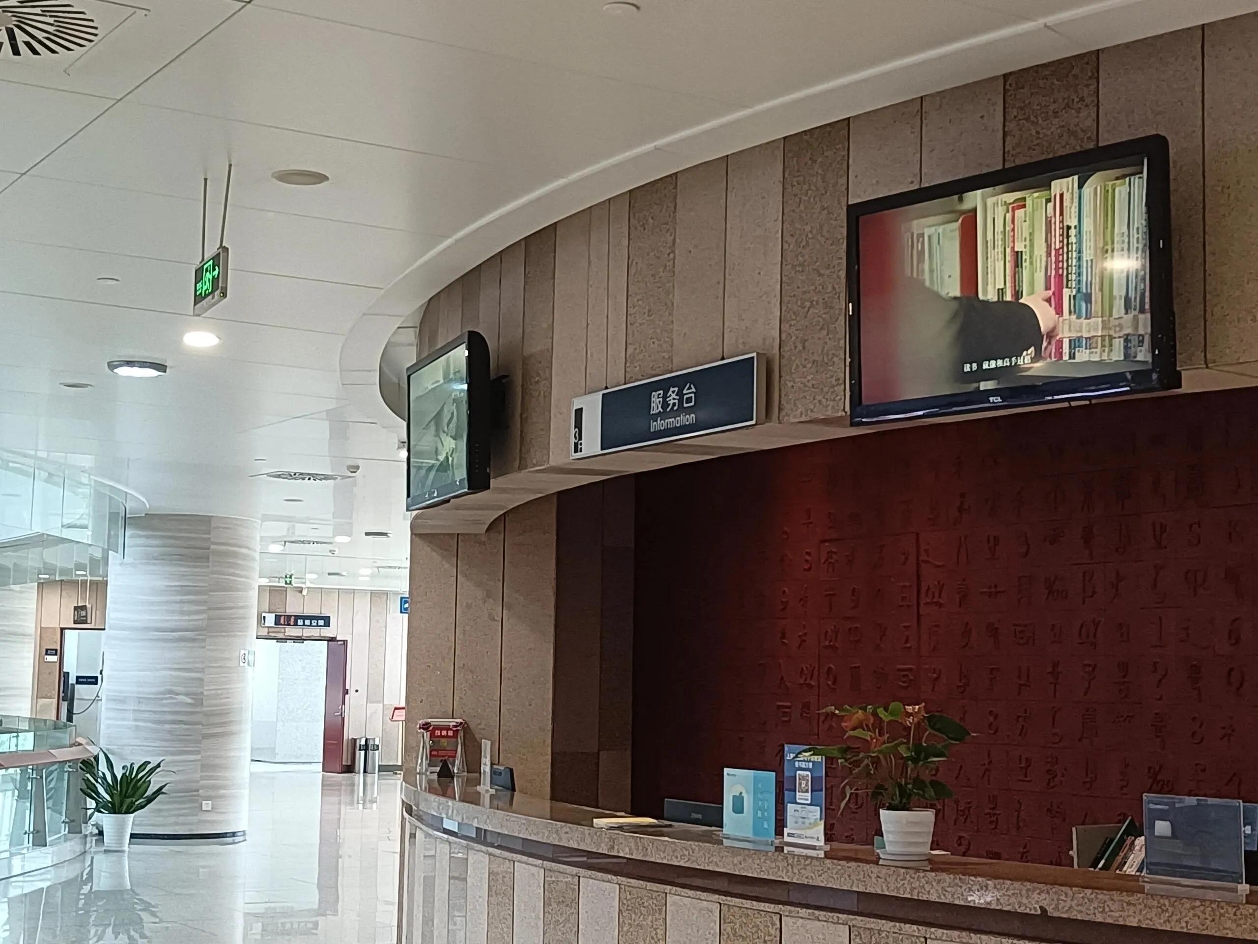 乘自动扶梯抵达三楼,首先映入眼帘的是弧形服务台。旁边设有自助借还书及查询处,方便读者快速办理相关业务。 中庭摆放着灰色布艺休息沙发 ,为疲惫的读者提供了一个短暂休憩的空间。