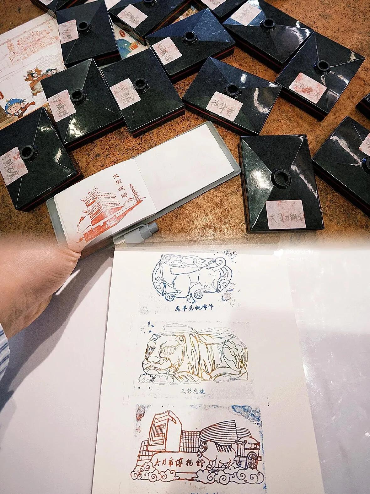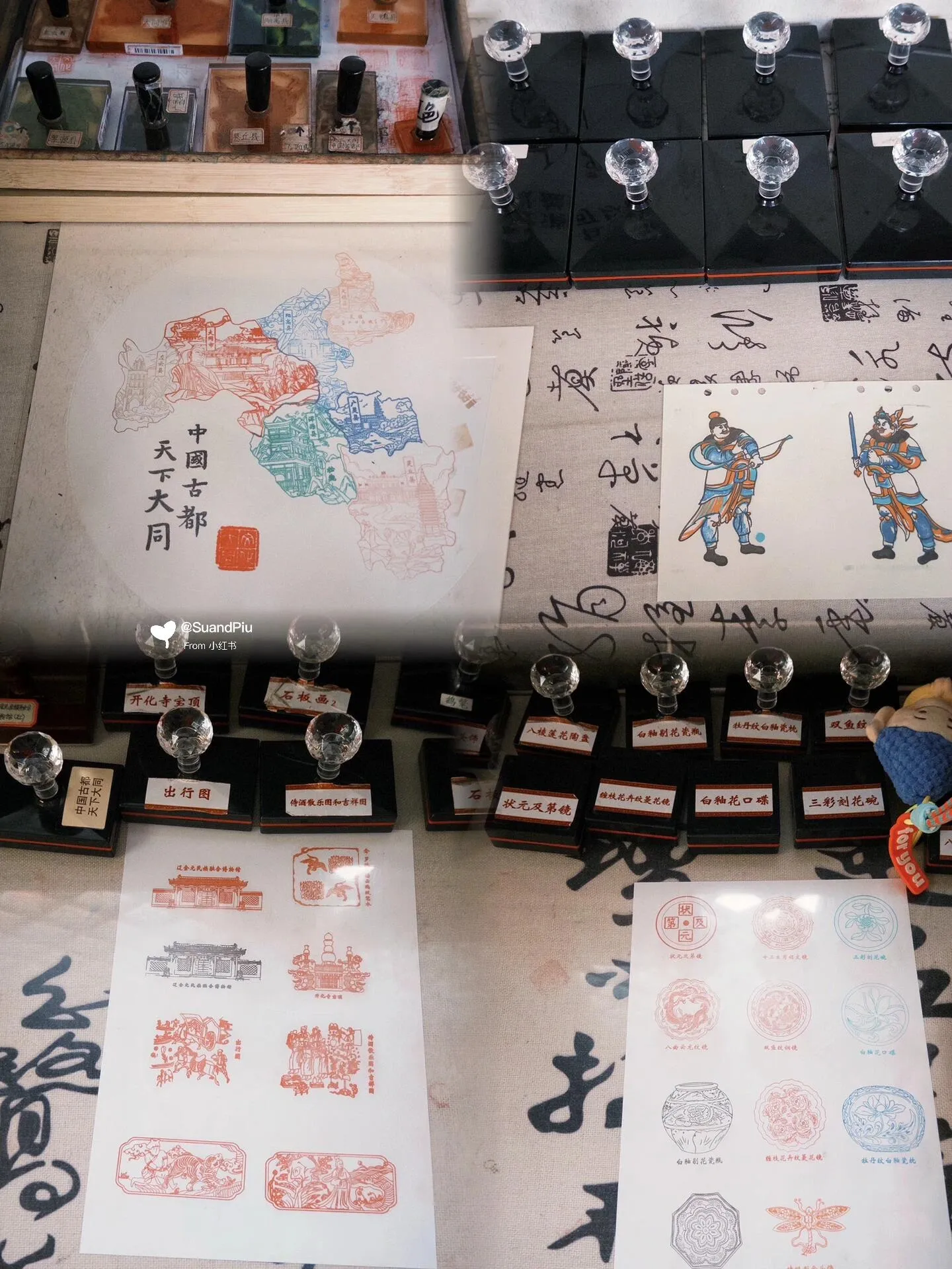 在云冈石窟,游客可以在出口处的云冈邮局获得1个免费的风景戳、1个日戳和3个橡皮章。悬空寺入口左手边的文创店提供1组付费的套色章和8个彩色光敏章。