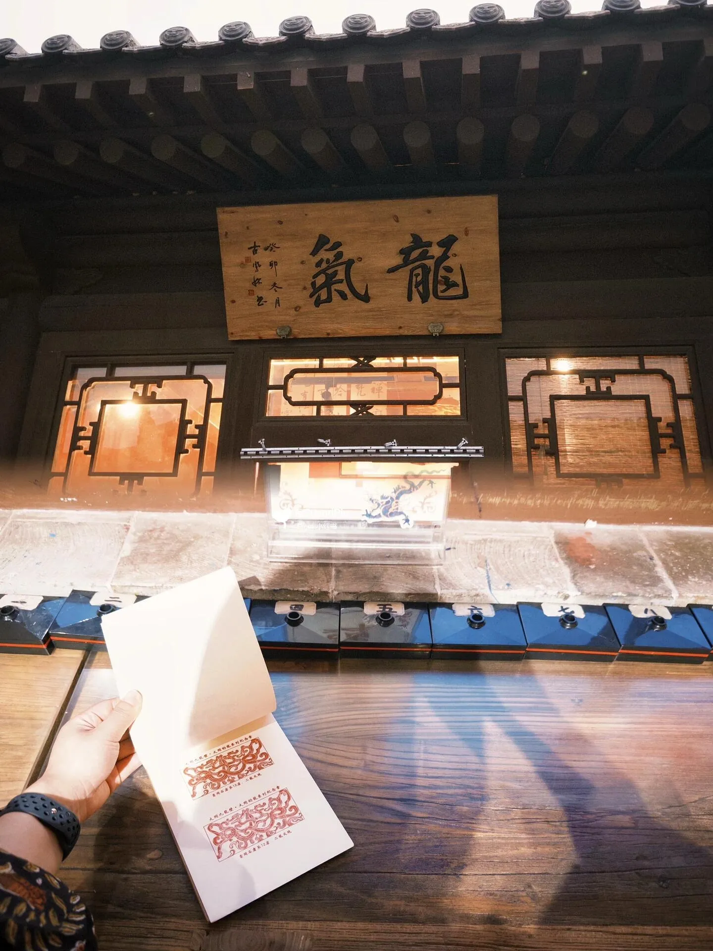 九龙壁出口处有两家文创店,左边店可以盖1组付费的套色龙章,右边店有10个付费的光敏章,包括完整的九龙壁章。
