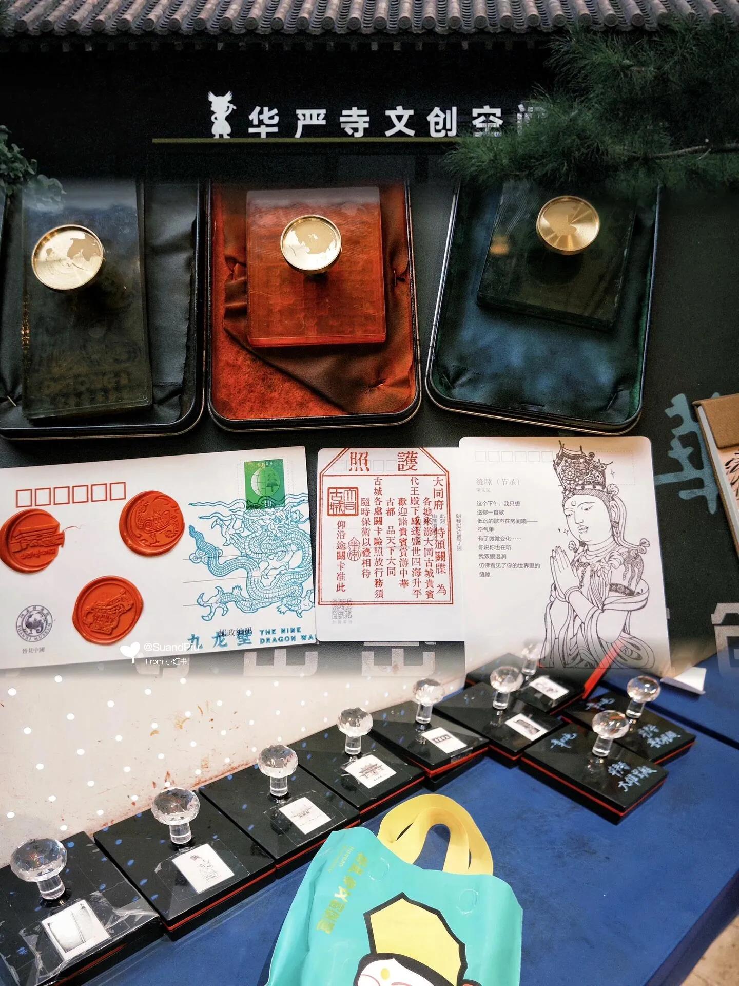 华严寺的文创空间有3个免费的亚克力章,非常有纪念意义。此外还有7个付费的光敏章和2个黑神话悟空章。在出口右手边的文创店也有5个免费的光敏章,但可能存在漏墨严重、图案模糊的问题。