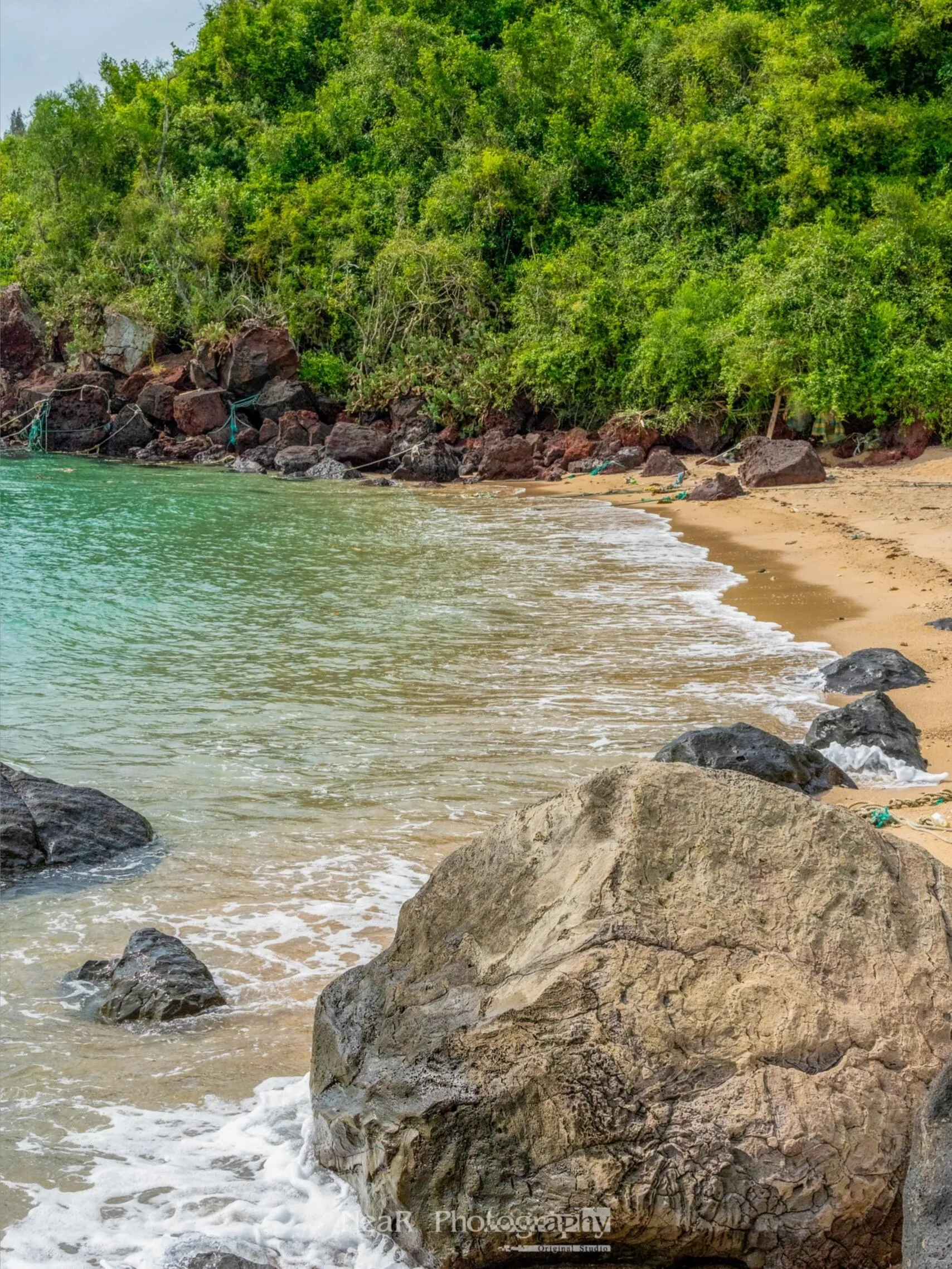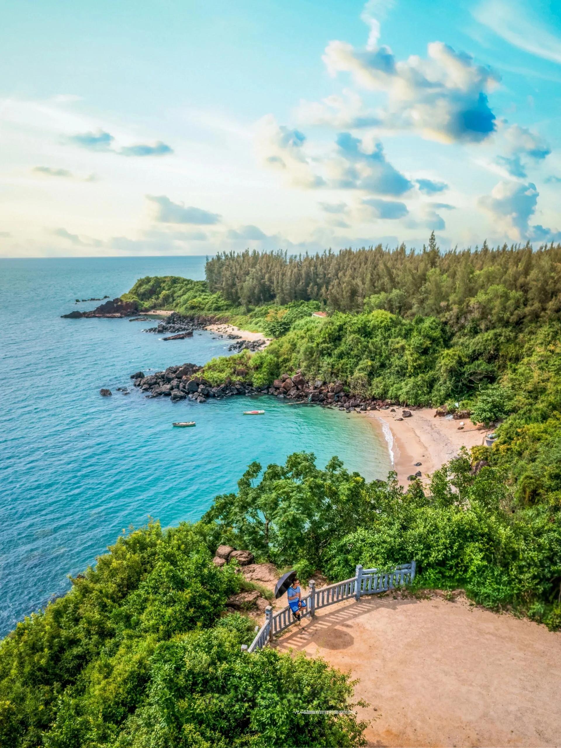 与海南岛东部海湾的椰风海韵相比,峨蔓湾呈现出一种气势磅礴的雄壮之美。除了沙滩,这里还有绵延数公里的火山岩,以及由红壤堆积成的几十米高的红色悬崖,景观独特。
