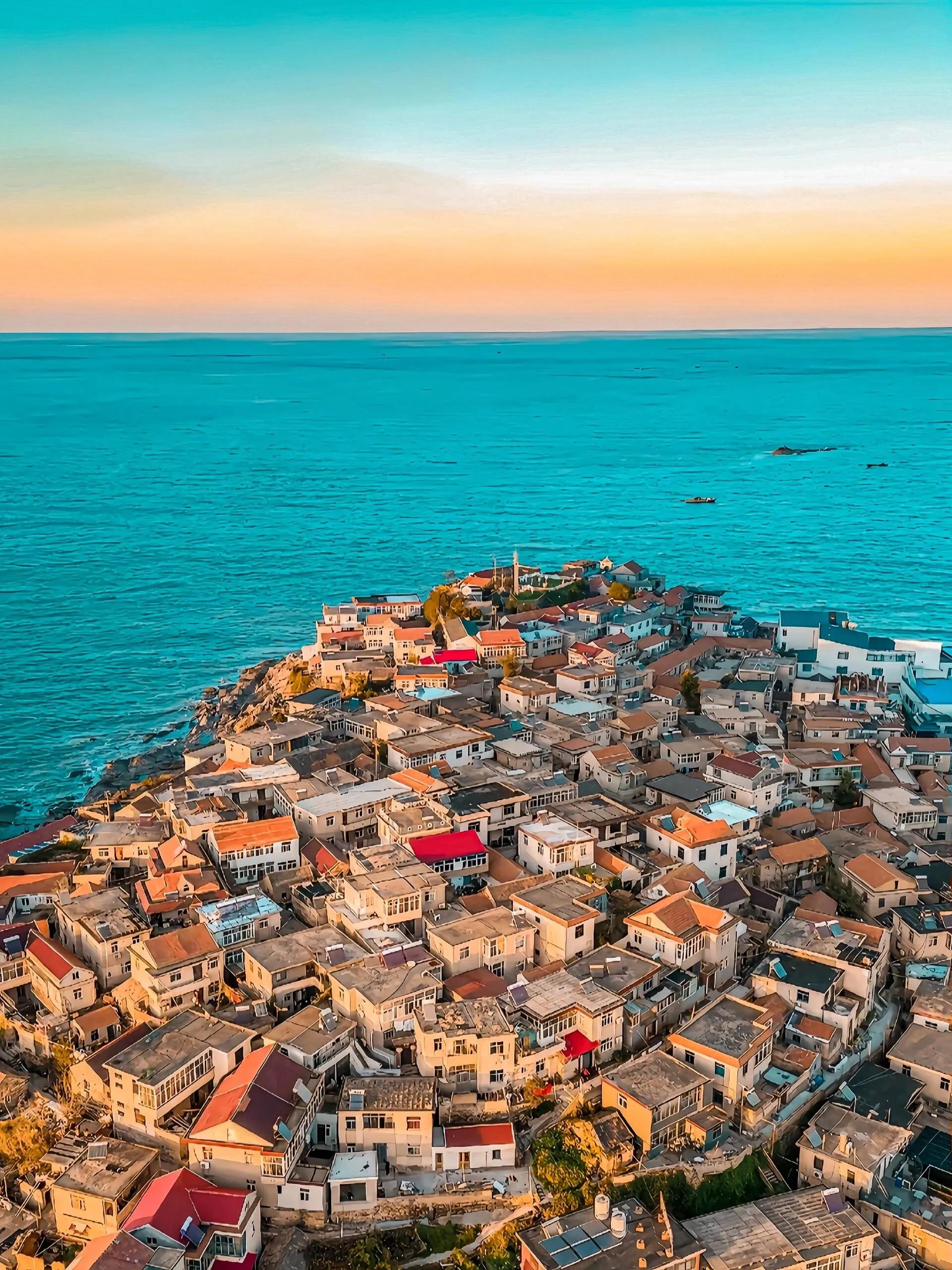 西连岛:位于连岛的西北角,这里的小渔村建在海边山坡上,航拍景象颇似意大利风光。