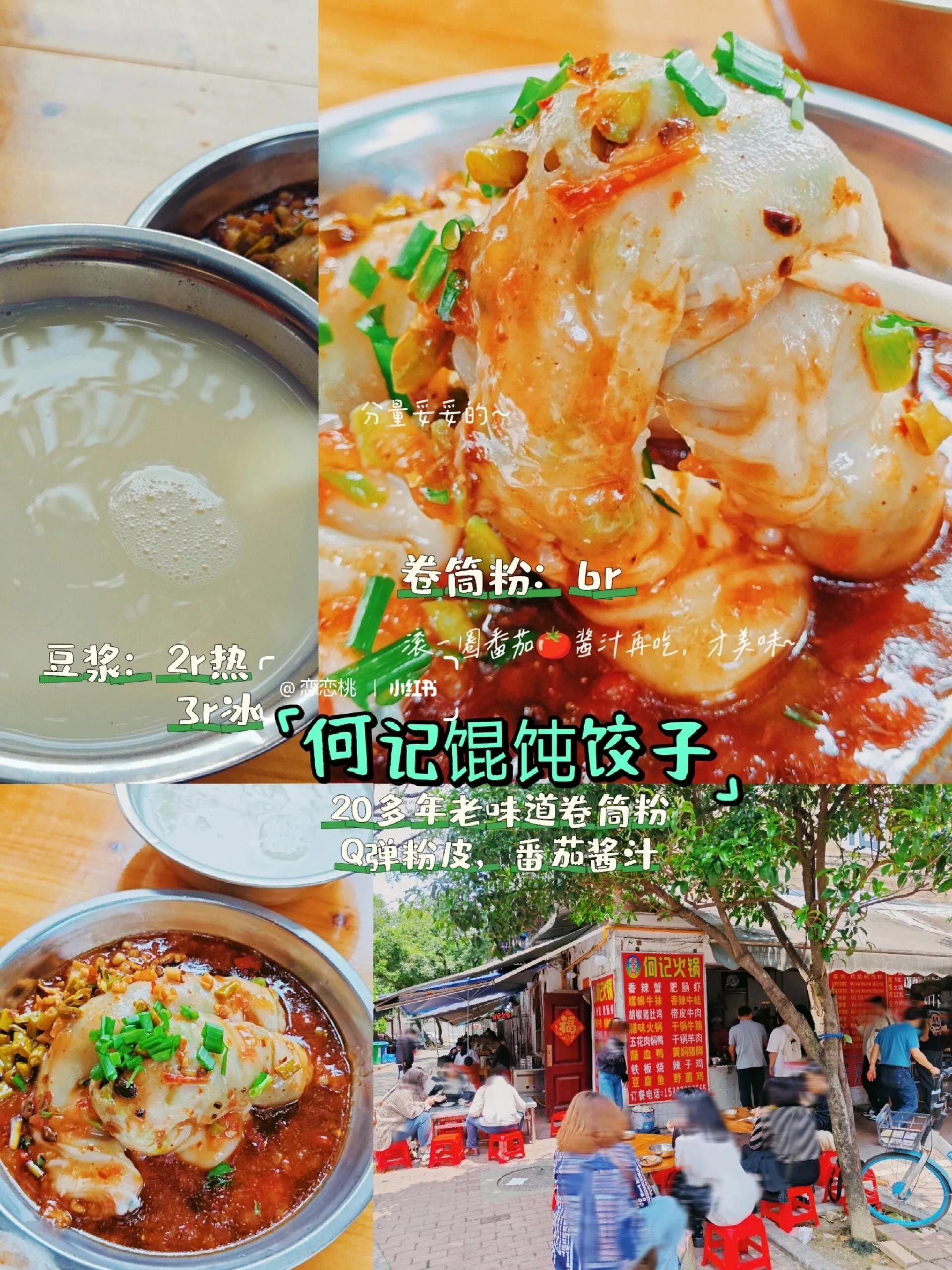 何记馄饨饺子是一家总是座无虚席、排队长龙的小店 。这里的卷筒粉、豆浆和糊辣油条都值得一试。卷粉的经典口味是豆角木耳肉沫馅,浓郁的番茄酱汁是其灵魂所在,吃起来爽滑Q弹,番茄香气浓郁。