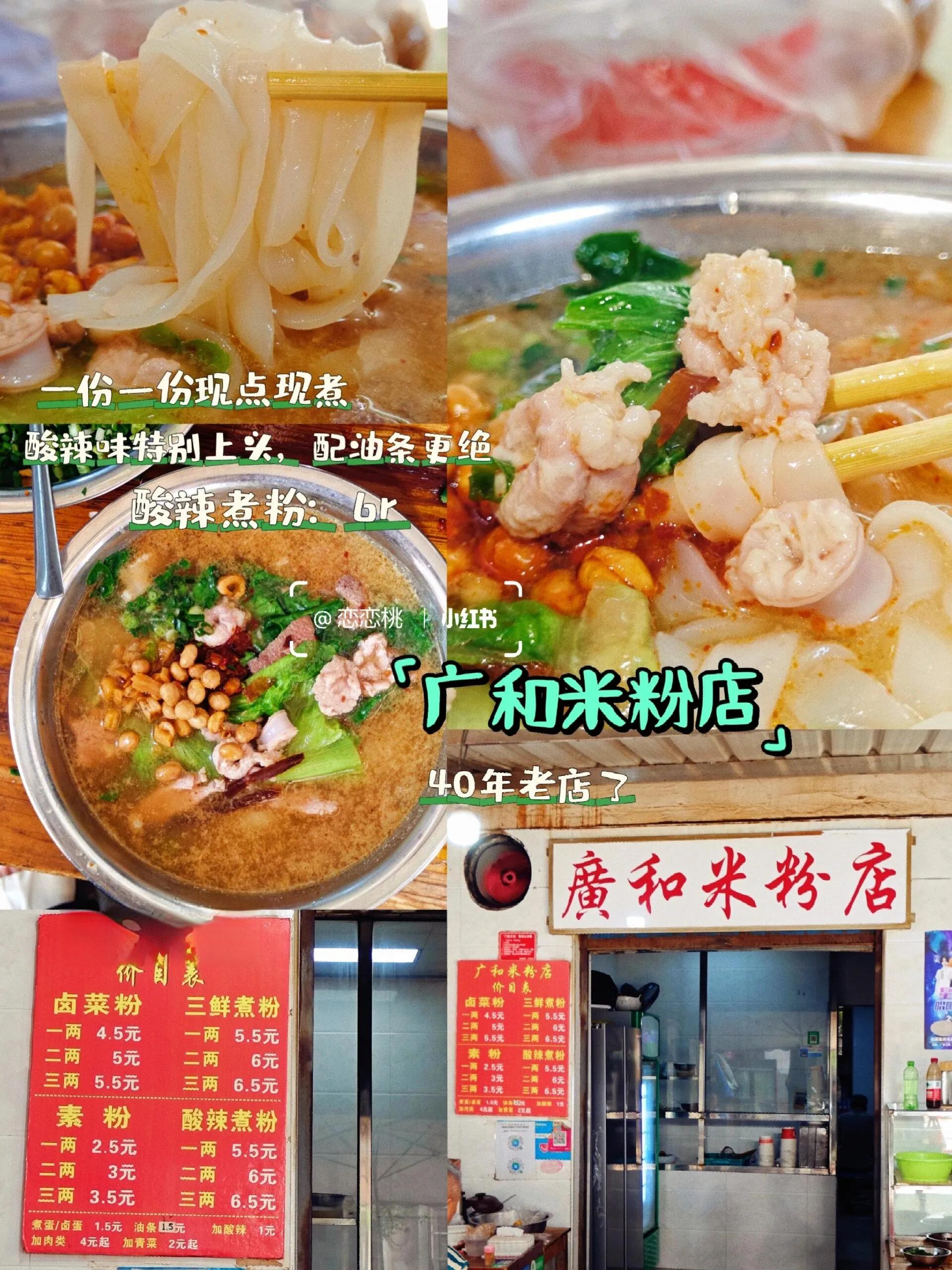 广和煮粉虽然搬迁过两次,但始终扎根铁西一带 ,40多年来保持着老味道。这里的粉是现点现煮,保证每一份的新鲜口感。酸辣口味的猪肝粉肠瘦肉煮粉尤其受欢迎,夏天吃得满头大汗,用油条蘸汤汁更是过瘾。