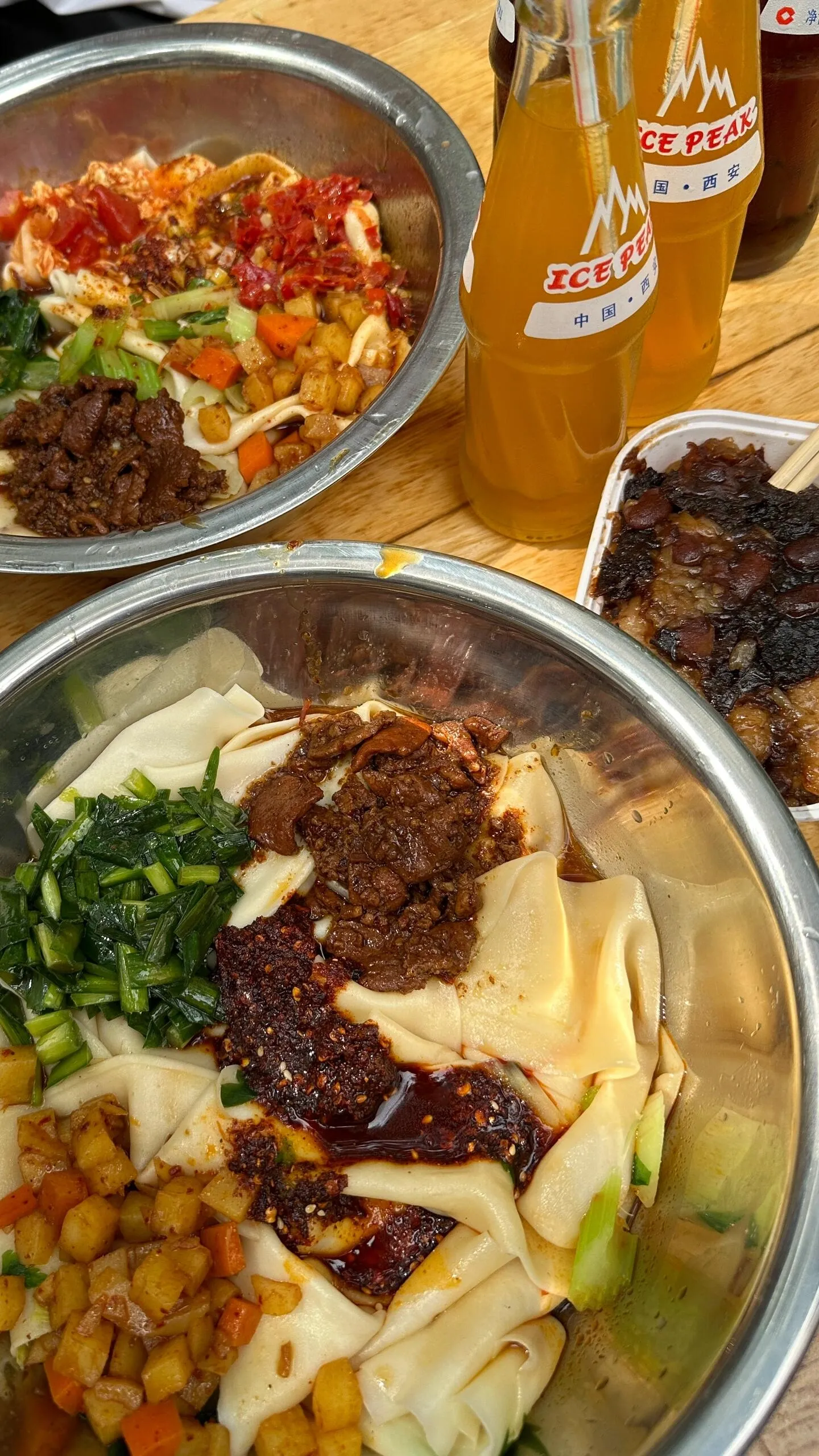 晚上可以前往洒金桥品尝特色小吃。这里人流量大,但能吃到老马家牛肉饼、麻酱凉皮、曾糕等地道美食。相比回民街,洒金桥更受当地人推荐。