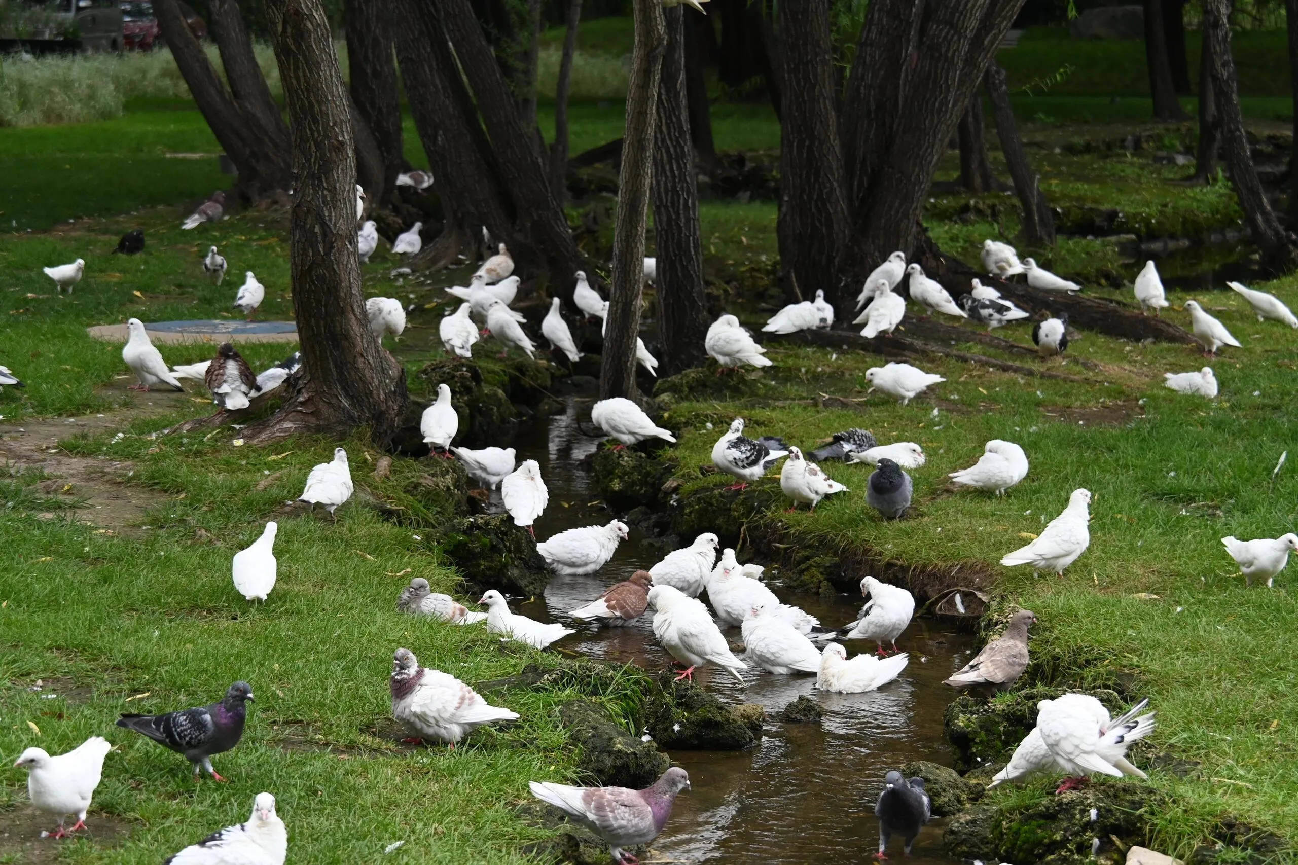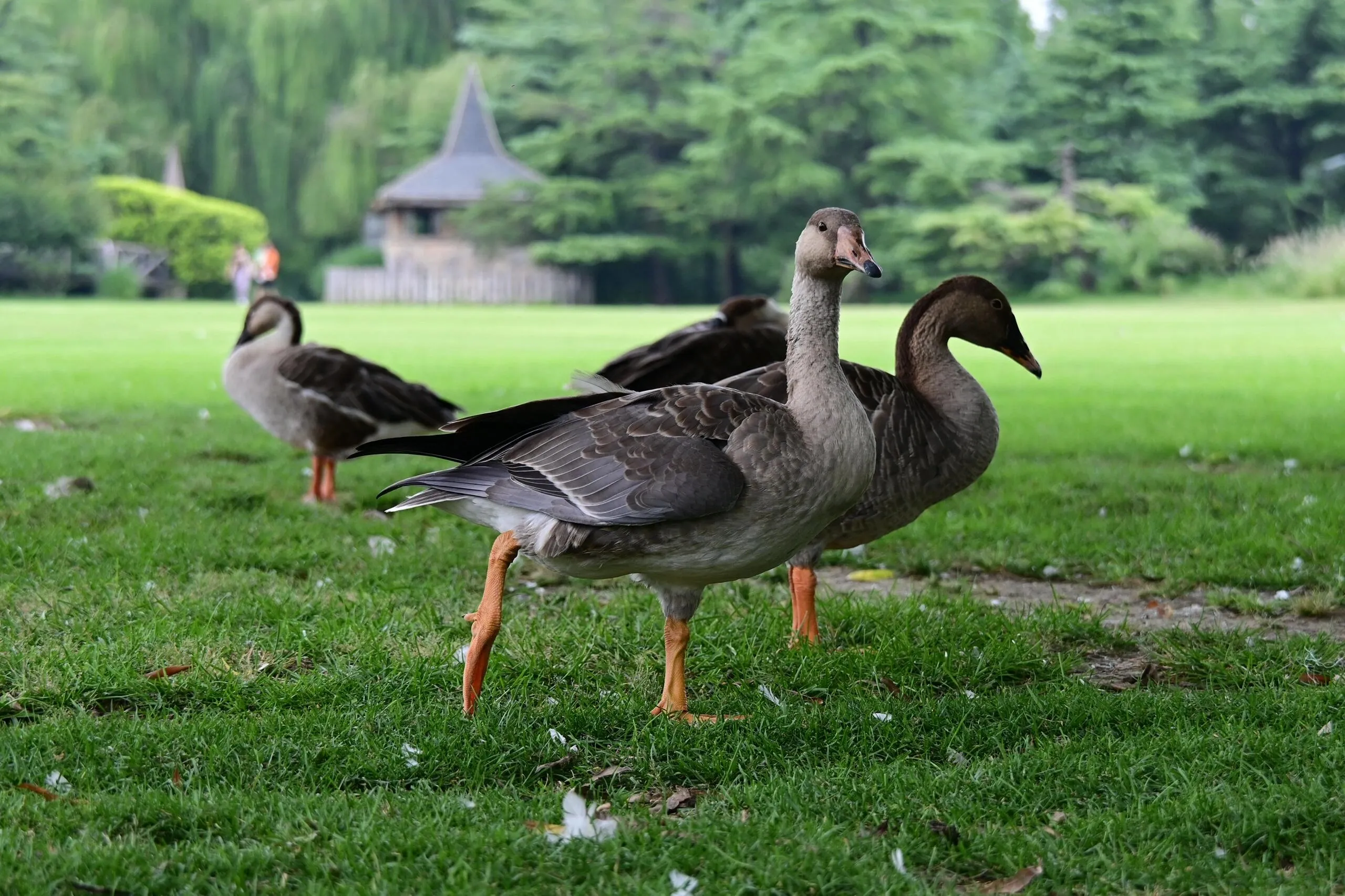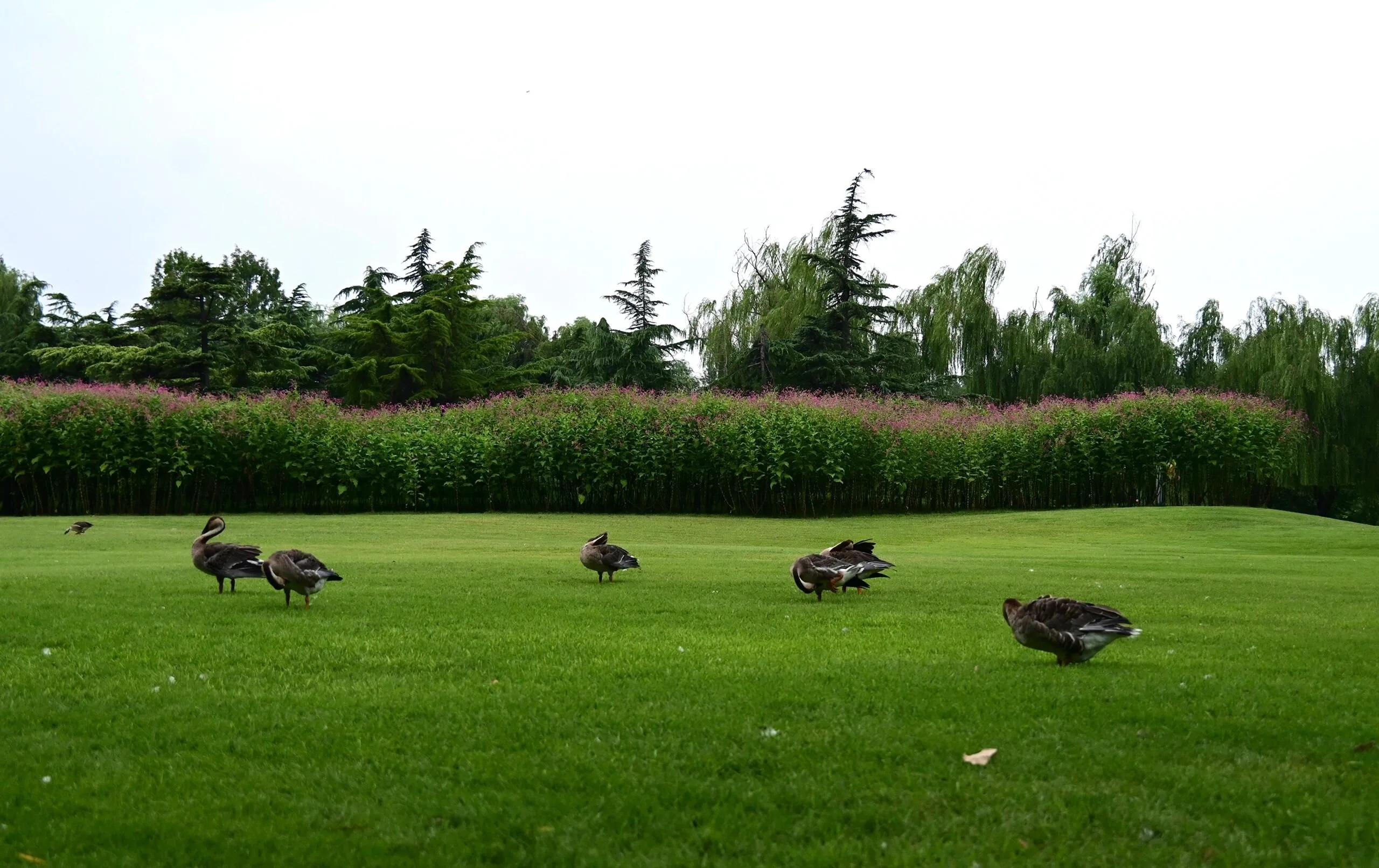 园内可以近距离观察到众多小动物 ,包括成群结队的各种鸽子,夹杂其中的斑鸠,优雅的黑白天鹅,以及在小木屋里悠闲栖息的水豚。此外,还能看到大雁、灰燕、孔雀和各种不同品种的鸭子。远处还可以望见梅花鹿和羊驼的身影。细心的游客还能发现小鹦鹉、苍鹭和松鼠等小动物的踪迹。