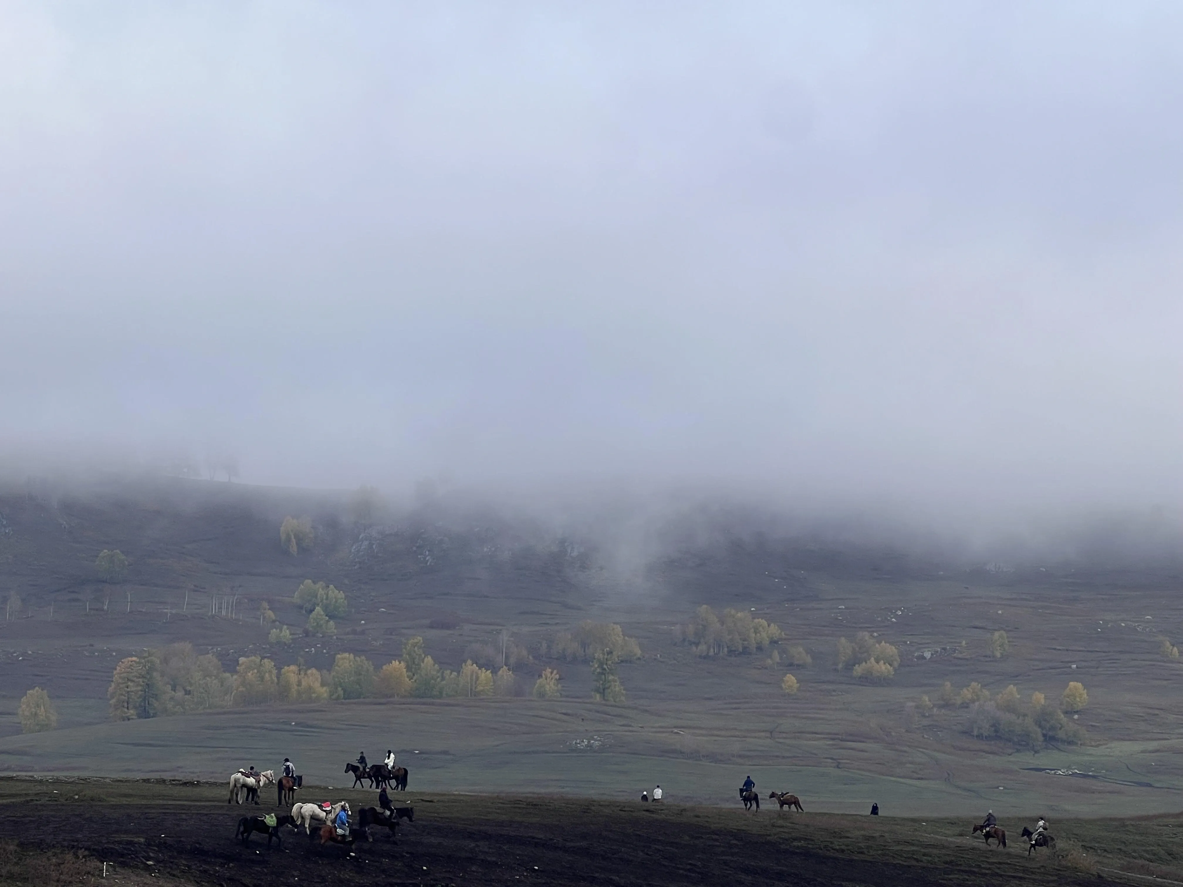 次日清晨,爬山观赏日出和晨雾,禾木的晨雾景观确实令人叹为观止。有同行者体验了骑马,但考虑到安全因素,不建议骑马上下山。
