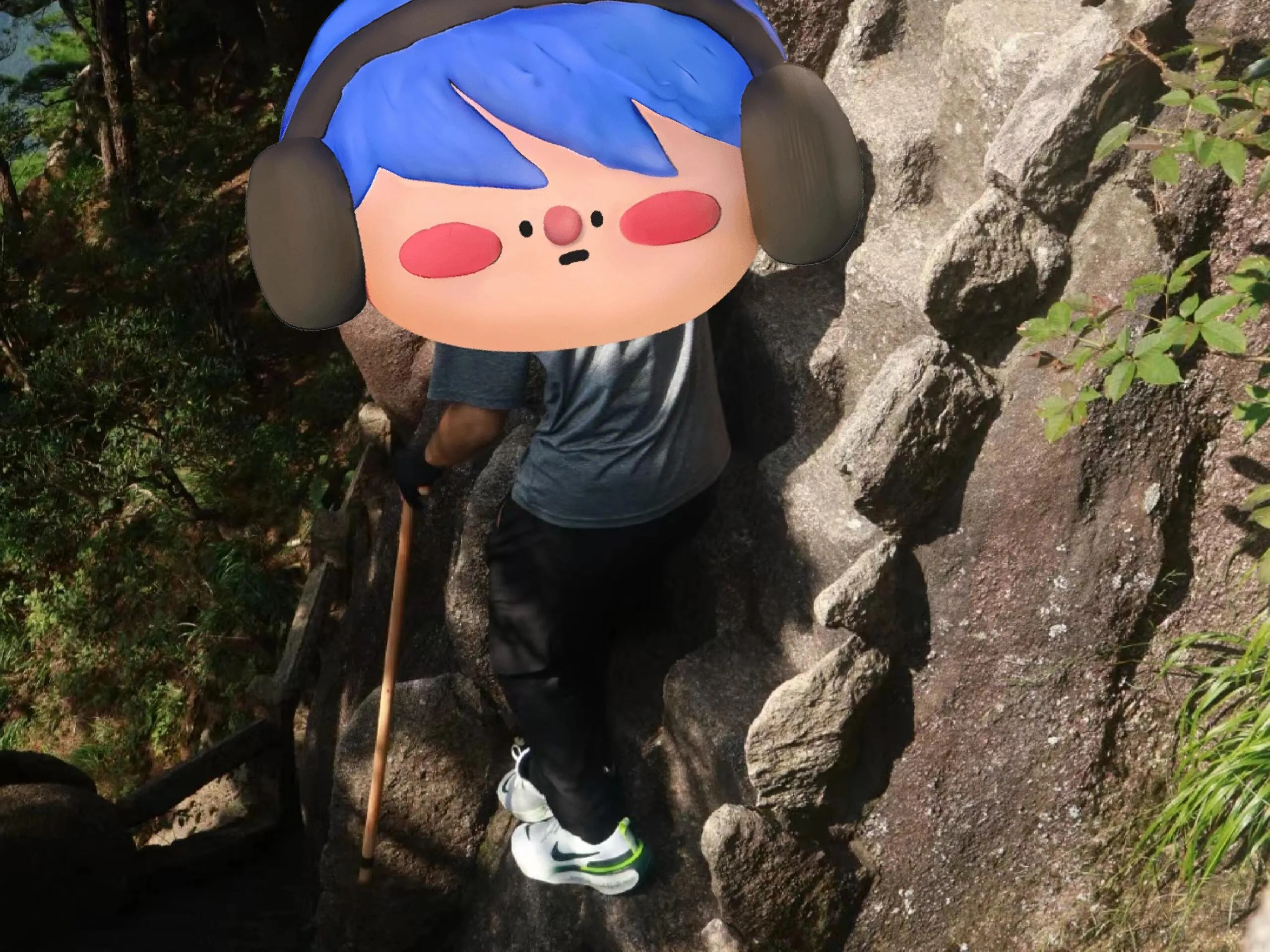 下山路段坡度平缓,大约45度左右,但缺少休息平台。