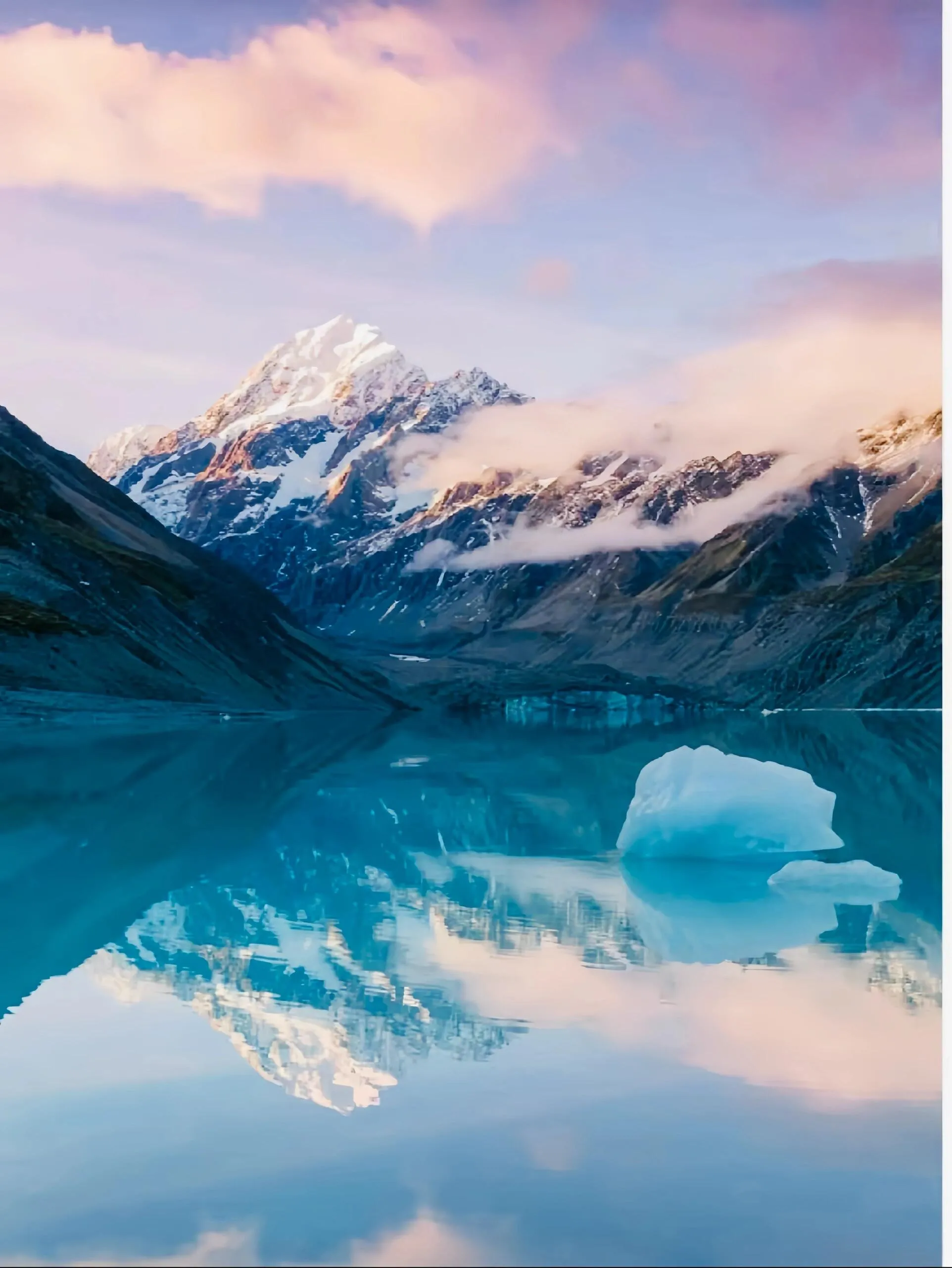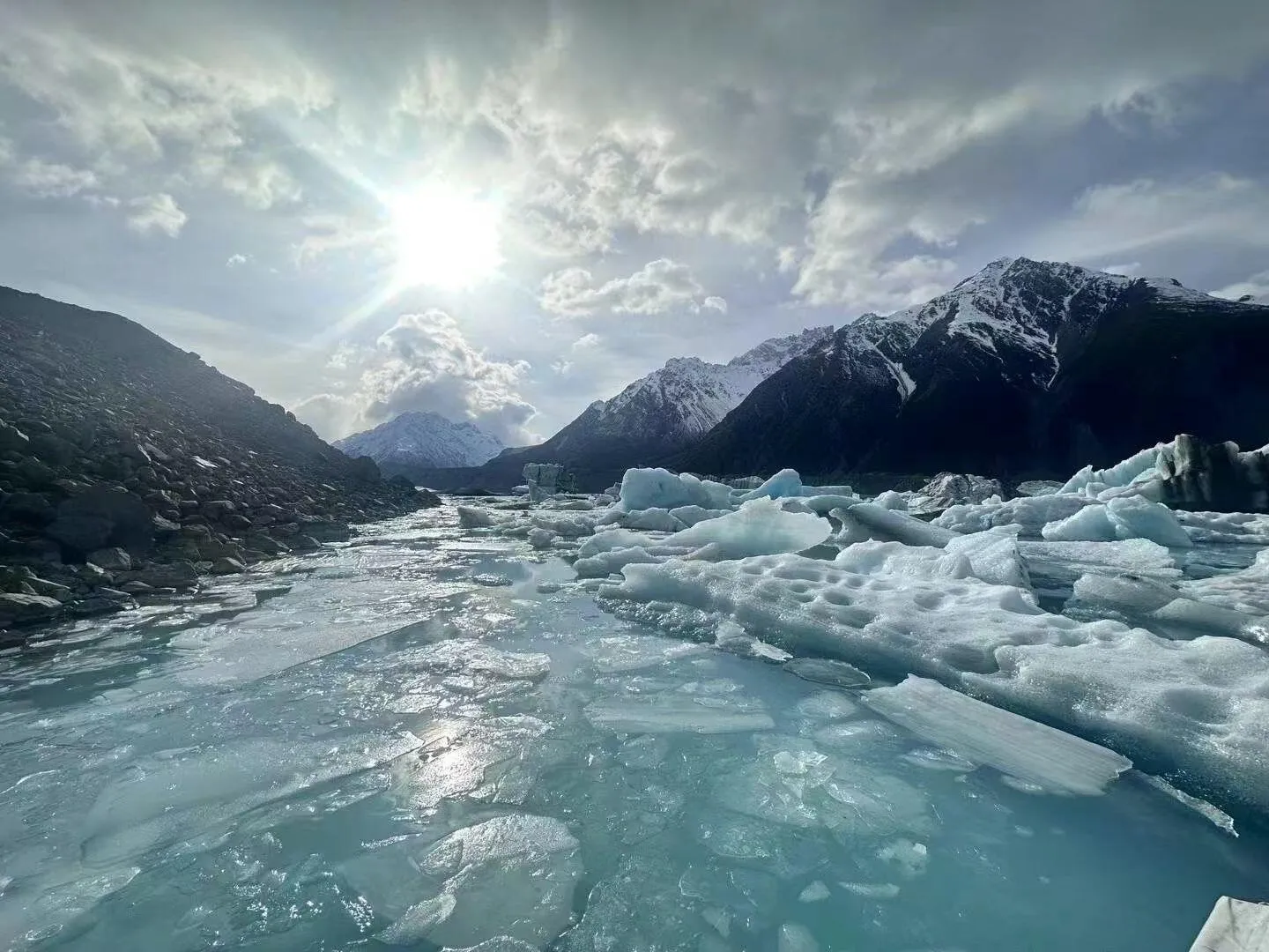 库克山位于新西兰南岛,其冰川徒步主要分为两条路线:塔斯曼冰川路线和胡克步道。
