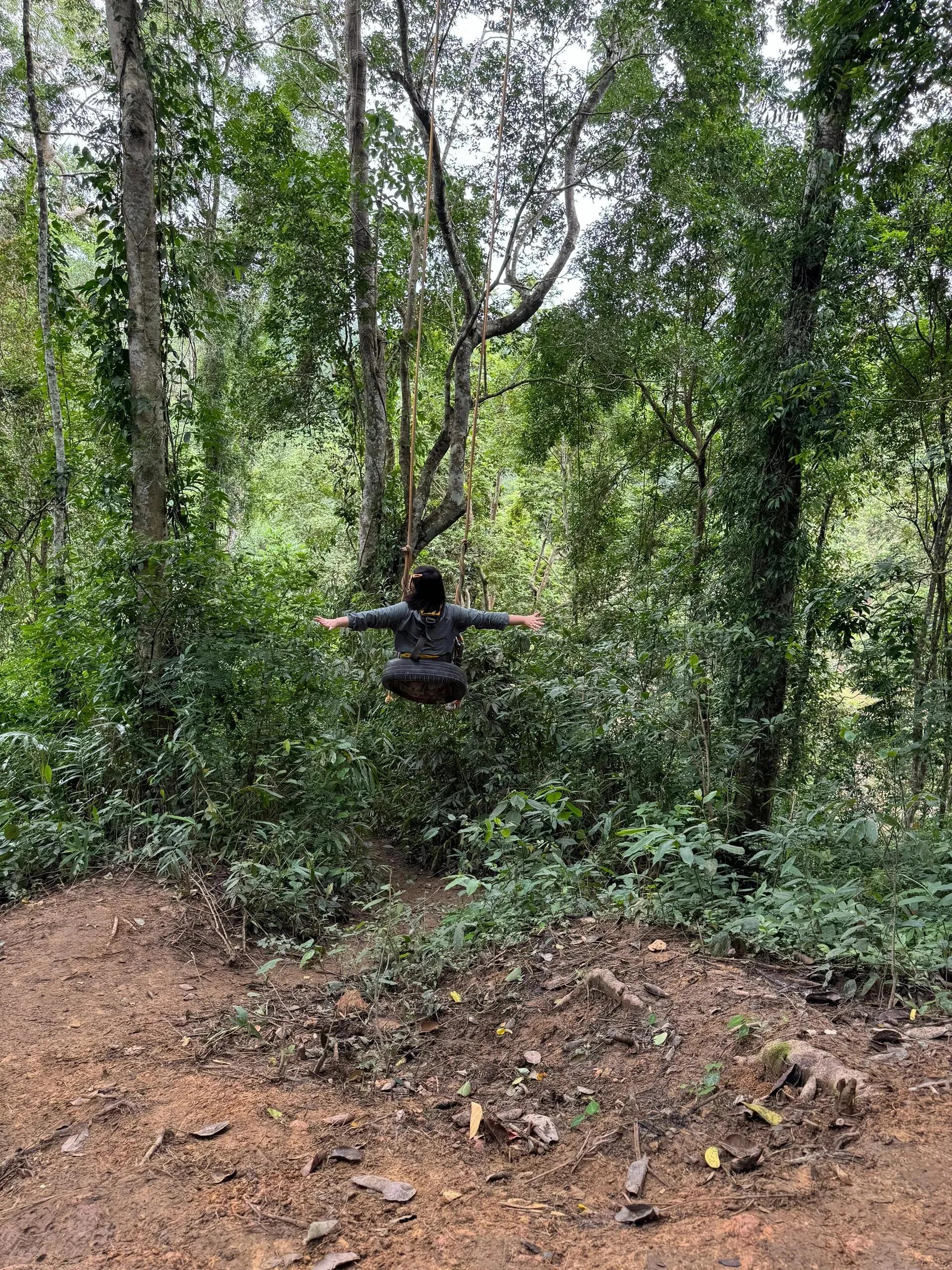树降和高空秋千是此行的精华项目,刺激程度令人尖叫。雨林大餐提供各种烤肉、烤鱼和玉米南瓜,虽然味道普通,但在疲惫之时依然觉得美味。