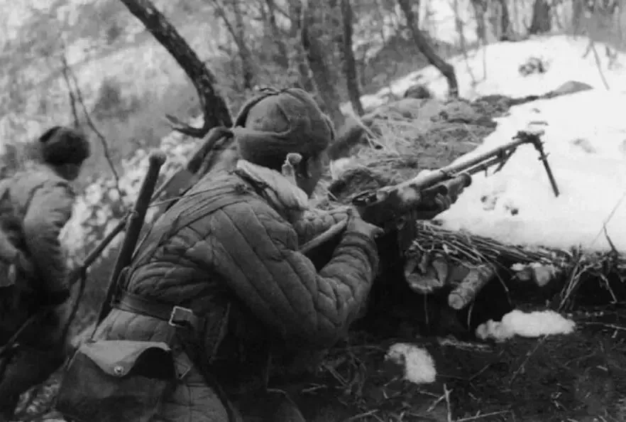 美军运兵车和弹药车经过小山包时,2排集中轻重机枪猛烈射击,成功打爆敌军弹药车,爆炸声响彻葛岘岭,美军死伤惨重。