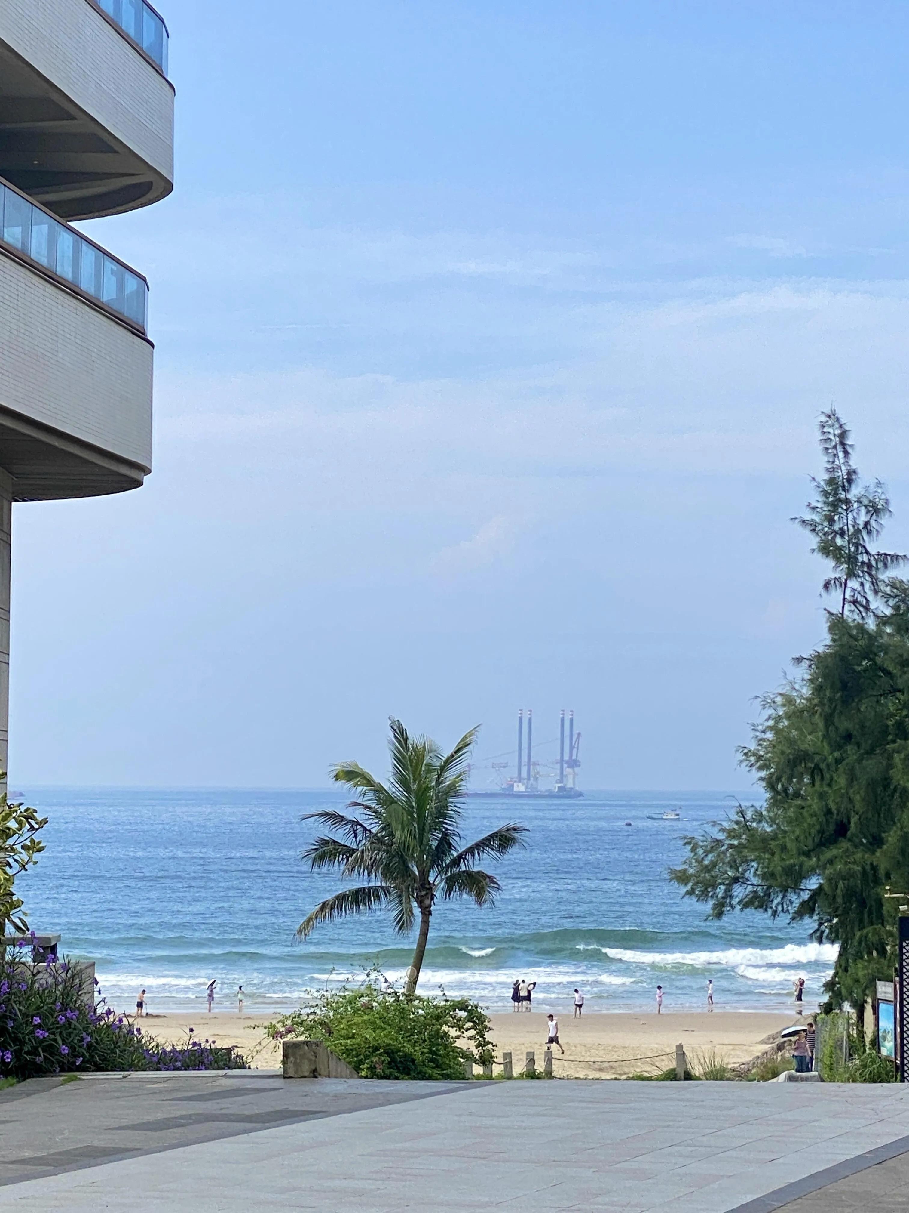 第一晚选择了十里银滩的南海湾花园1栋,3房2厅,花费950元。优点是一线望海,视野无遮挡,海岸线很长。缺点是暑假价格偏高,性价比不如6月(当时只需550元),且住宿环境一般。