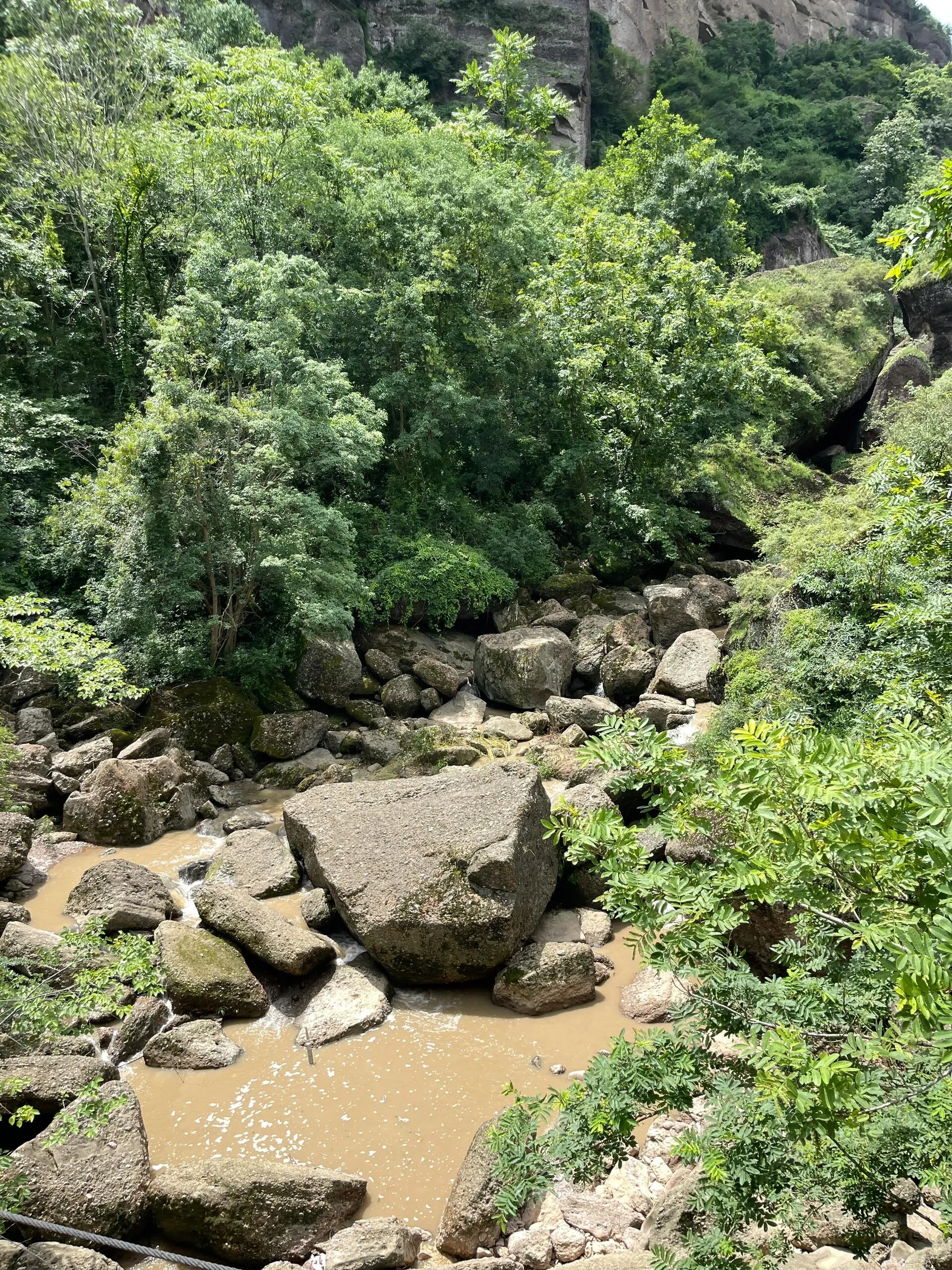 走完木栈道,穿过“一线天”就是娃心心念念的 柿树坪滑滑梯“索道” 。这是北门省力点三,可以体验一段滑滑梯。如果从南门入,可能就体验不了了。