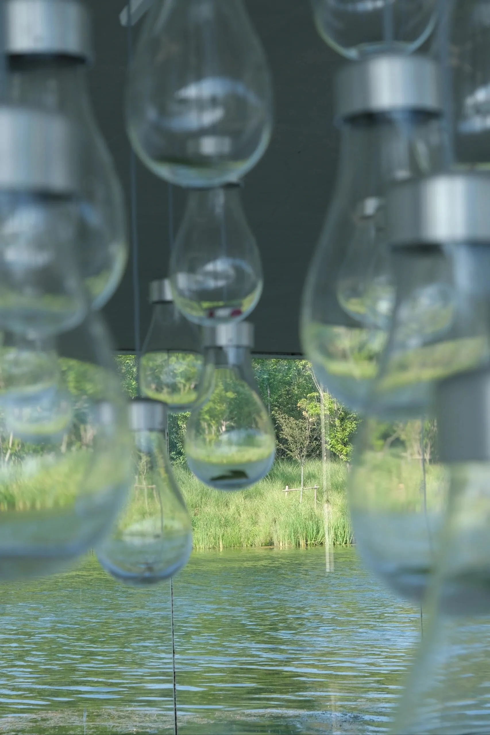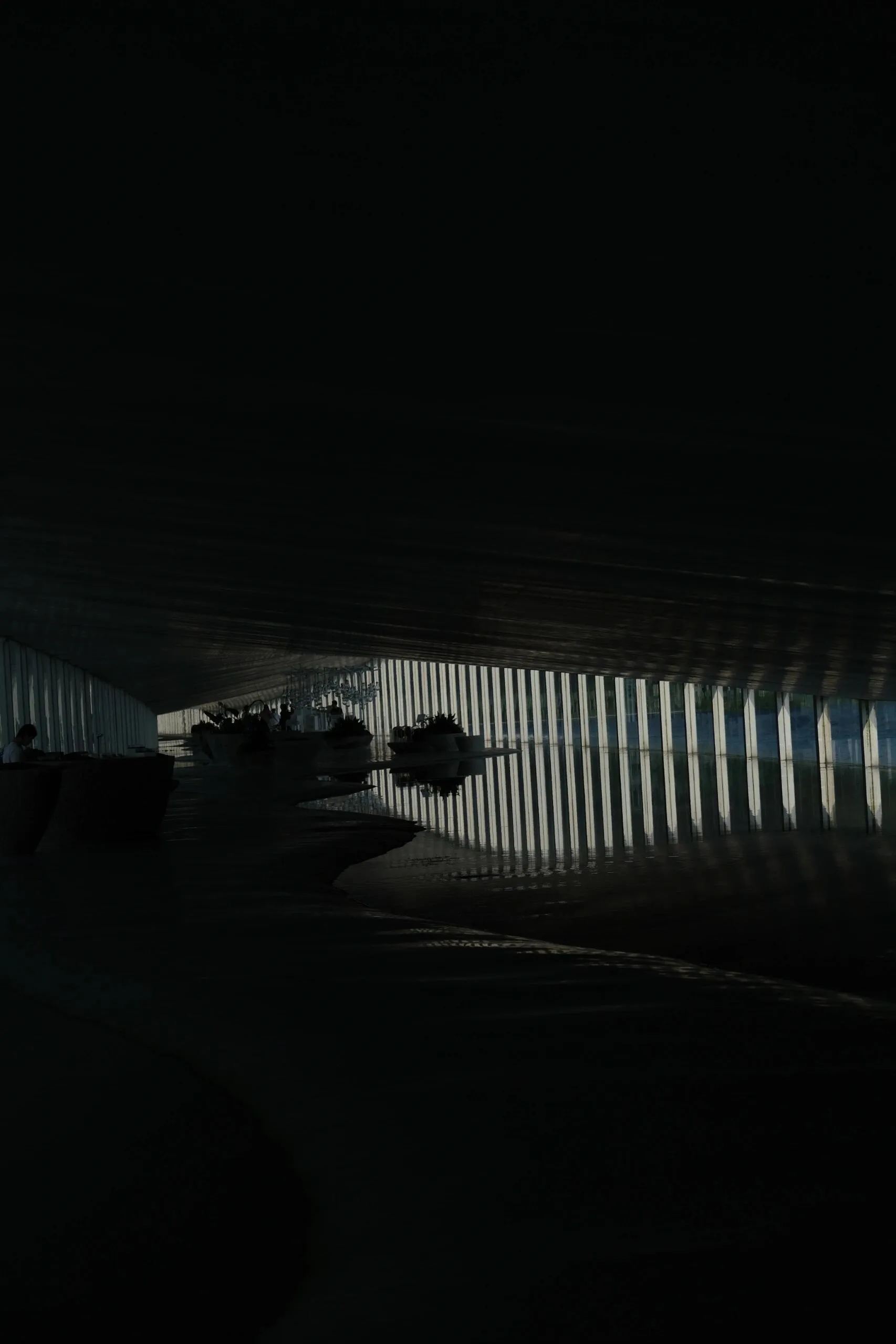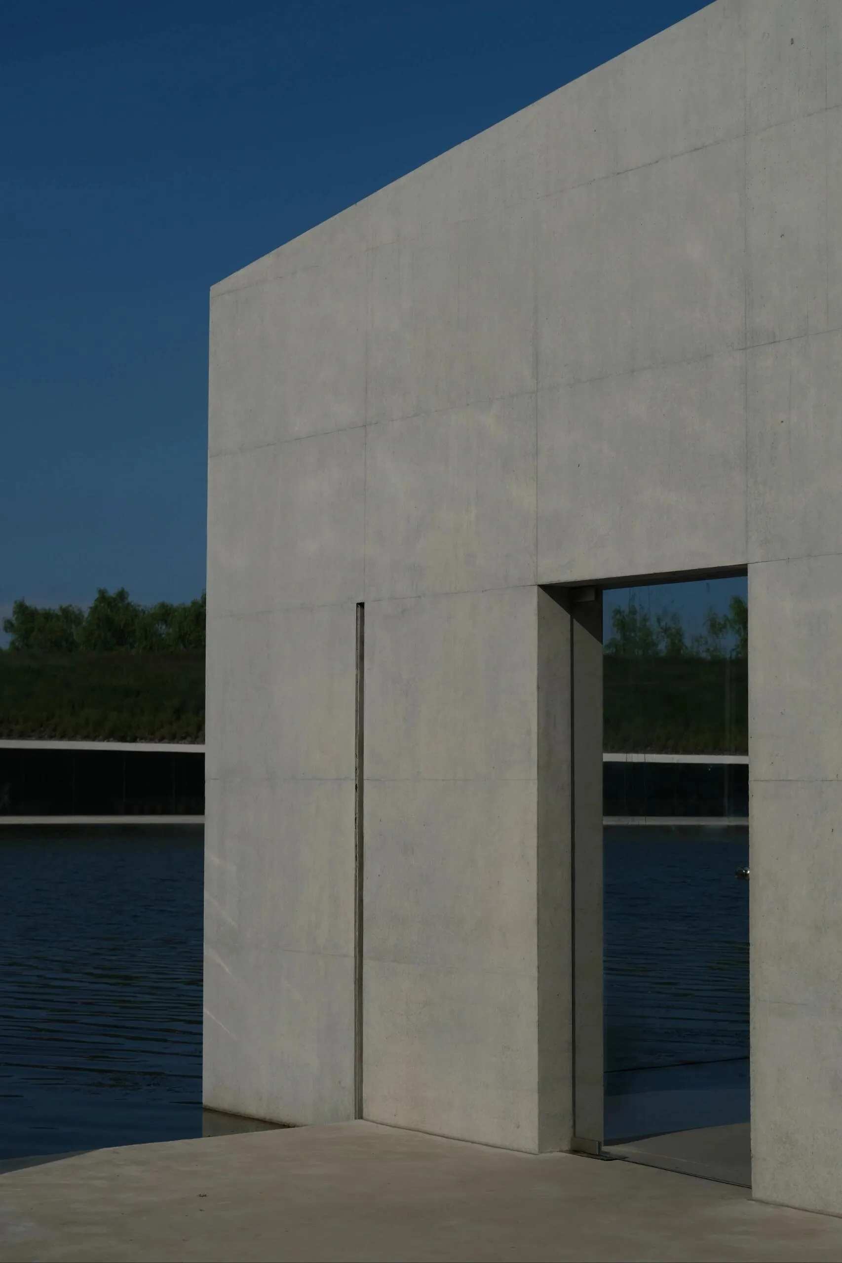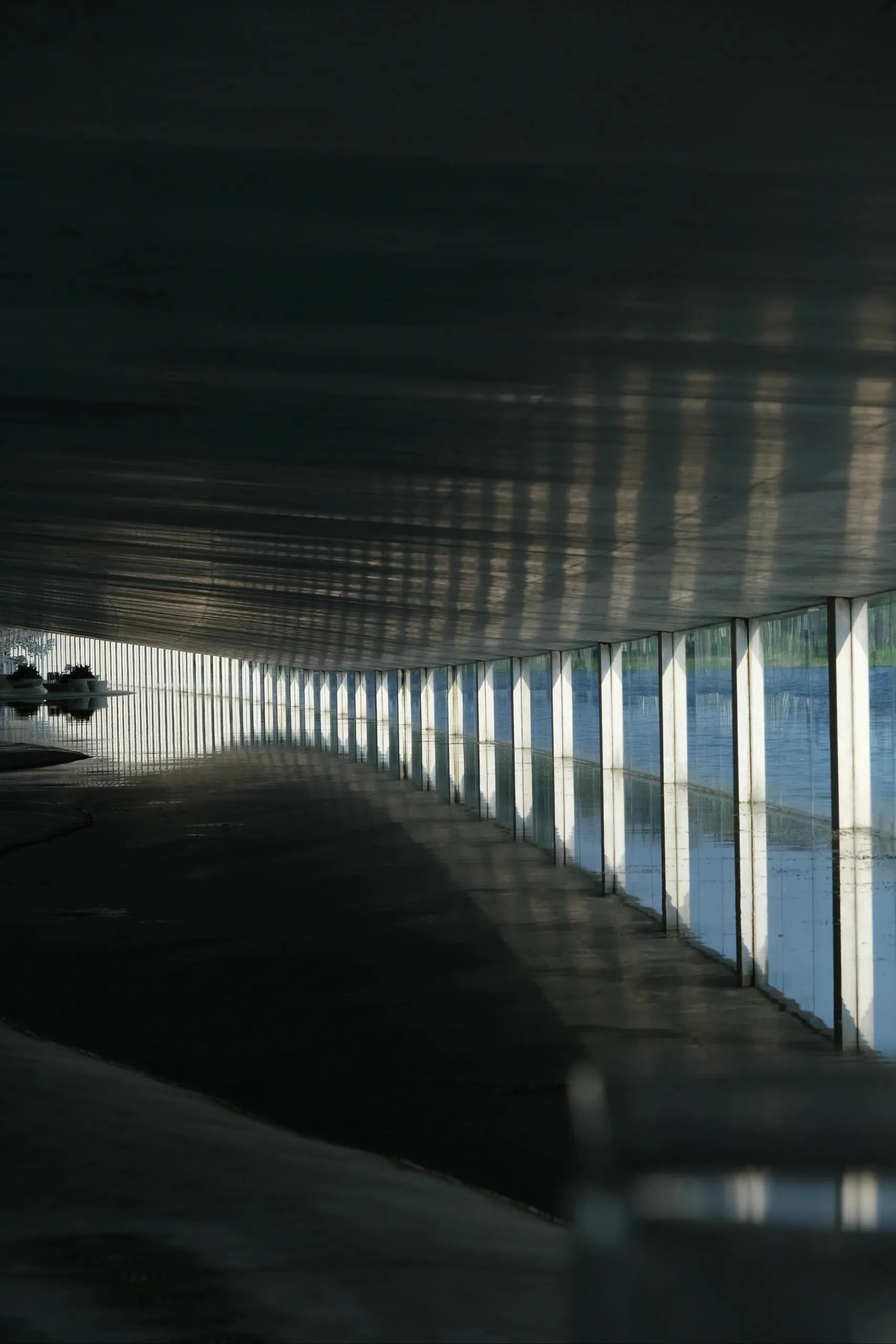建筑内部也引入了水体,波光粼粼。 玻璃幕墙和隔断映射出不真实的光影,就像这个长长的夏天,明知道要结束了,却久久不愿离去。