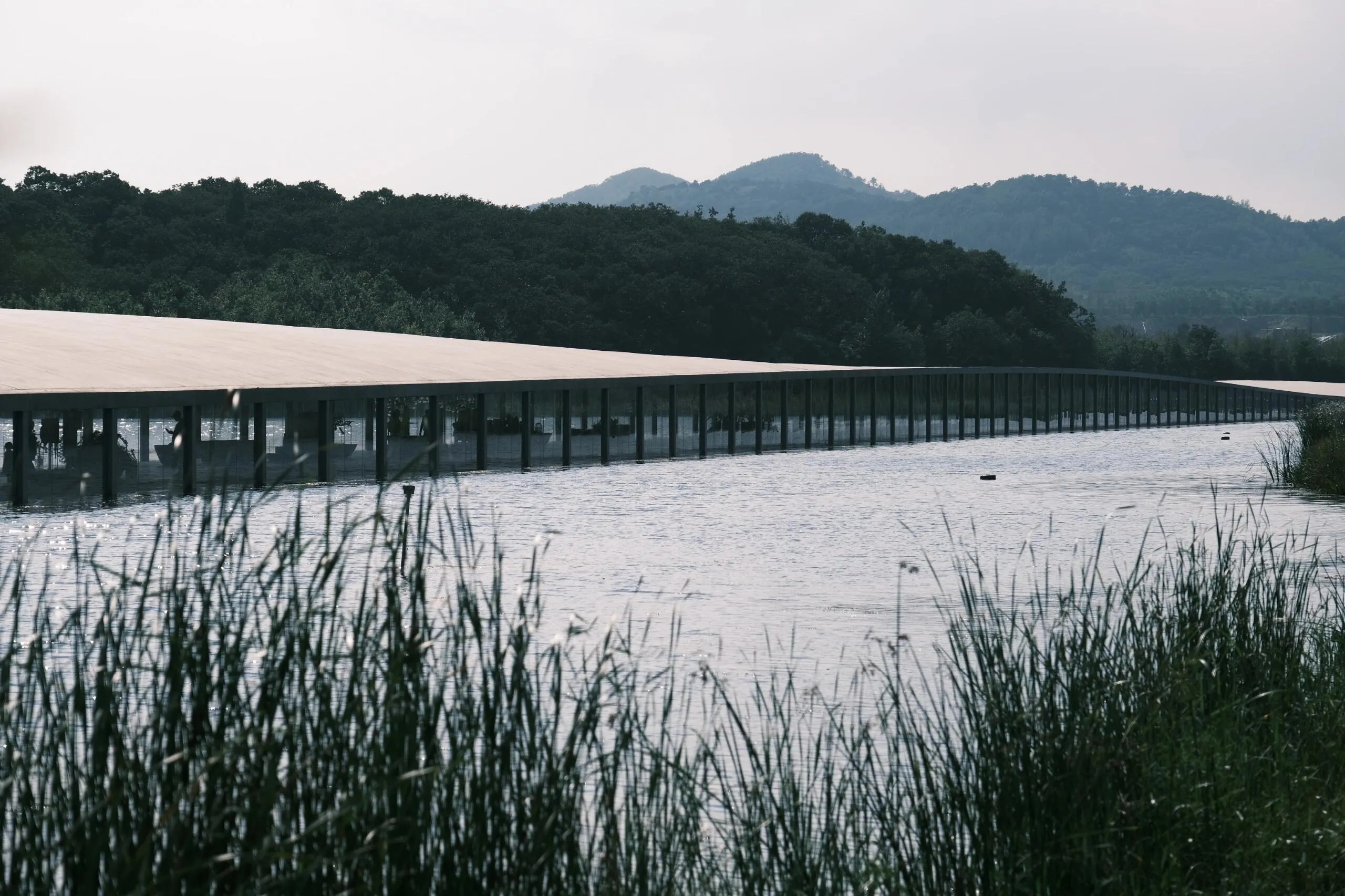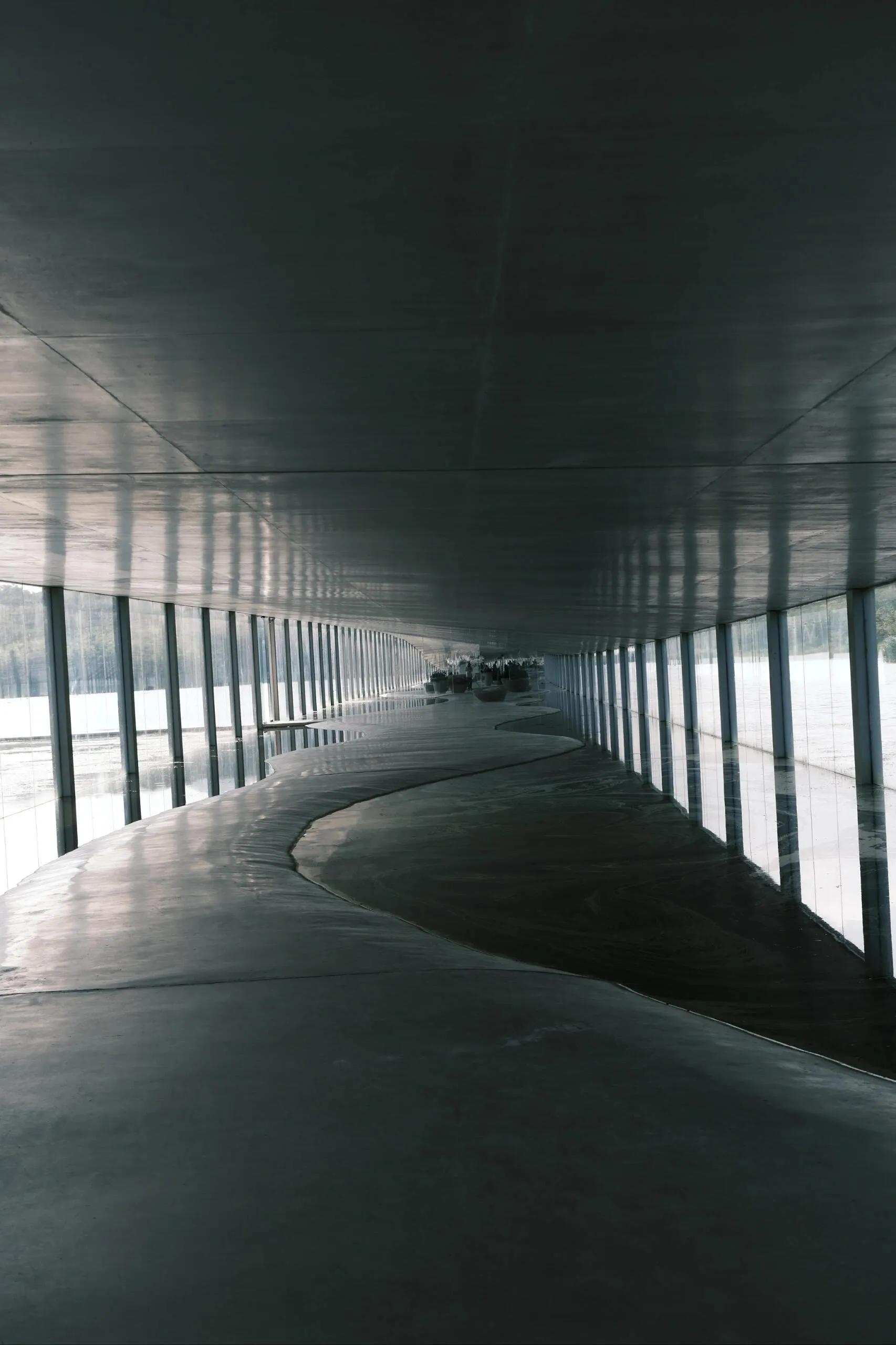 驱车前往 日照五莲县 ,寻找 在水美术馆 。这座长长的建筑如同白练般延伸在水面两端,与世隔绝,梦幻无比。通过水面的栈道进入建筑内,仿佛进入了另一个世界,一个水中央的世界。