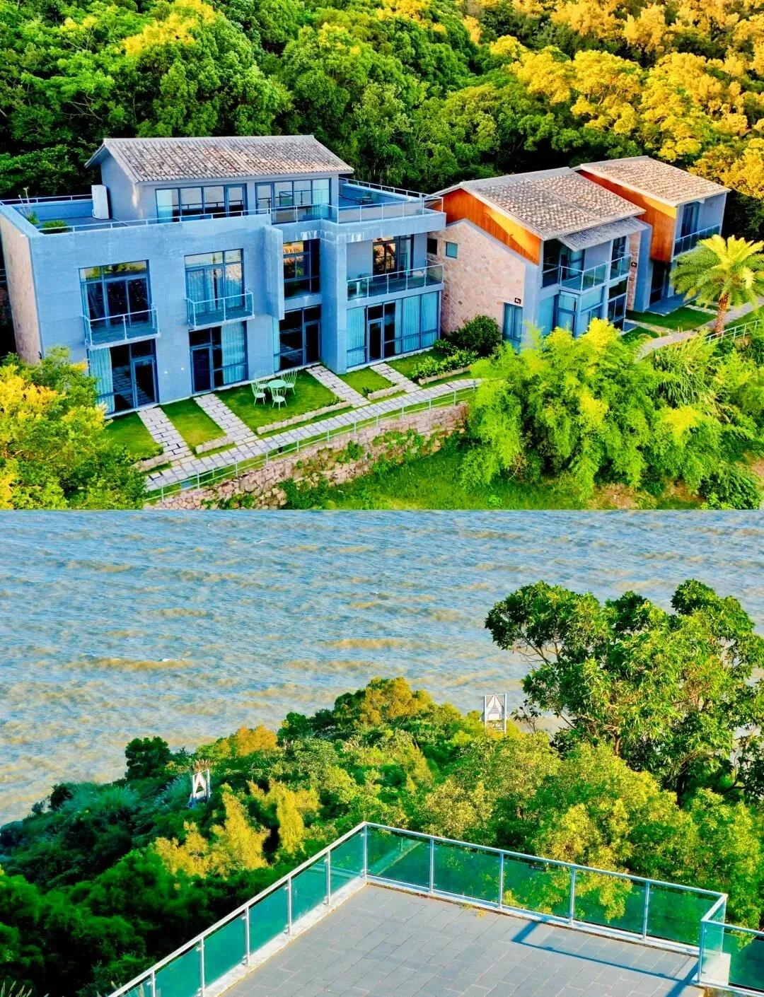 温州玖栖海上桃源里酒店位于温州市北岙街石盘路49号自然村 ,坐落在海边的悬崖上。从酒店乘坐电梯即可抵达海边,穿过绿色栈道,眼前就是广阔的海域。靠近岸边的海水略带黄色,越往中间则越显碧绿,景色壮观。