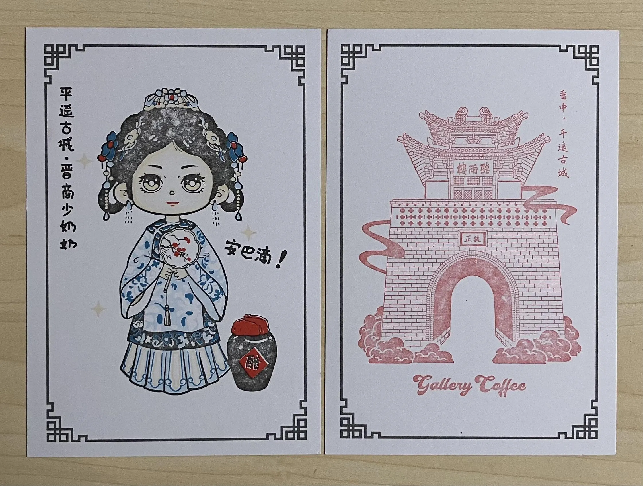 既是手机店,又是文创店和咖啡店。大众点评打卡可盖章,有套色一枚,单色一枚。位于平遥县衙分居听雨楼两侧,位置容易找到。