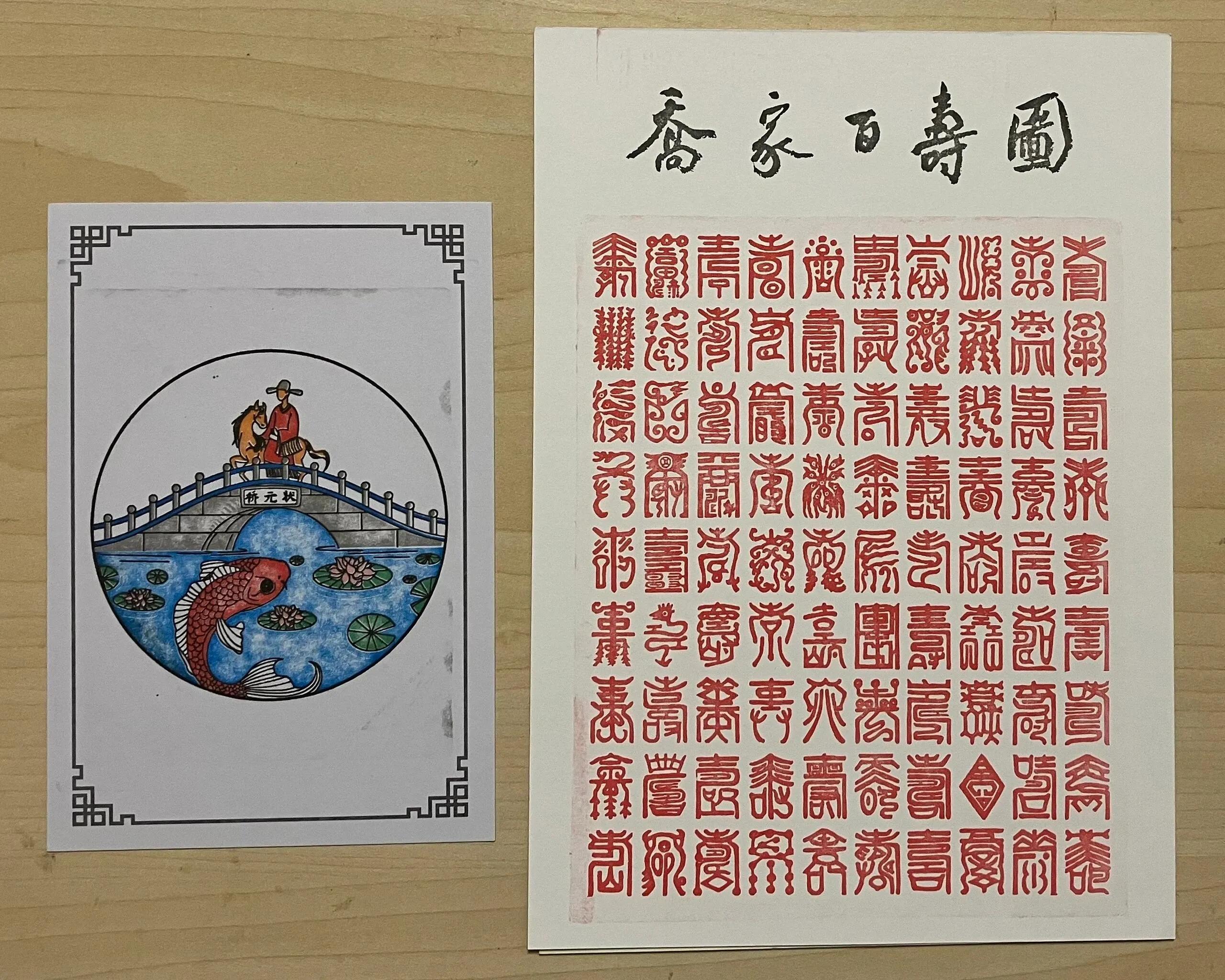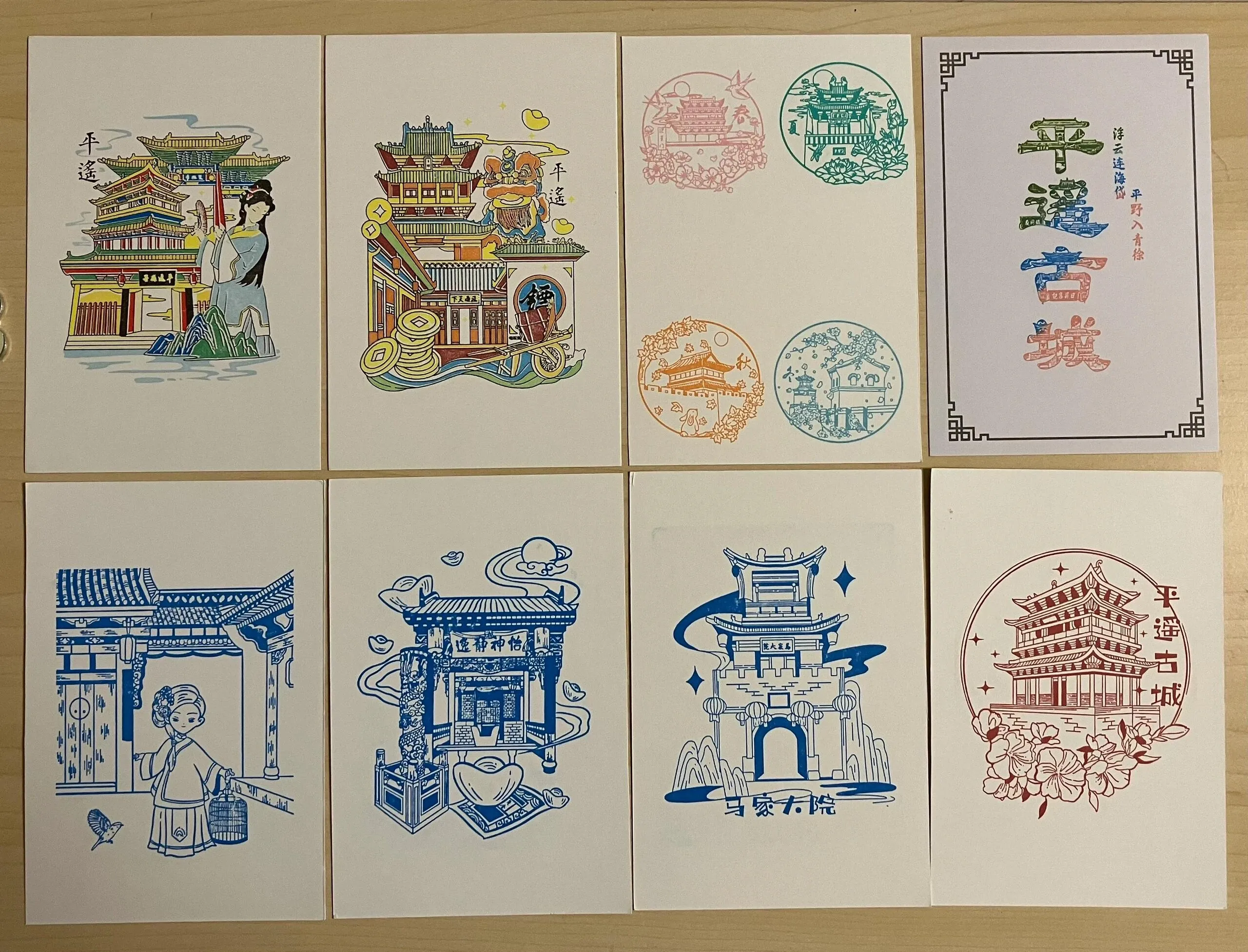 在景区内靠近出口的宁首堂里状元亭文创店可以任意消费获得一枚套色章,还有一张乔家大院的百寿图(A5卡纸大小)。景区出口往停车场方向商业街上的“画了个乔家”文创店任意消费可获得2枚套色章,以及若干单色章。王家大院“桂鑫书房”目前只有单色章可盖。