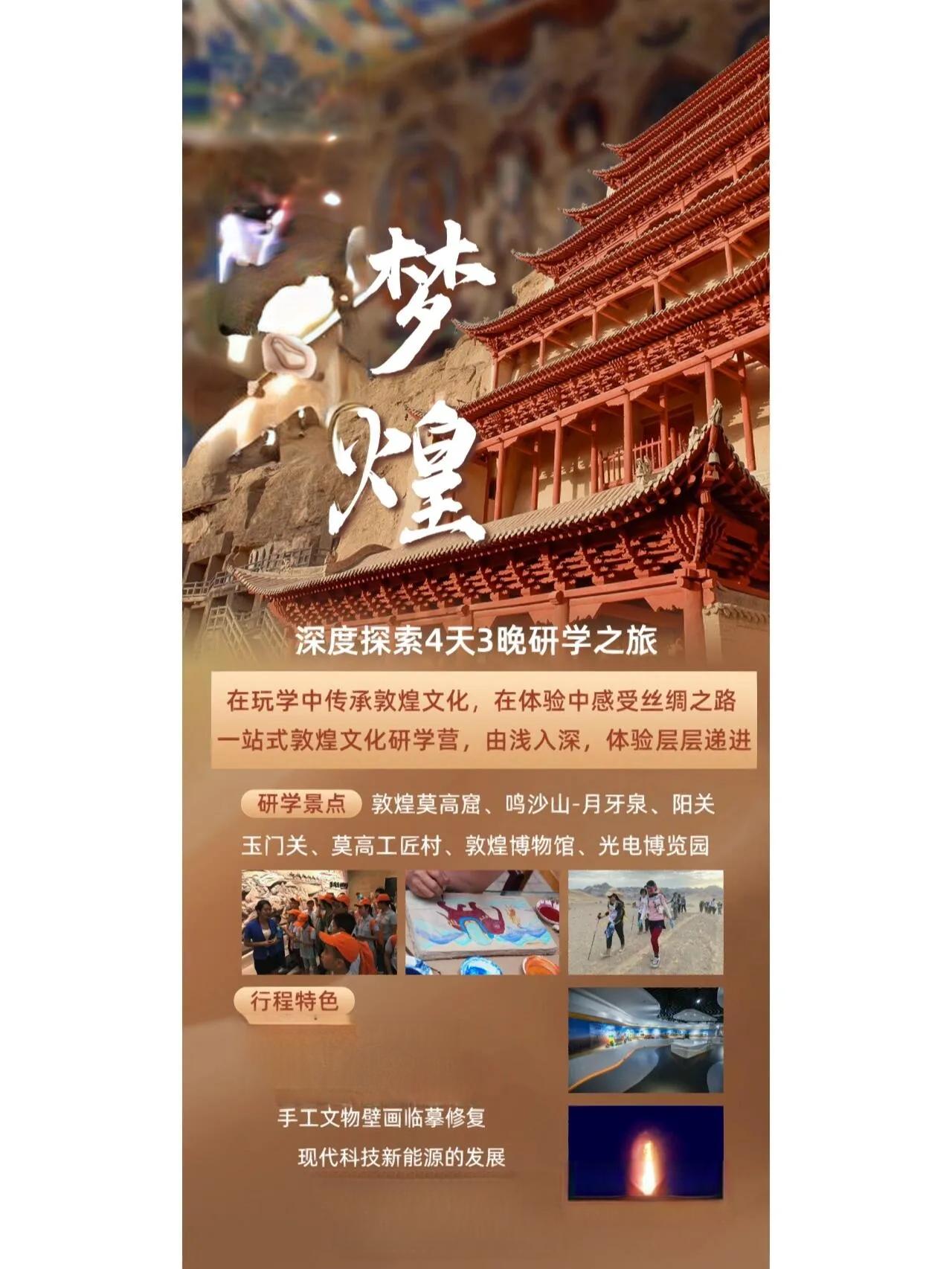 敦煌,这座拥有1500年历史的古镇,是中西文化交汇的地方,也是古丝绸之路的重要要塞。这里集沙漠、戈壁、雅丹等多种地貌于一体,为研学提供了丰富多样的课程资源。