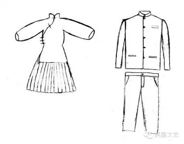 按照规定,女性校服分为两种:一种是蓝色长袍,齐领,前襟右掩,长至膝与踝之间;另一种是袄与裙,袄为蓝色,只及腰,袖长达肘,裙为黑色,长及足踝。