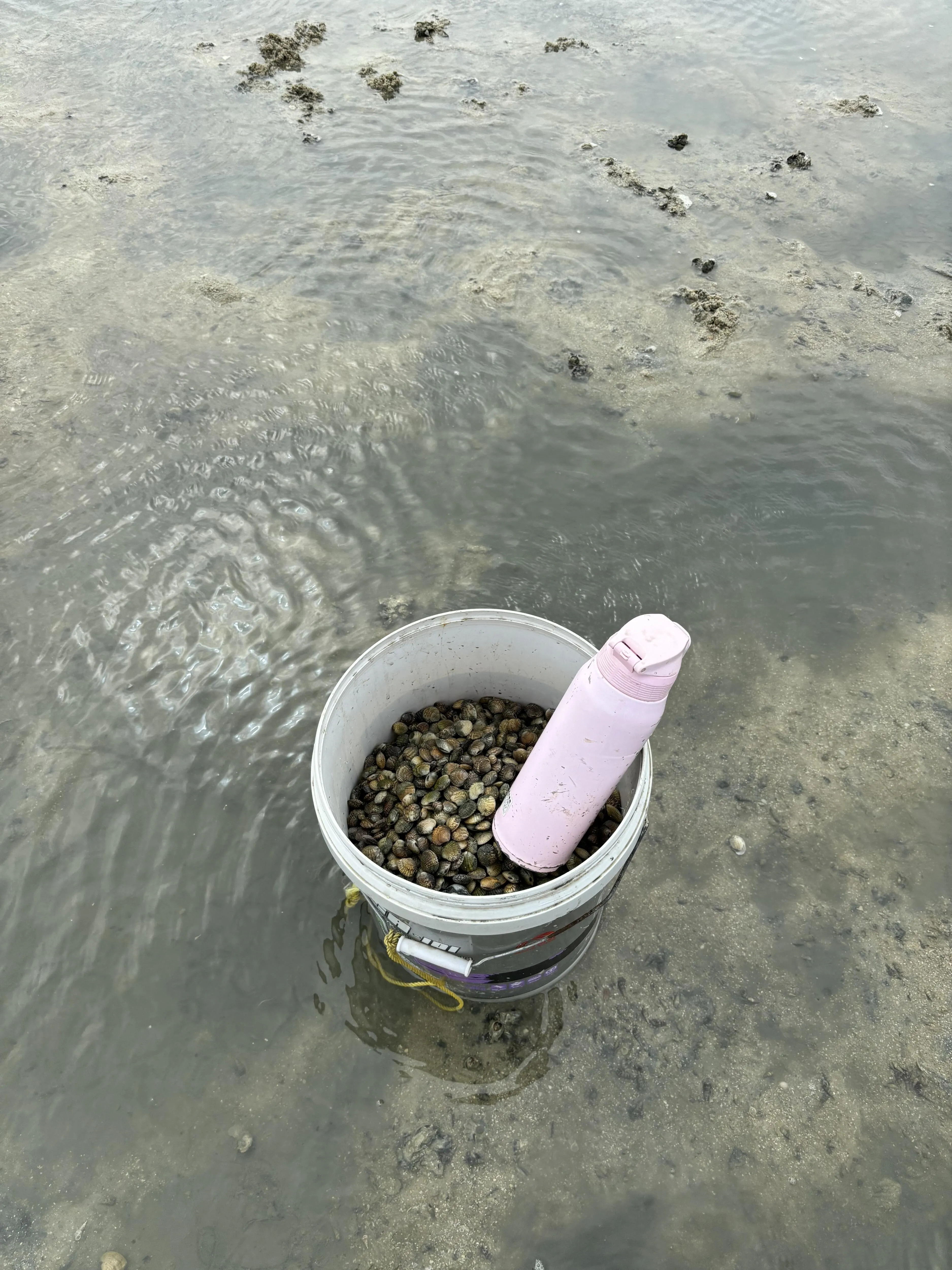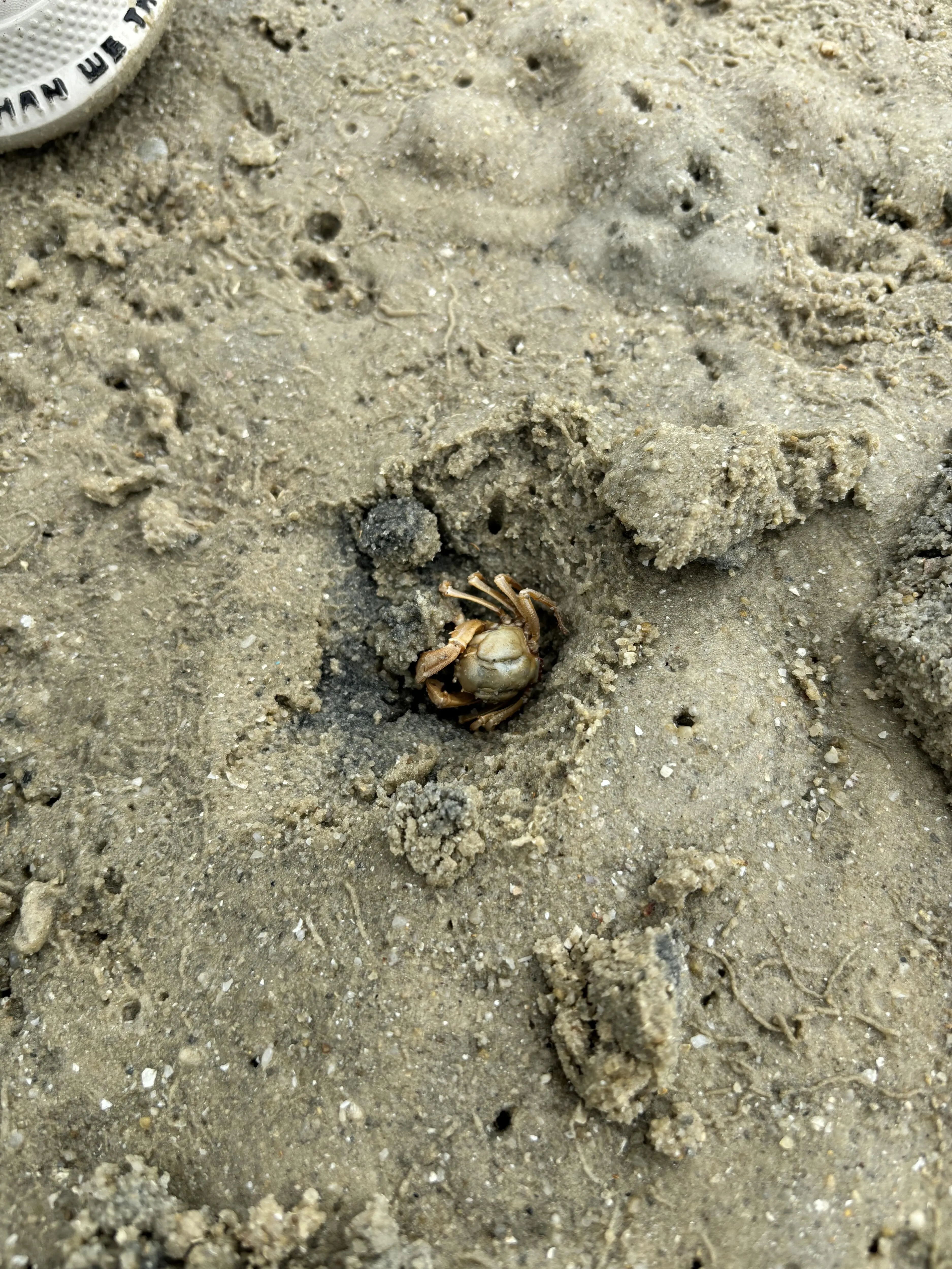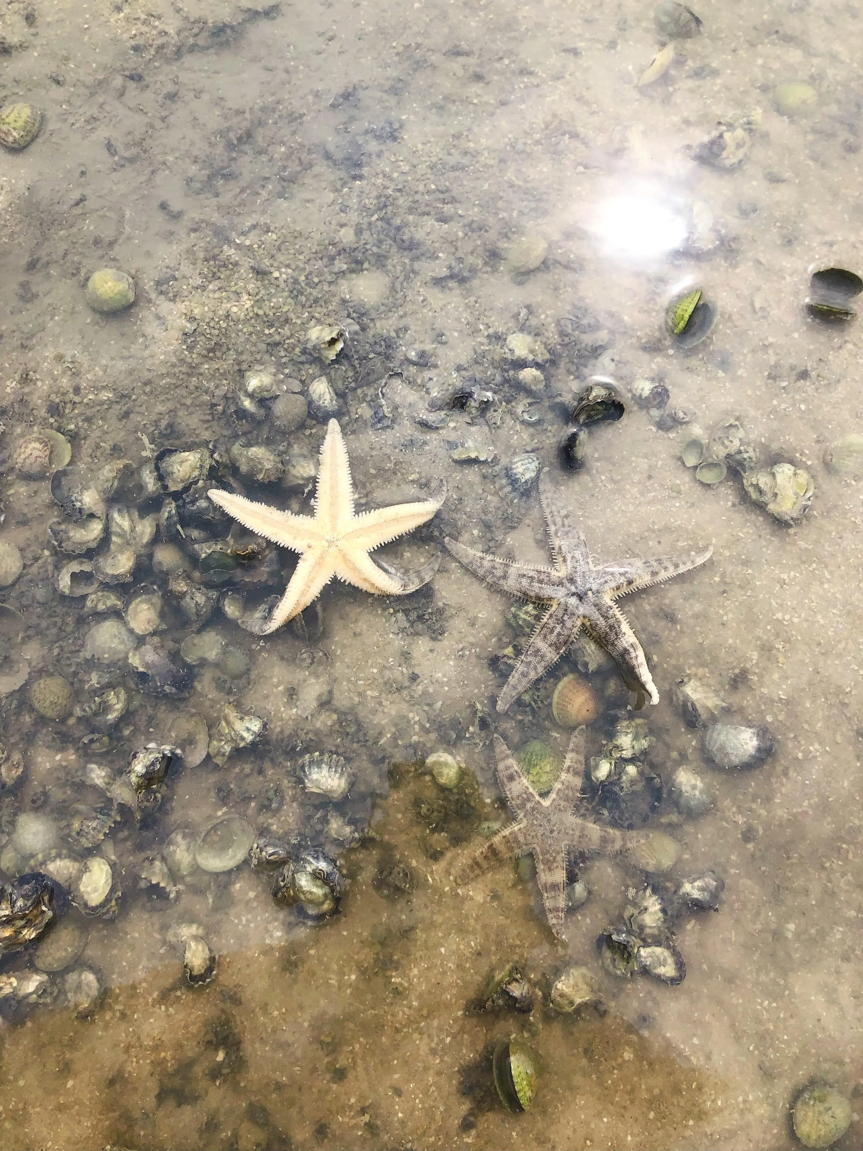 这边贝壳超多,寄居蟹也多,翻石头还有活体的宝螺。海星都不用去海里,就在海边溜达就能看到,海星是深色这面朝上,不好看出来,慢慢走着看,特别多。沙滩上的小圆洞,大概率有沙蟹,拿铲子需要快速挖,要不就跑走了。这片海滩真的是捡到不想捡,根本捡不完!