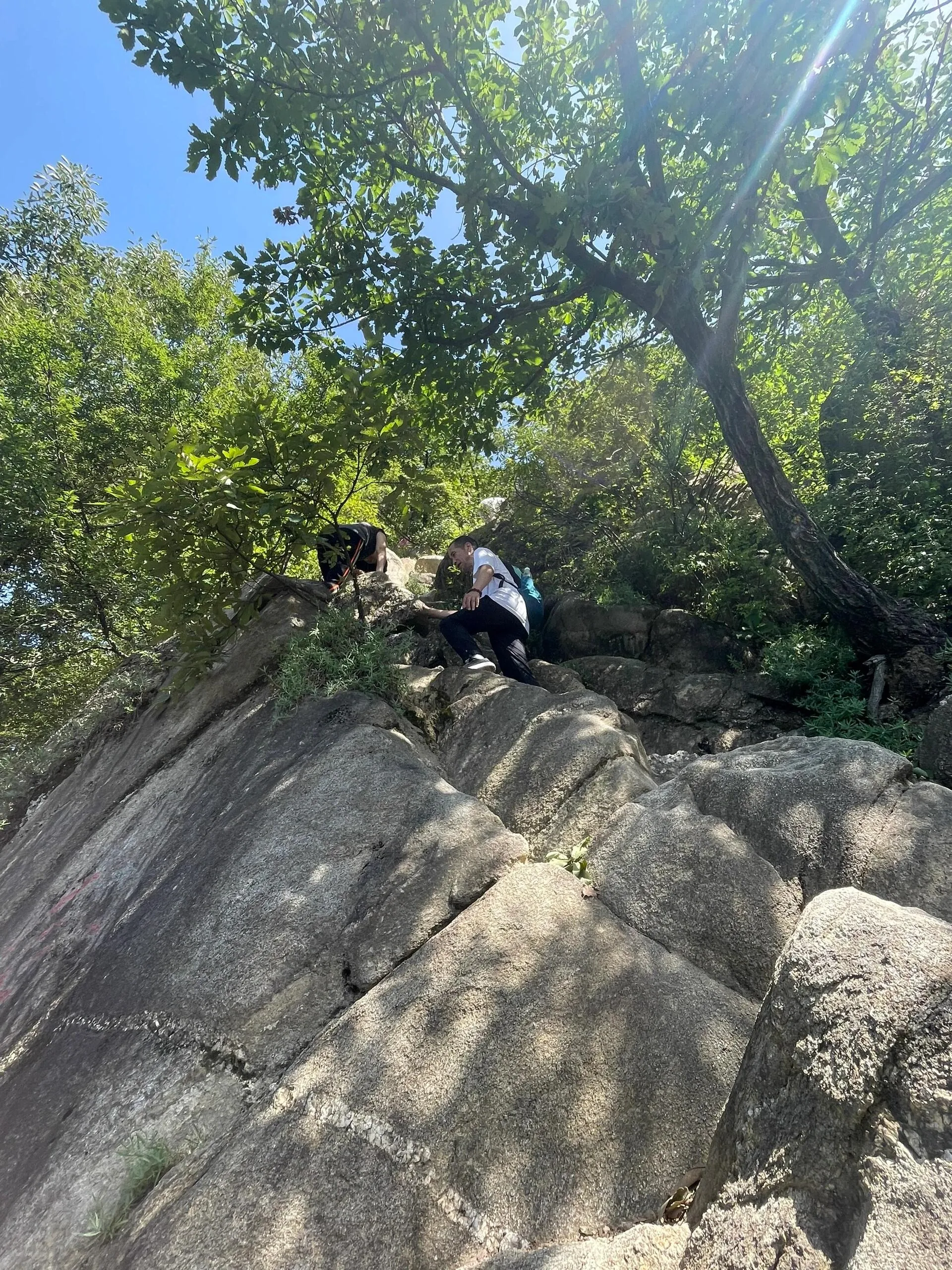 对于想要挑战自我的人来说,可以继续向上攀爬。在野岩入口处,有一段坡度接近90度的免费野岩路段。虽然手点和脚点不难,但爬起来还是有点刺激。有一定攀岩基础的朋友可以去尝试一下。如果选择徒步入口,就是秦岭野山的常规土路,记得穿登山鞋以防滑。