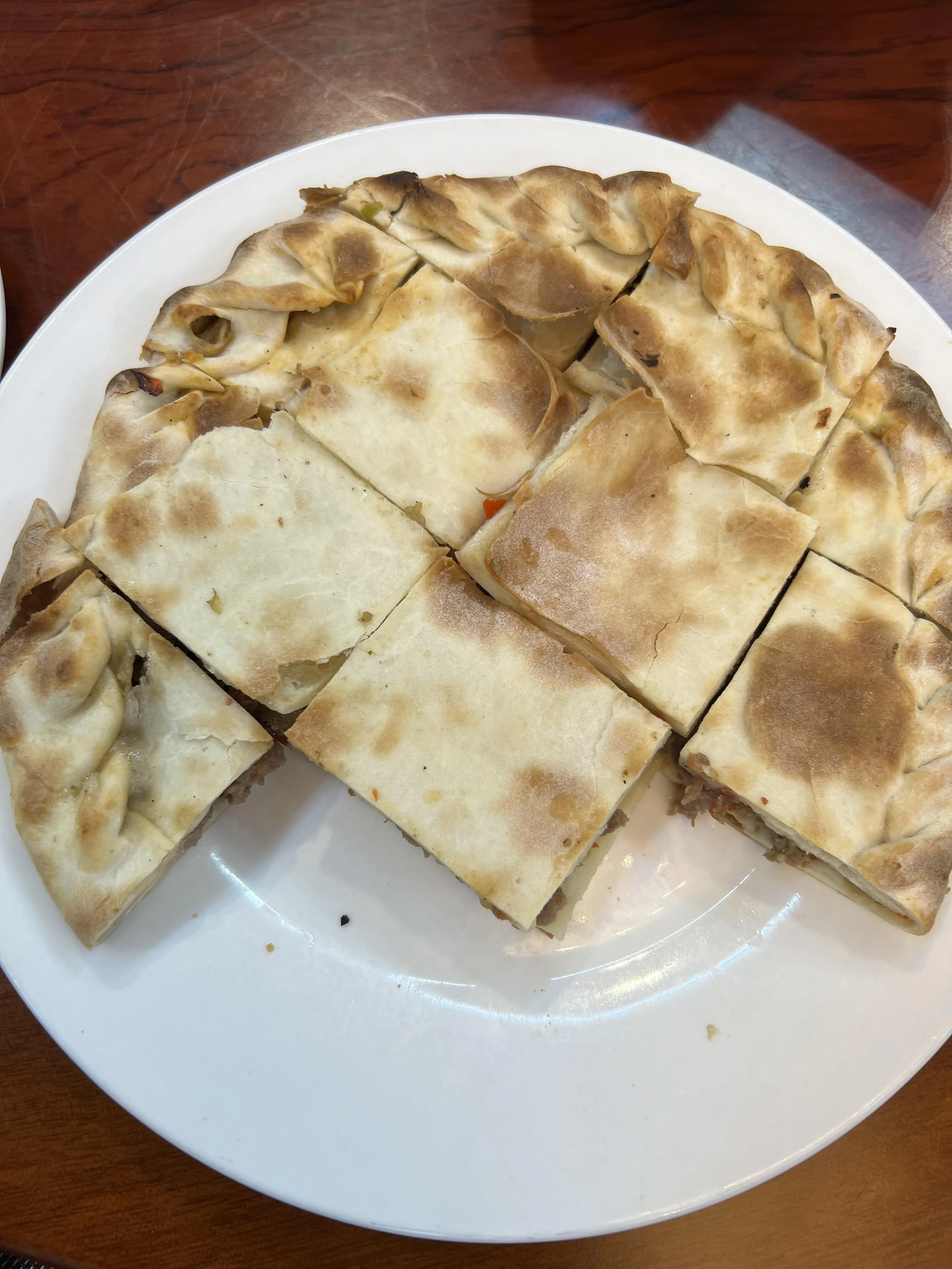 “库麦琪”类似于馅饼 ,将羊肉馅夹在两层饼皮之间烤制而成,食用时通常切成小块。