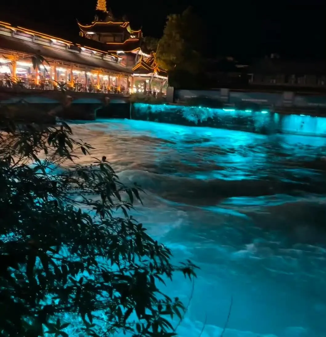 晚餐可在灌县古城解决,用餐后正好赶上蓝眼泪开灯时间。观赏完蓝眼泪后即可返回市区。