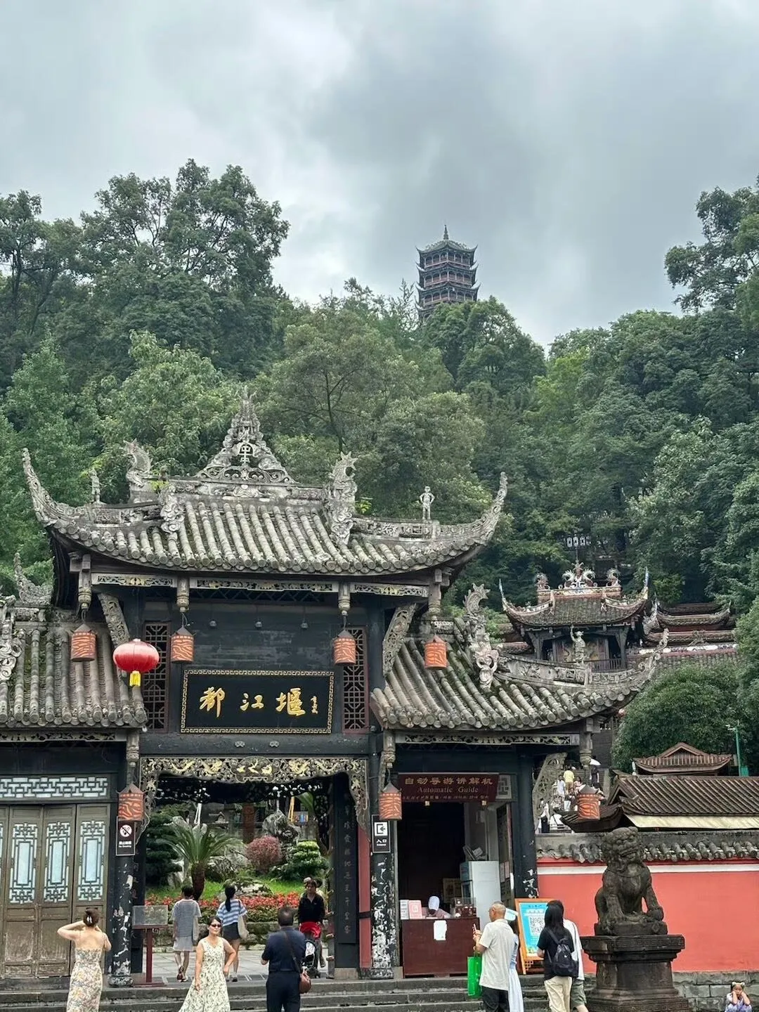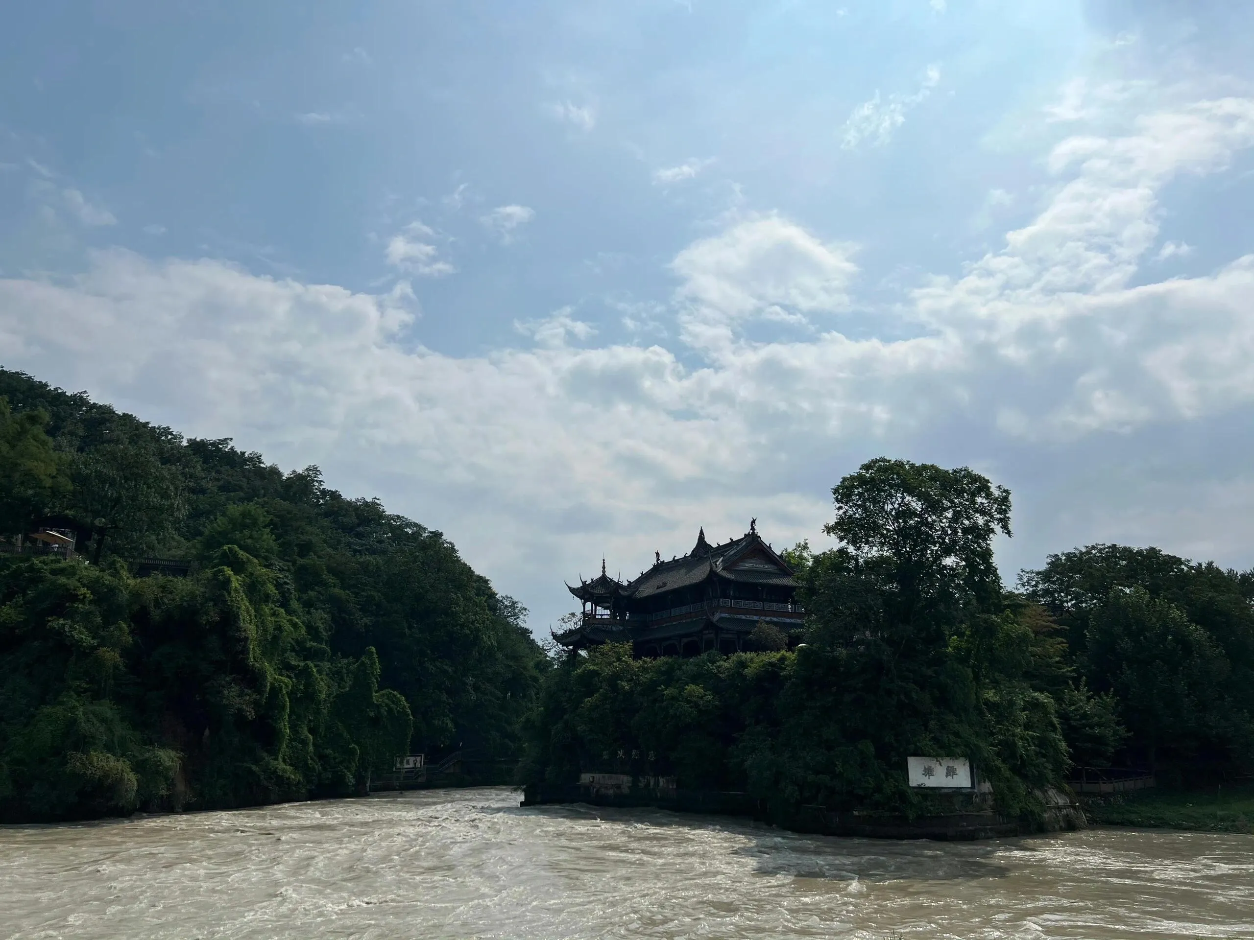 午餐后稍作休息,前往都江堰景区的秦堰楼6号入口。选择此入口是因为它位于景区高处,游览全程往下走,无需爬楼,更为轻松。游览结束后从离堆公园出口出来,向左步行即可到达南桥,进入灌县古城。