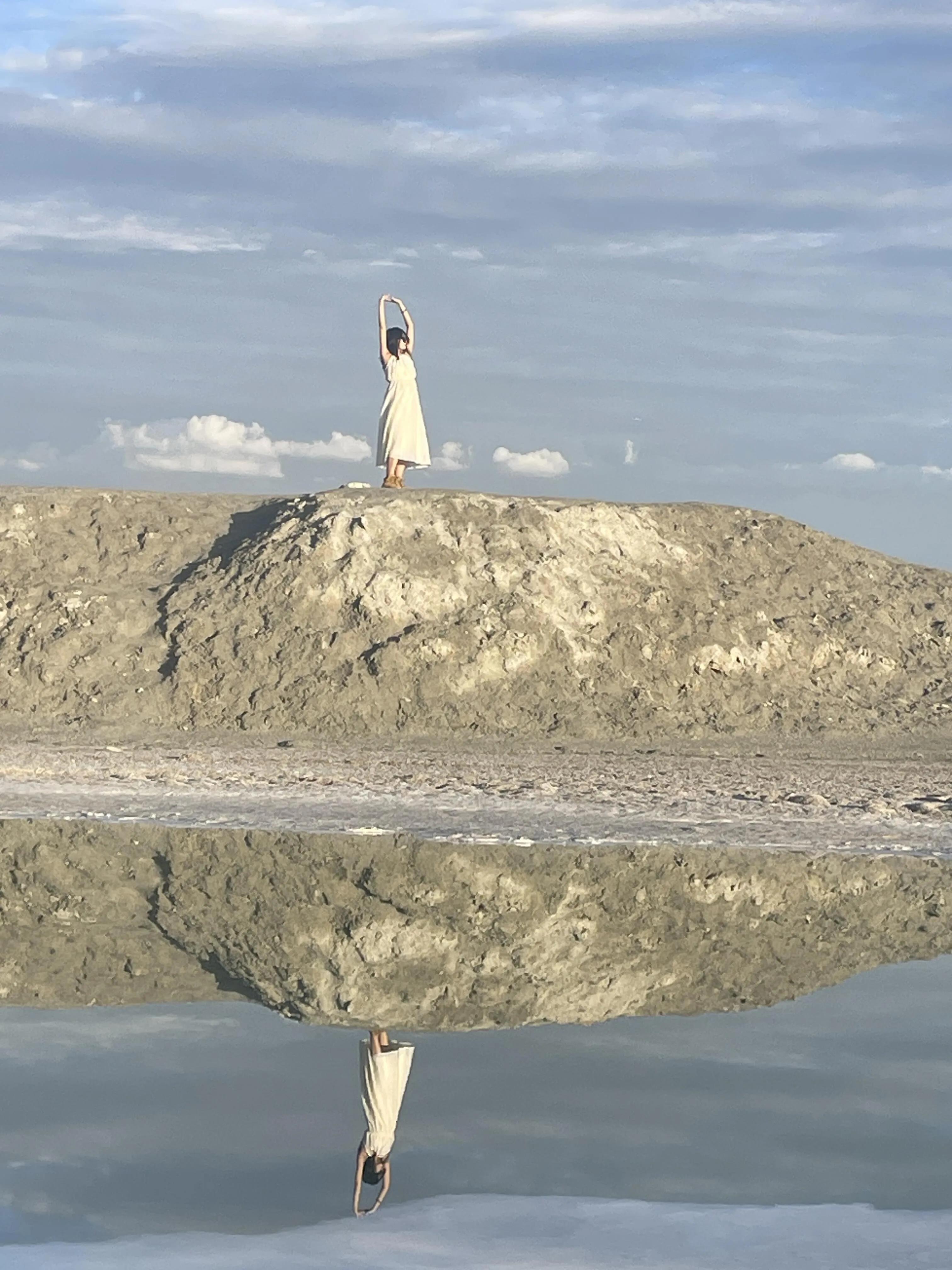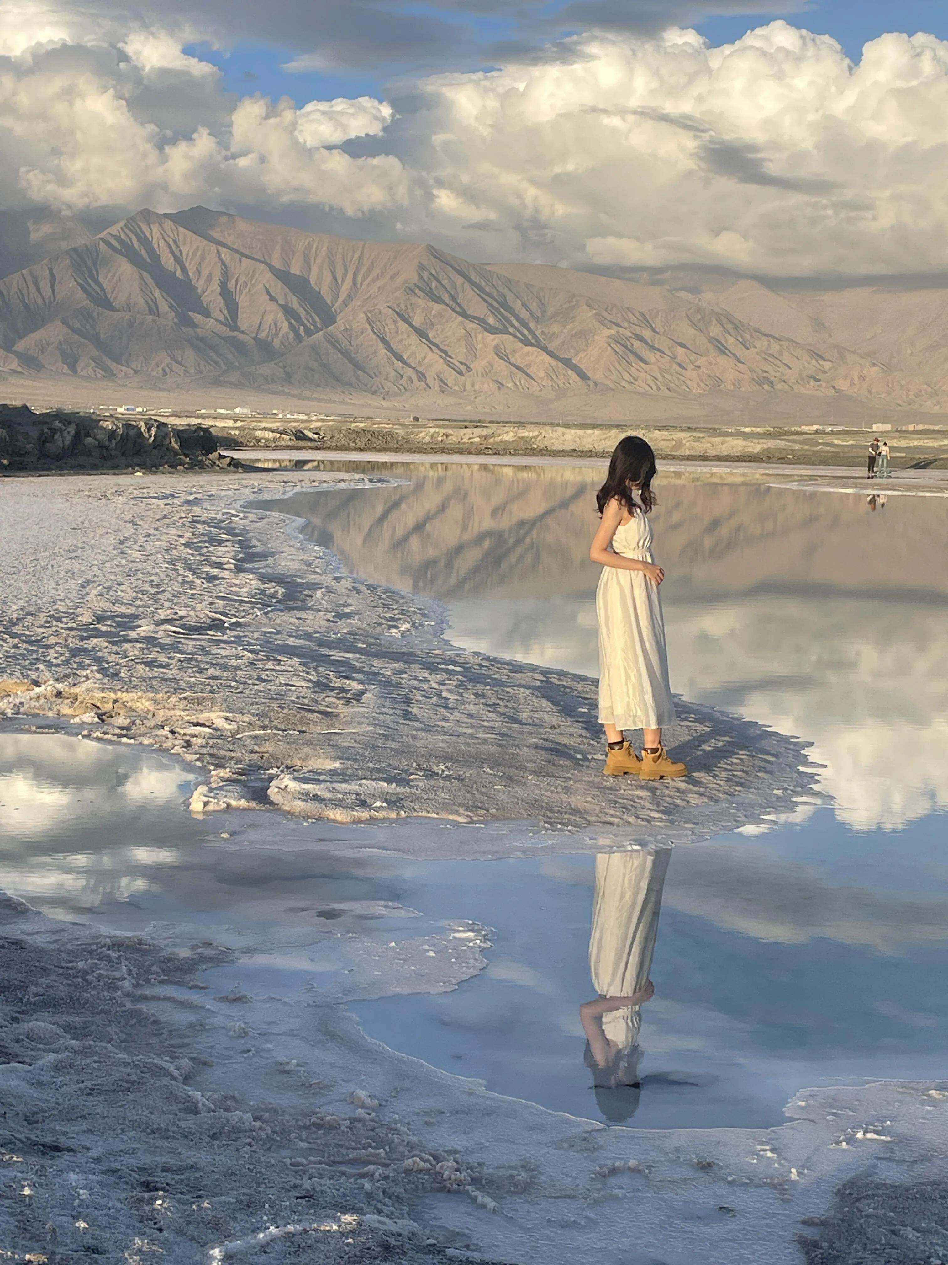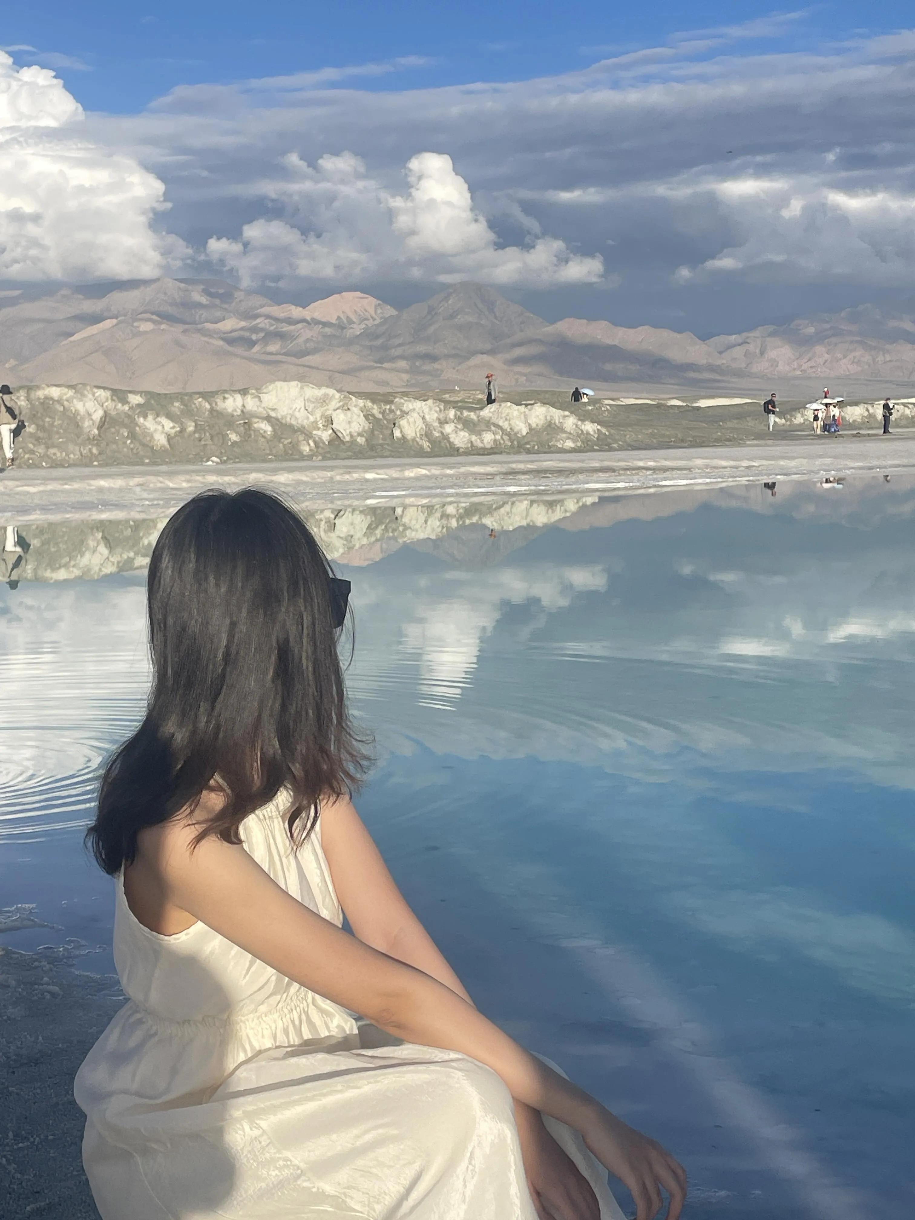 14:00出发前往东台吉乃尔湖,20分钟后到达。这是一处免费景点,从停车场步行约20分钟可到达湖边。阳光强烈,一定要做好防晒。湖水清澈,有“小马尔代夫”之称,但游客众多,拍照需要耐心等待。