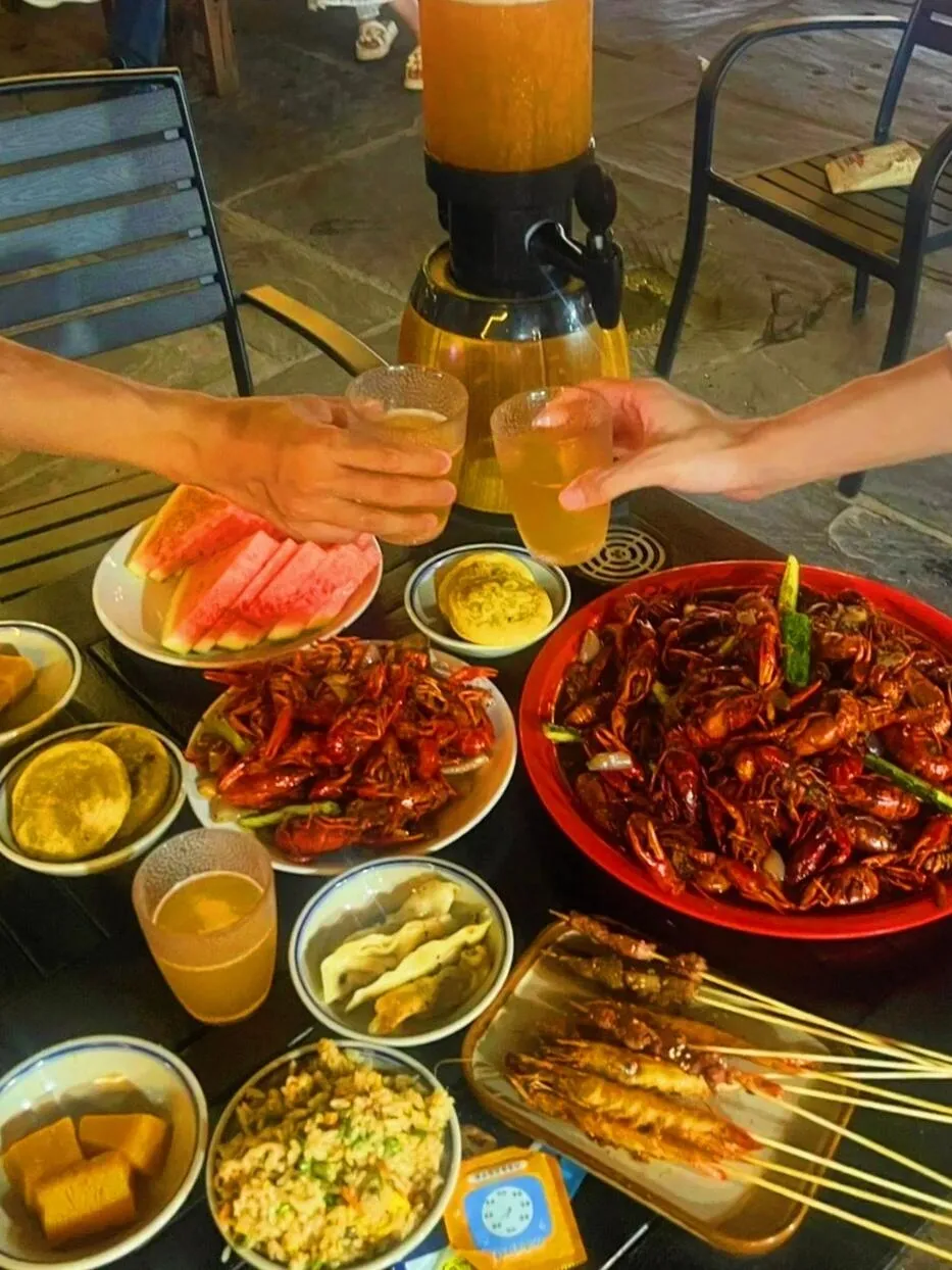 江南味道则带你领略地道的江南美食文化。这里的中式庭院布局精美,街道上挂满灯笼,营造出浓郁的古镇氛围。游客可以在永泉钱庄兑换铜板,用来购买各种小吃。此外还有篝火夜话、铜炉火锅、啤酒烧烤龙虾等特色美食,让你充分感受古镇的烟火气息。