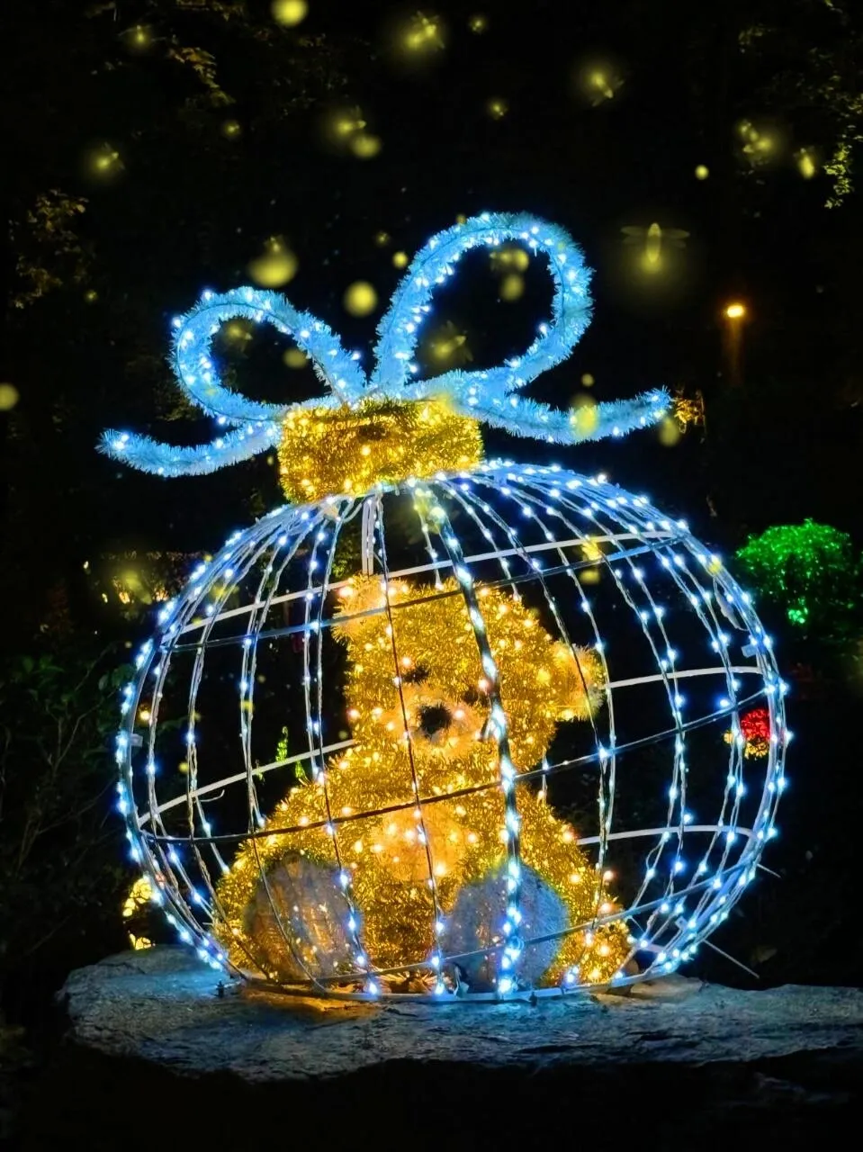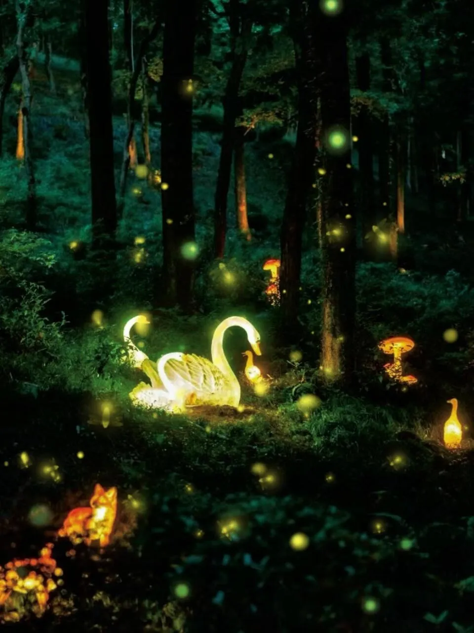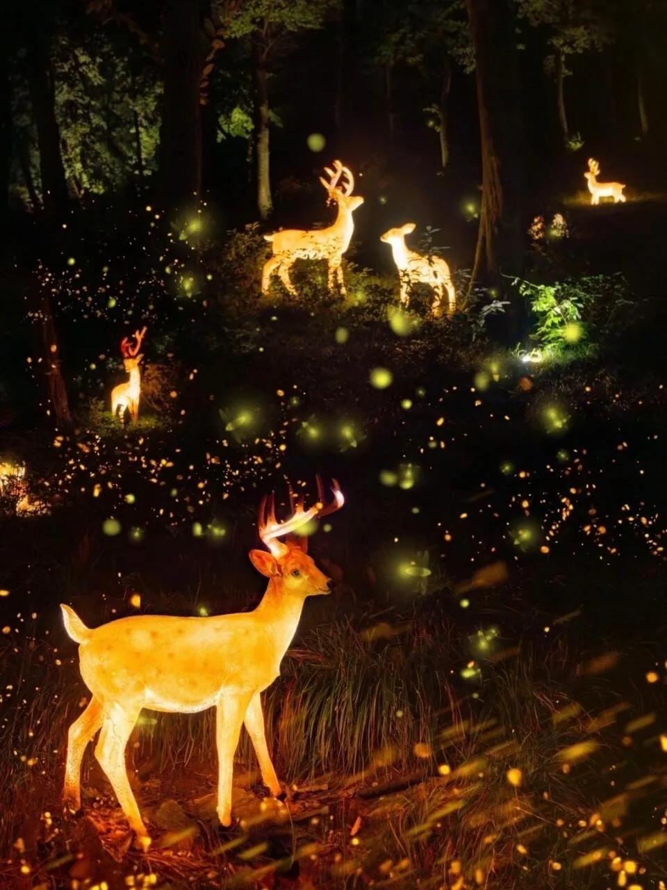 景点方面,忆江南12景是不容错过的亮点。白天,你可以漫步于碧绿的山林间,聆听溪水潺潺,欣赏亭台楼阁。沿石阶而上,一路打卡十二景观。这里还贴心地设置了上山云梯和下山滑道,既节省体力又增添趣味。夜幕降临后,这里变身为梦幻的流光森林,林间时而可见鹿影,萤火虫点点,宛如童话世界。