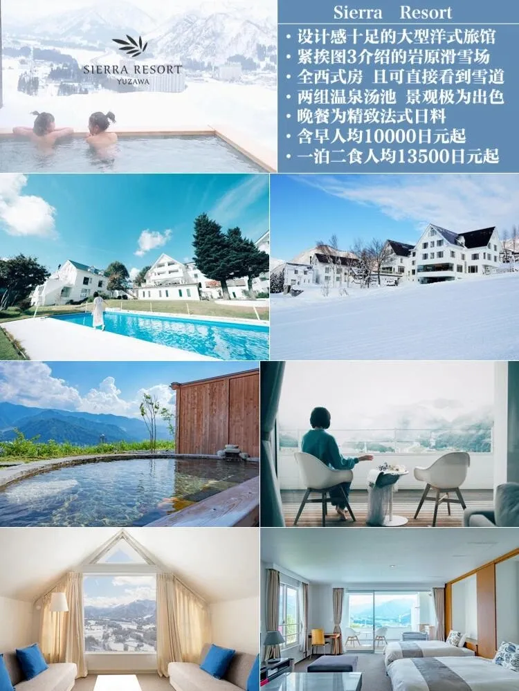 Sierra:这家酒店紧挨着岩原滑雪场,推荐给那些厌倦了标准日本酒店或日式旅馆的小伙伴。酒店是西式简约风格,共有53间房,每间都有景观,可以看到山脉或雪道。另外也有可住多人的家庭房,晚餐则是精致的法国料理。