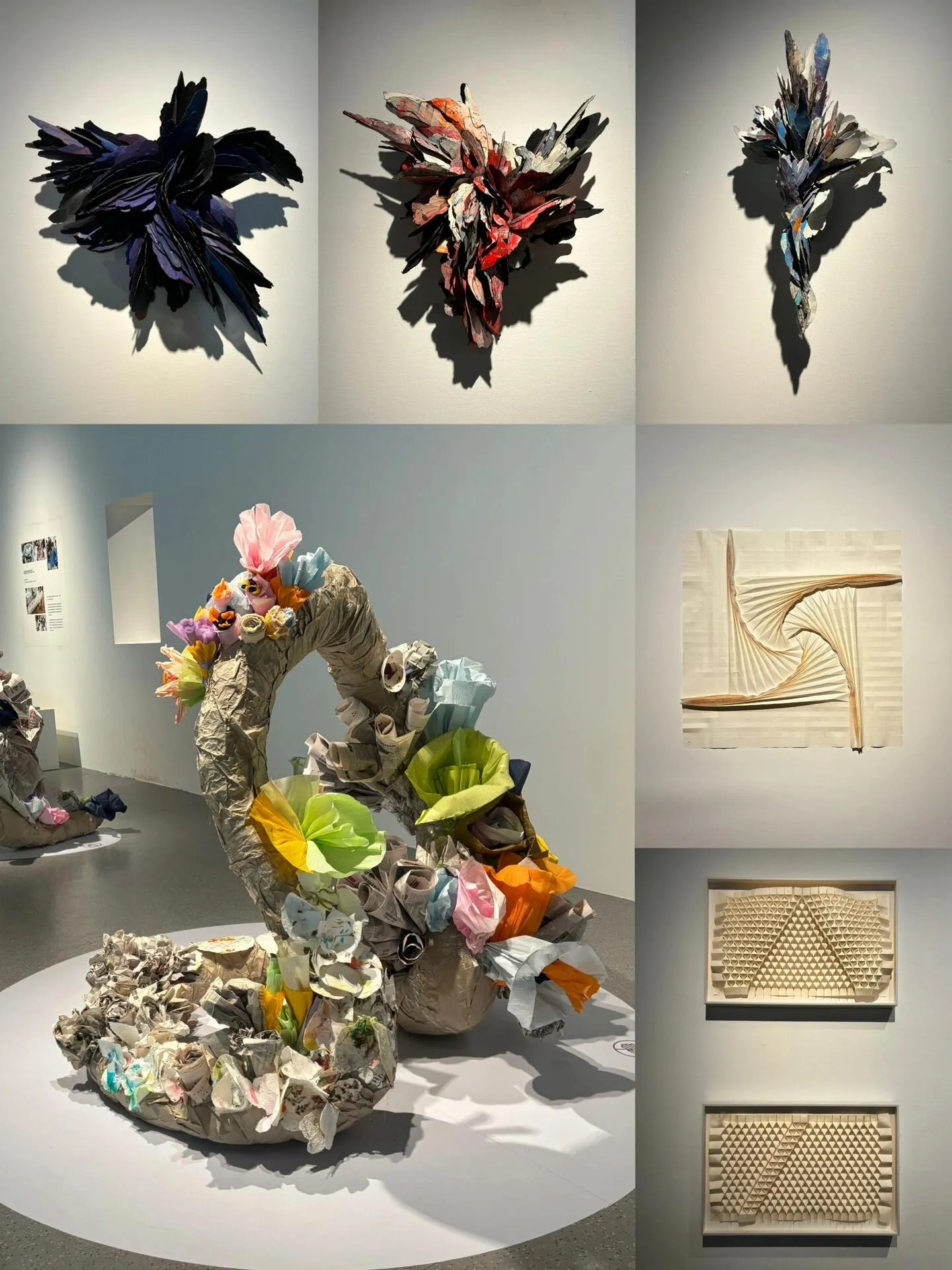 午饭后来到太仓美术馆。美术馆空间宽敞,空调凉爽,人流不多,环境安静舒适。 地下一层设有母婴室和储物柜 ,还有一个文创店,提供休息区和咖啡。一楼是书法展厅,室外有喷泉。 二楼展出纸、树皮、铁艺等材质的艺术品 。 三楼有VR展厅,包括光影投影小房间和儿童绘画区 ,另有齐白石画展。美术馆提供免费停车,是休息的好去处。