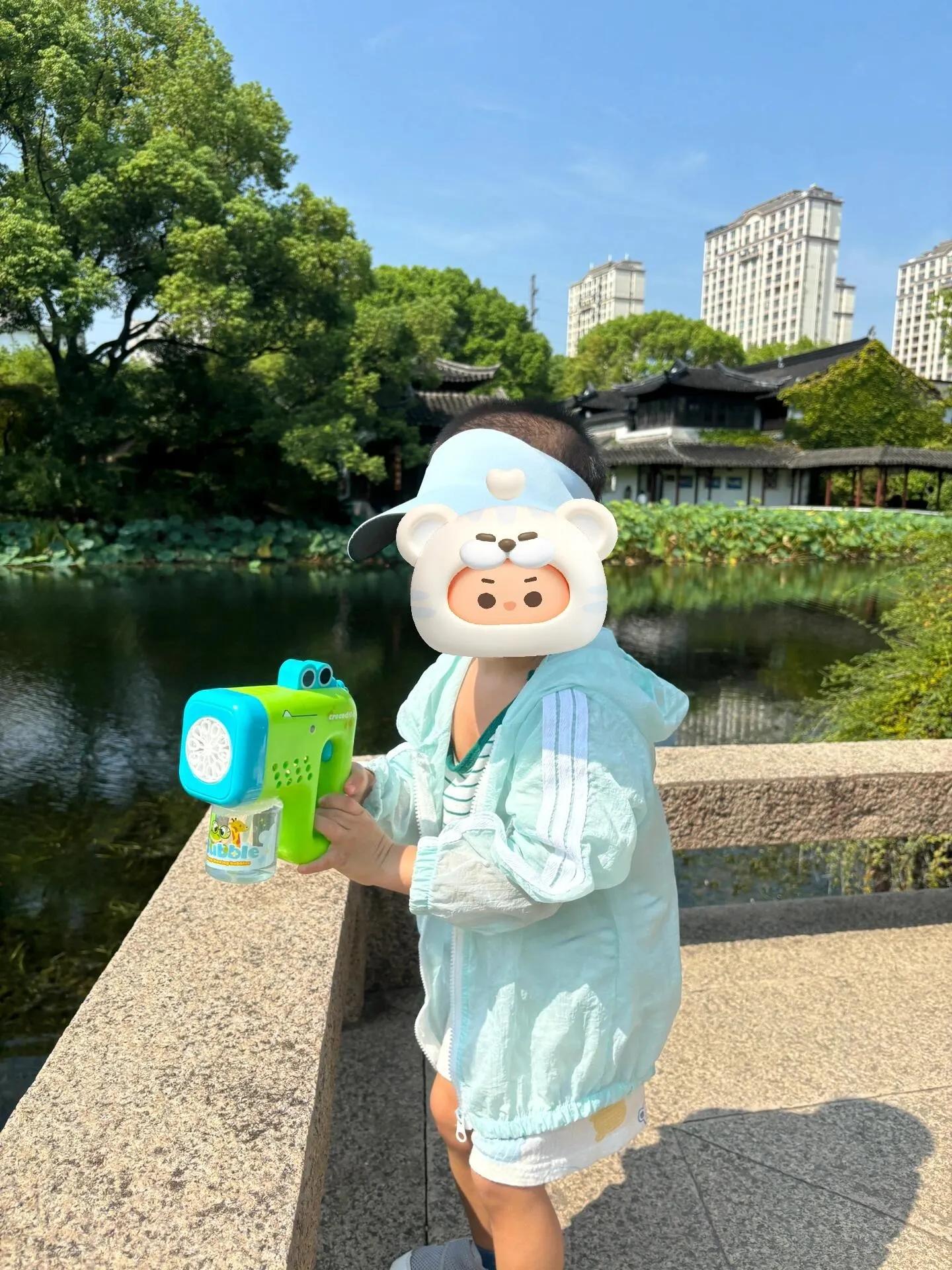 从上海出发,早上九点半到达南园。虽然天气有些炎热,但 公园树荫很凉爽 。湖里有各种鱼类,荷叶密布,还有一些碗莲,景色优美。公园内设有小桥、长廊和亭子,非常适合休息。带上泡泡机和渔网,孩子们玩得很开心。公园里还有一个图书室,可以刷卡进入,有空调,可以阅读绘本。