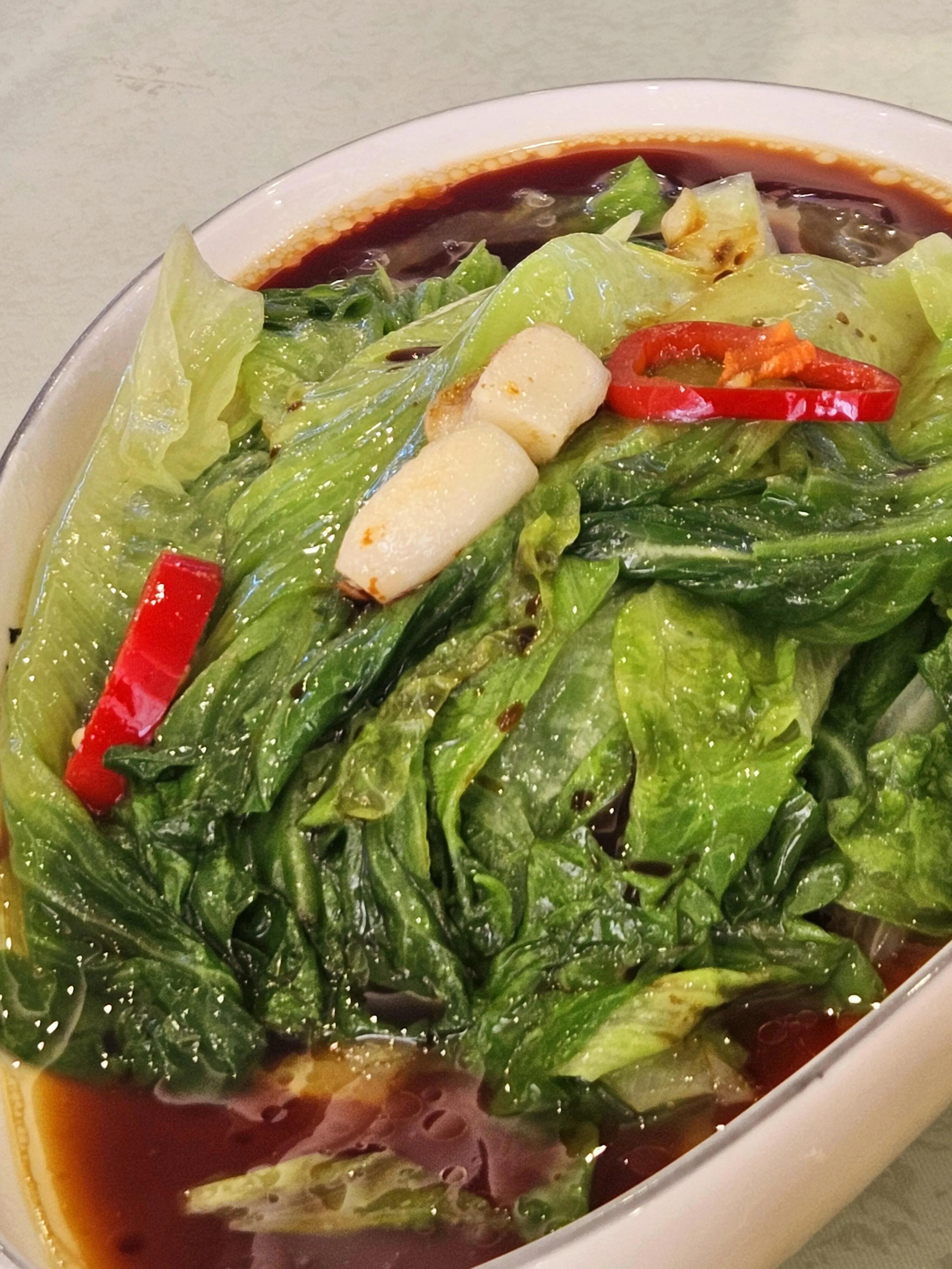 作为最后的清新之选,白灼生菜以其爽脆的口感和自然的清香,甘甜鲜美为这一餐带来了完美的收尾。