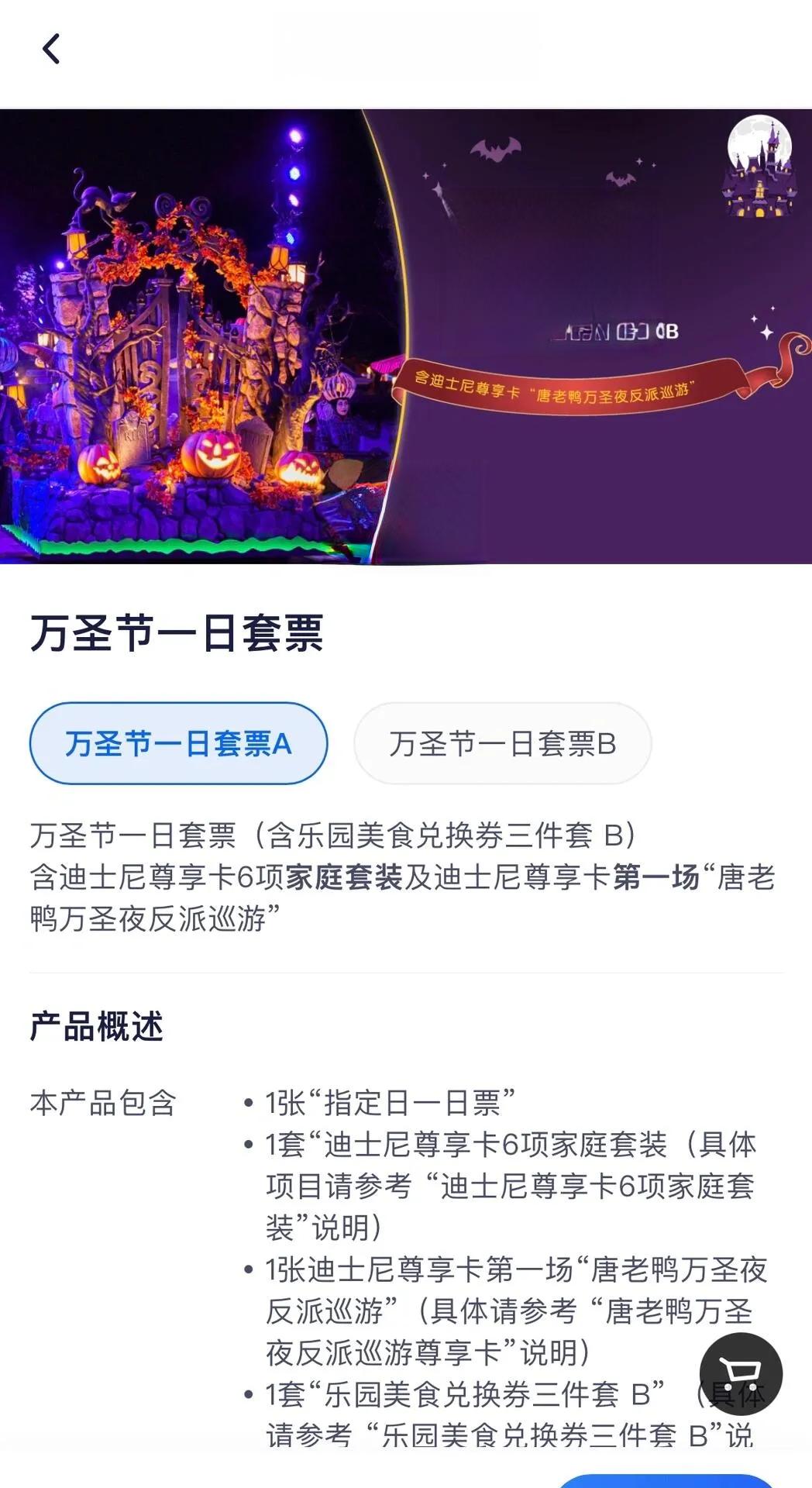 万圣套票重新上架,分为A、B两种选项。A套餐包含家庭六项尊享卡,适合老幼或胆小的游客;B套餐则是探险六项尊享卡,更适合喜欢刺激的年轻人。