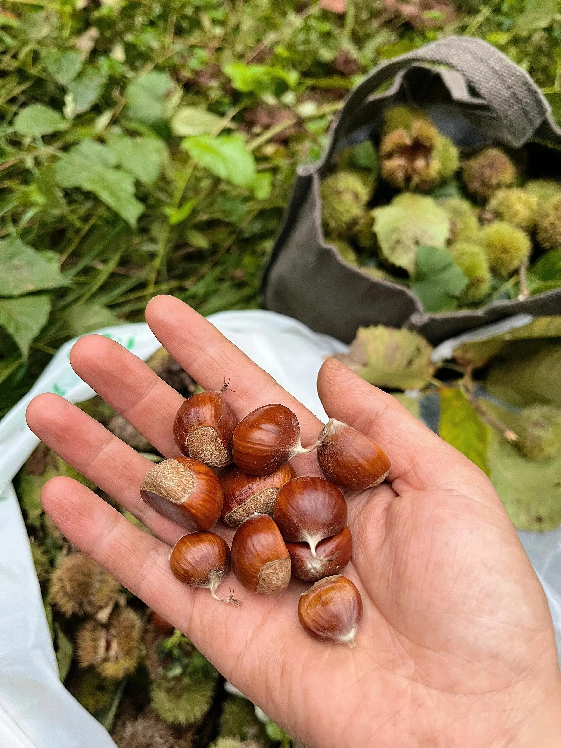 现在正值青城山上野生板栗的成熟季节。到了玉清宫以后,我们就开始一路捡板栗。带着两个小朋友,一边走一边捡板栗、采蘑菇、拾青岗果(橡果)、摘王瓜,在520阶梯入口处还看见了野生猕猴桃!我们12点整上山,下山已经6点多,玩得不亦乐乎。