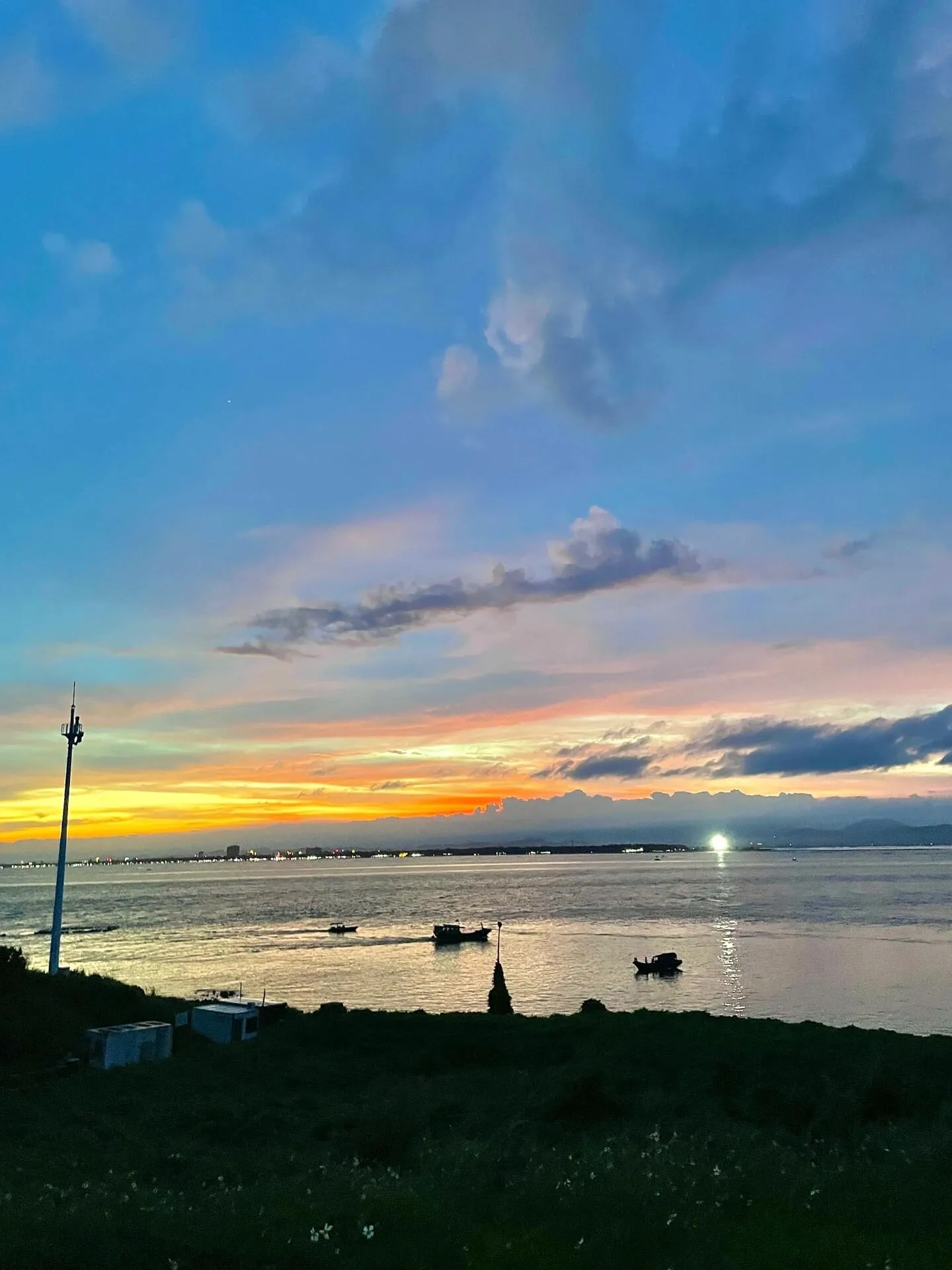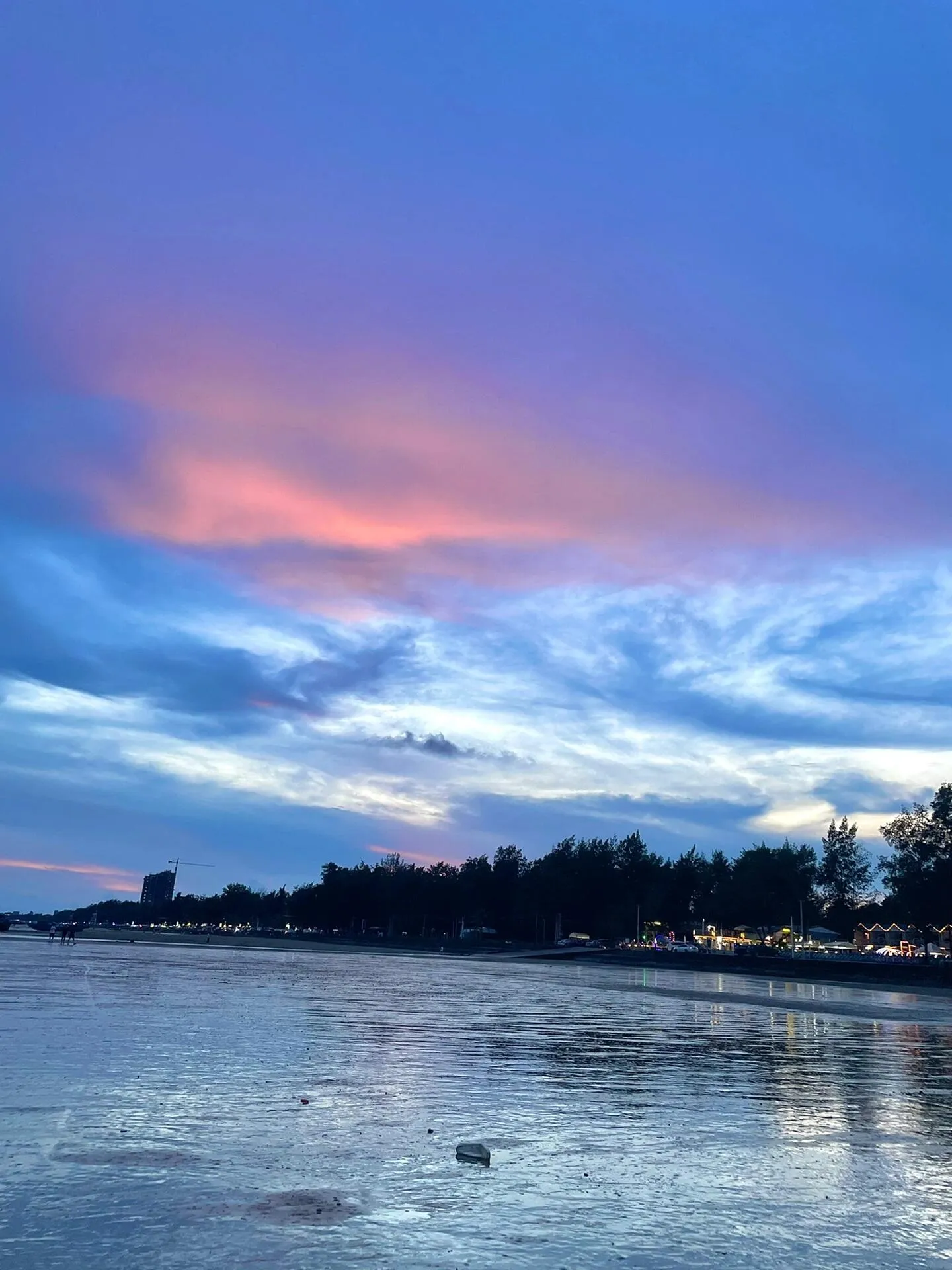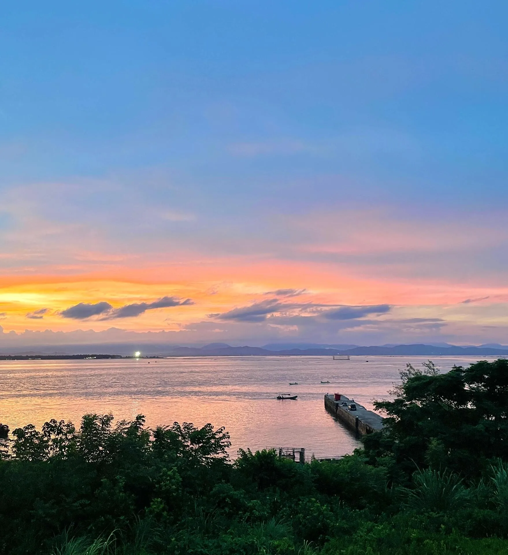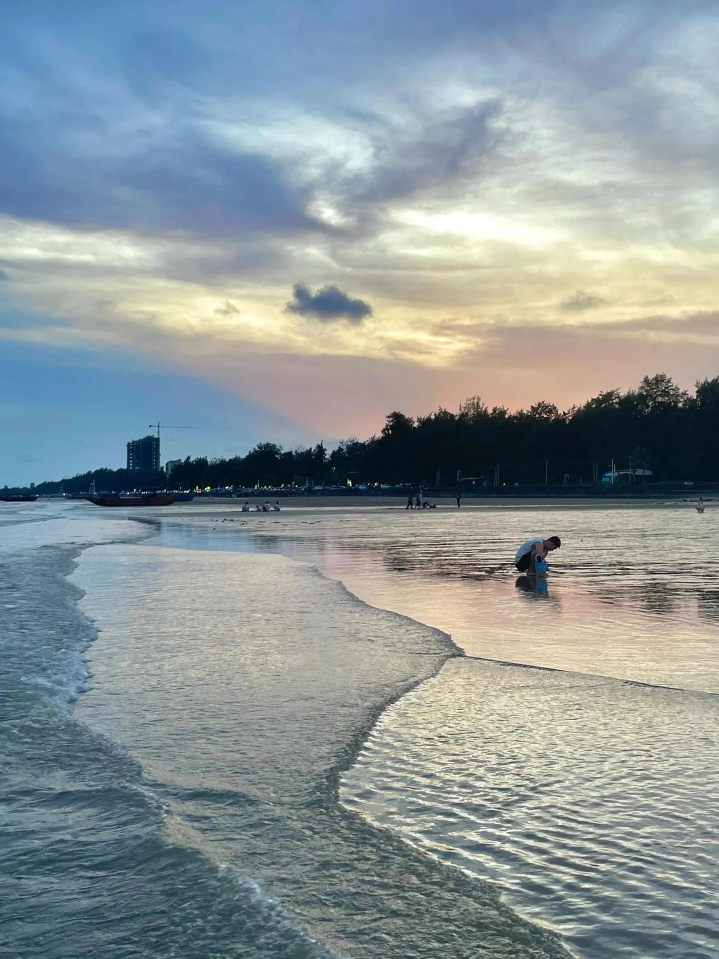 接着去万尾金滩看日落。万尾金滩水质尚可,免门票,可以冲浪(但不推荐)。傍晚的天空很美,天黑后可以直接在金滩旁边吃夜宵。