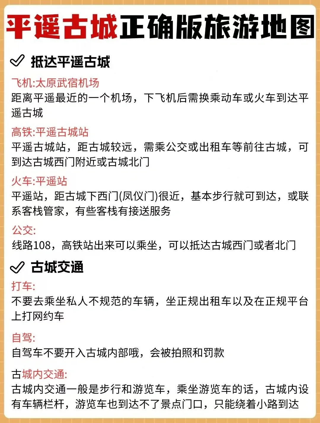 可选择飞机(太原武宿机场)、火车(平遥站)或高铁(平遥古城站)到达。古城内主要靠步行或乘坐游览车,也可以包车一整天,但不太划算,因为主街道禁止车辆进入。