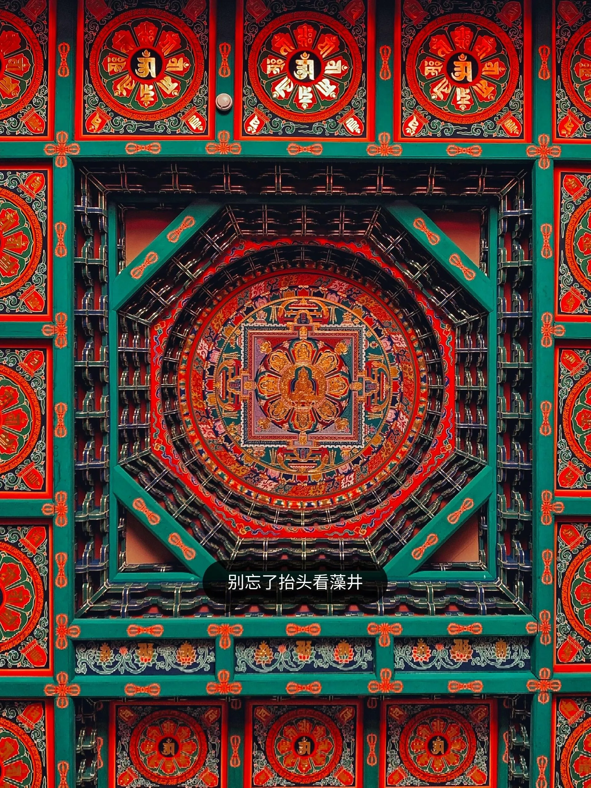大雄宝殿顶部的藻井也是一大亮点,它结合了曼陀罗大日如来的画像,展现了高超的艺术水平。