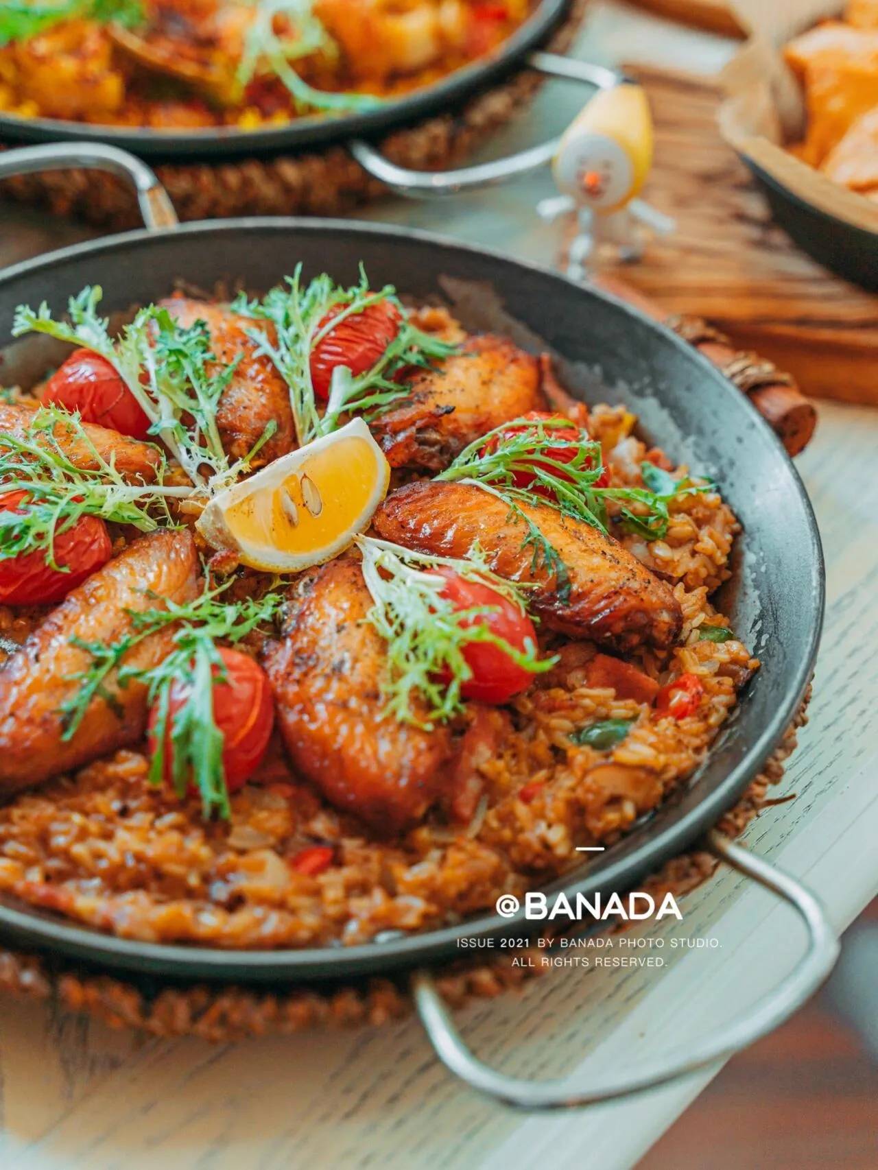 如果喜欢湿软的米饭,西班牙牛肝菌鸡翅饭(88元)会是不错的选择。饭里加了牛肝菌、燕麦和培根,菌类的鲜美味道让人回味无穷。口感丰富有层次,上方的鸡中翅也很入味,肉质肥美香嫩。