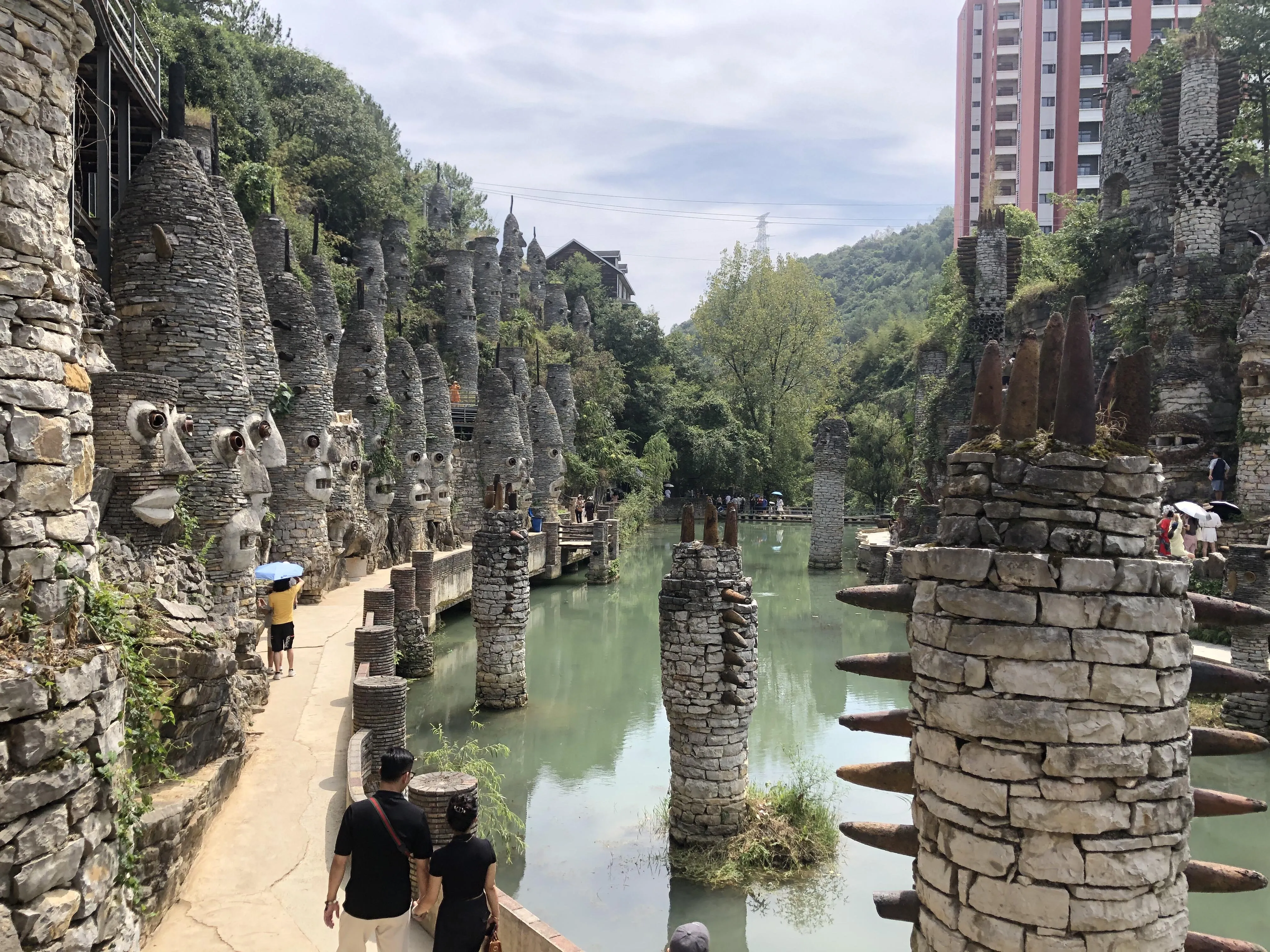 步入景区,映入眼帘的是令人惊叹的石头造型。这里有石头城堡、石桥和石雕等独特景观,充分展现了大自然的鬼斧神工。夜郎谷的创建者是贵州著名艺术家宋培伦,他倾注了20多年心血打造这座石头城堡。景区名称“夜郎谷”与成语“夜郎自大”有关,增添了几分文化底蕴。