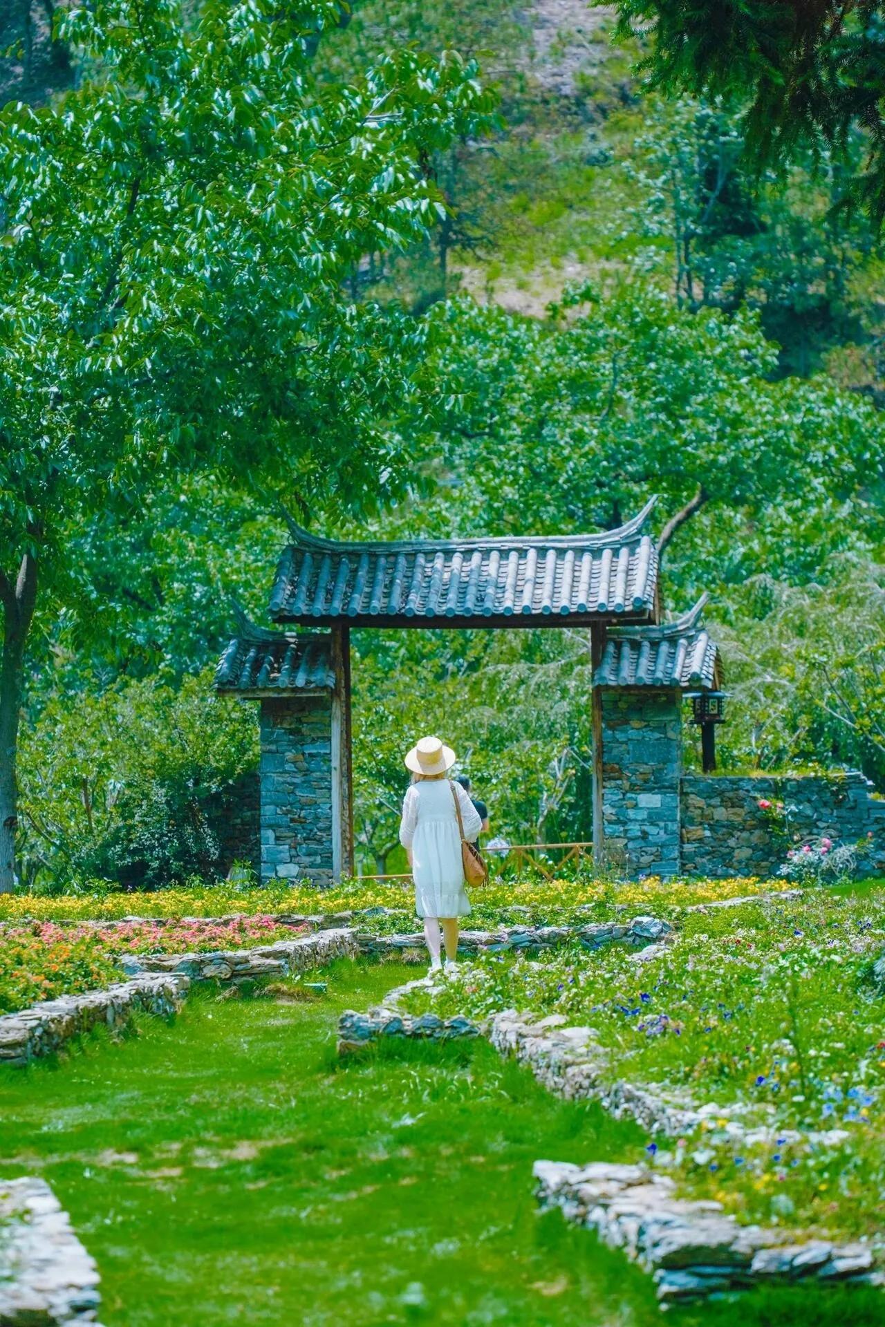 除了石门关, 附近30分钟车程还有一个鲜为人知的“云上村庄” ——世界核桃之乡。这里有万亩核桃林和千年核桃神树。村庄里随处可见核桃古树,还有四季主题花园,每个季节都有不同的花盛开。夏季,缓坡上种满了绣球花,包括大花绣球、圆锥绣球和乔木绣球。步行到村子尽头的云上咖啡屋,可以品尝现做核桃酥和美式咖啡。如果想要住宿,可以选择老查家民宿。