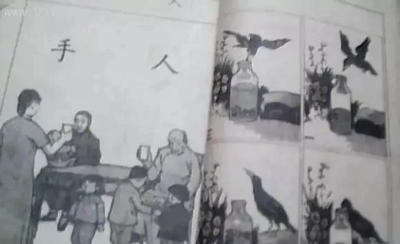 1934年,小学课本上的乌鸦喝水的故事,经典的教育内容。